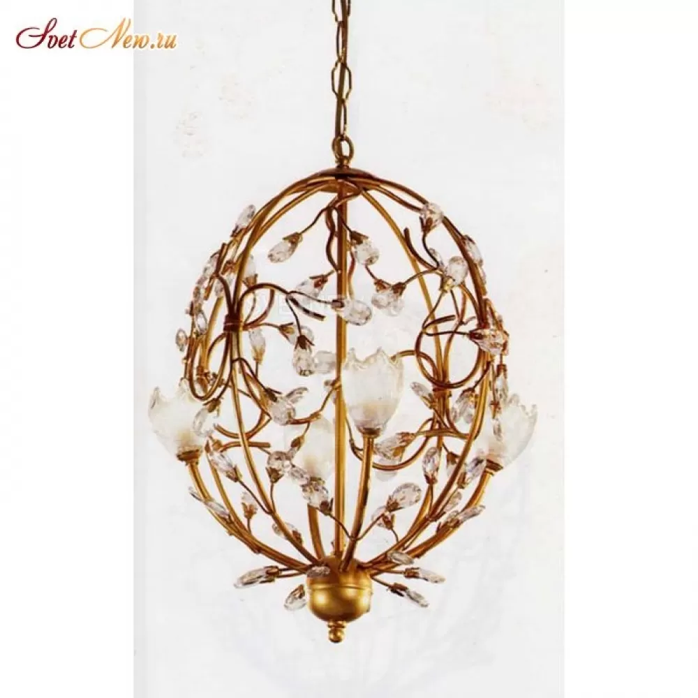 - Из чего сделано основание, а также стандартный цвет - кованый металл с декором ручной работы , можно узнать в таблице характеристик.Модель украшают настоящие хрустальные подвески. Люстра выполнена в стиле флористика.