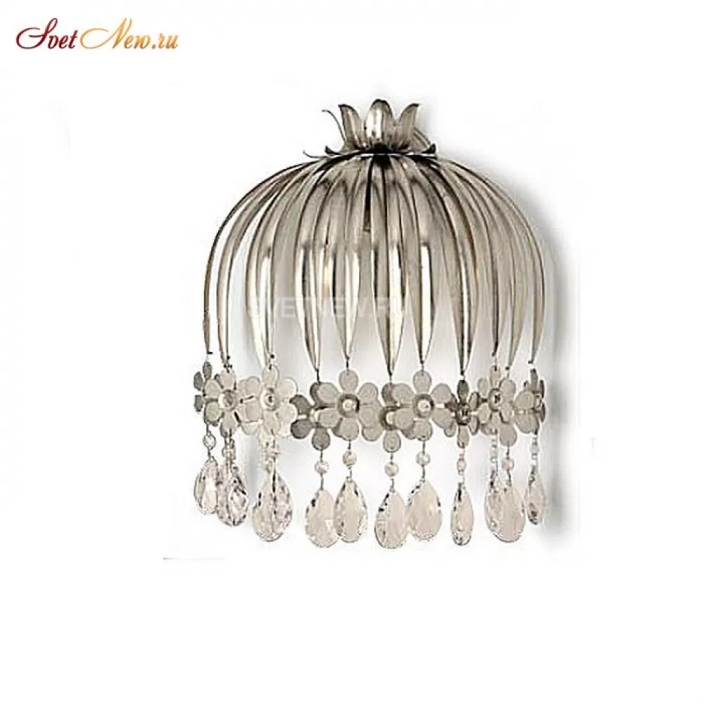 - Из чего изготовлено основание, а также базовый цвет - кованый металл с декором ручной работы , можно узнать в таблице характеристик. Модель украшена подвесками из настоящего хрусталя. Стиль настенного светильника - классический.