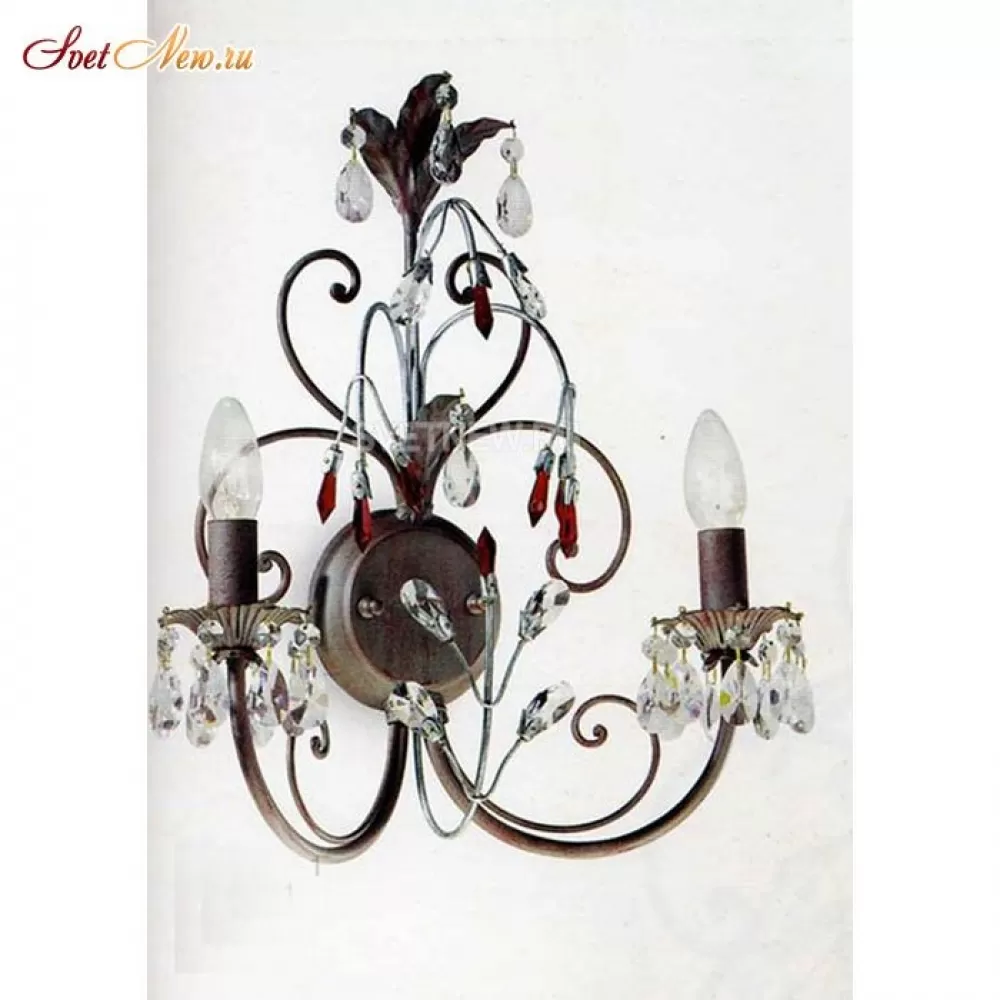 - Из чего сделана основа , а также стандартный цвет - кованый металл с декором ручной работы , можно узнать в таблице характеристик. Модель украшают настоящие хрустальные подвески. Стиль настенного светильника - классический.