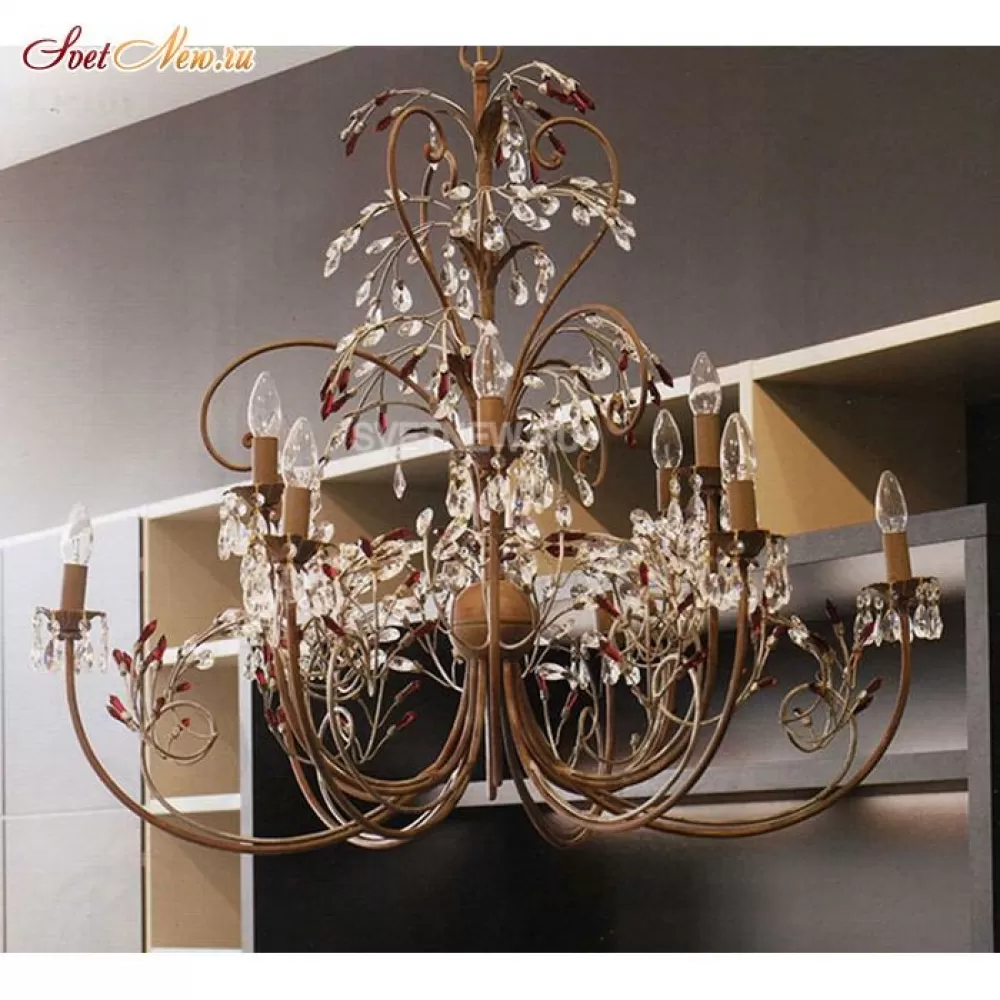 - Из чего сделан корпус, а также базовый цвет - кованый металл с декором ручной работы , можно узнать в перечне характеристик.Подвески, украшающие модель, сделаны из хрусталя. Люстра выполнена в стиле флористика.