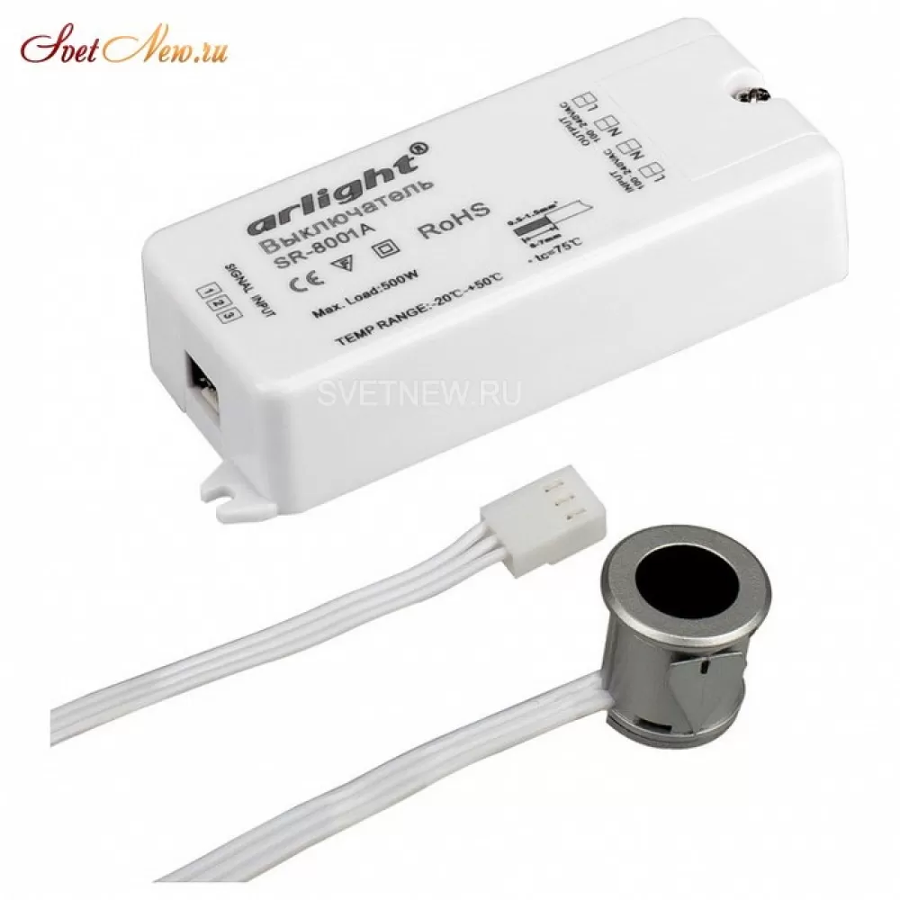 Бесконтактный ИК выключатель ламп и освещения 220В. Срабатывание от руки на расст-ии от 1 до 6 см, первый раз - ВКЛ, второй раз - ВЫКЛ. Макс. мощн. 500Вт, AC100-240V. Размеры: блок 82х33x20мм, датчик 20x20мм, посадочное отверстие 18мм, кабель 1.5м