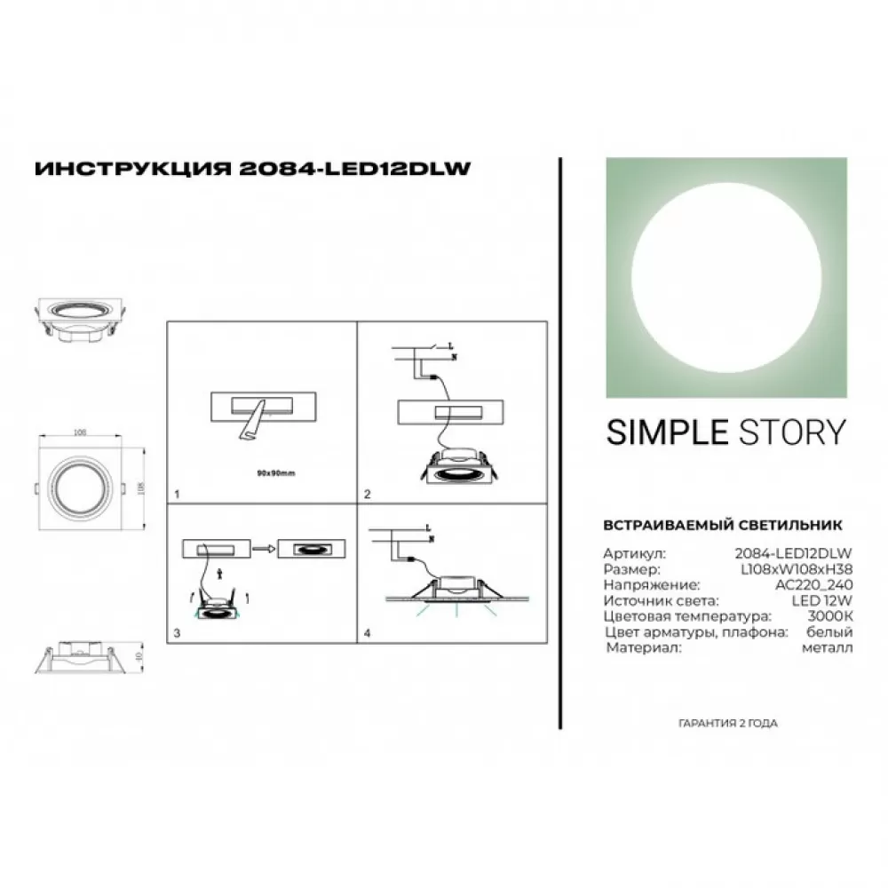 Встраиваемый светильник Simple Story 2084-LED12DLW