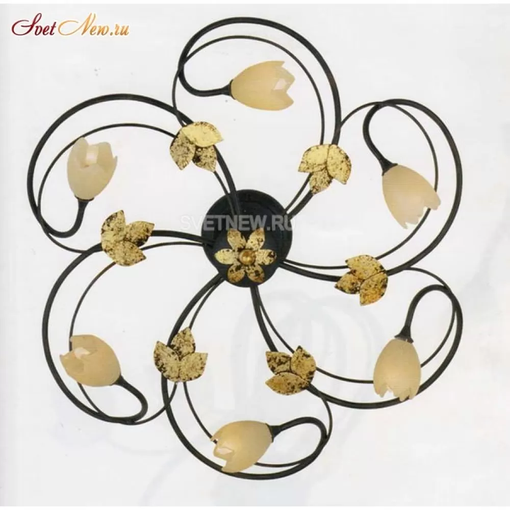 - Из чего сделан корпус, а также основной цвет - кованый металл с декором ручной работы , можно узнать в перечне характеристик. Люстра выполнена в стиле флористика.