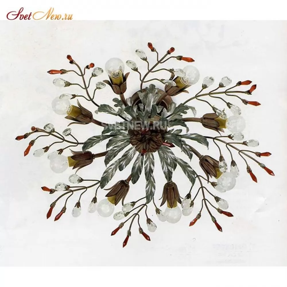 - Из чего изготовлена основа , а также стандартный цвет - кованый металл с декором ручной работы , можно узнать в перечне характеристик.Подвески, украшающие модель, сделаны из хрусталя. Люстра выполнена в стиле флористика.