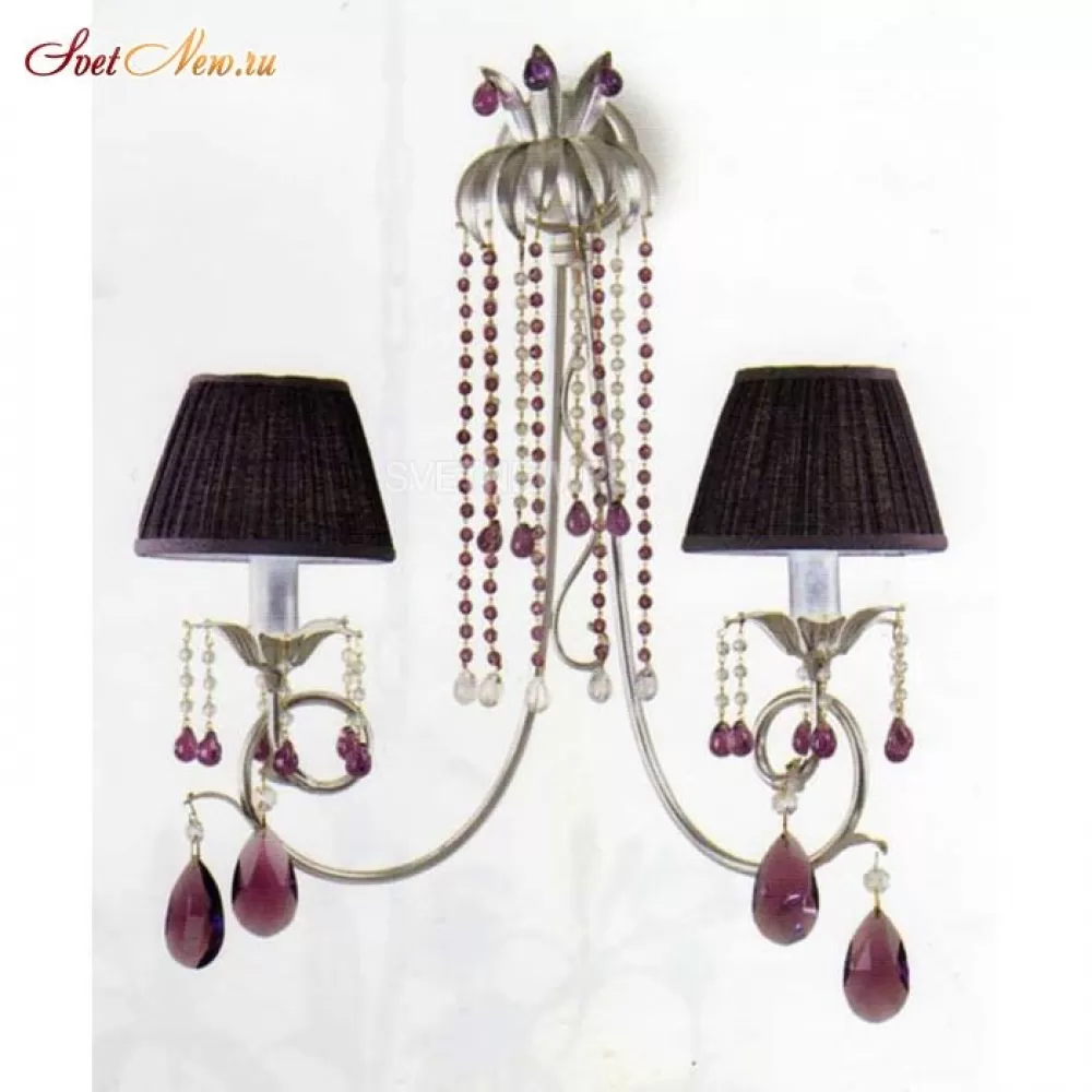 - Из чего изготовлена основа , а также основной цвет - кованый металл с декором ручной работы , можно узнать в таблице характеристик. Подвески из стекла особенно украшают эту модель. Стиль настенного светильника - классический.