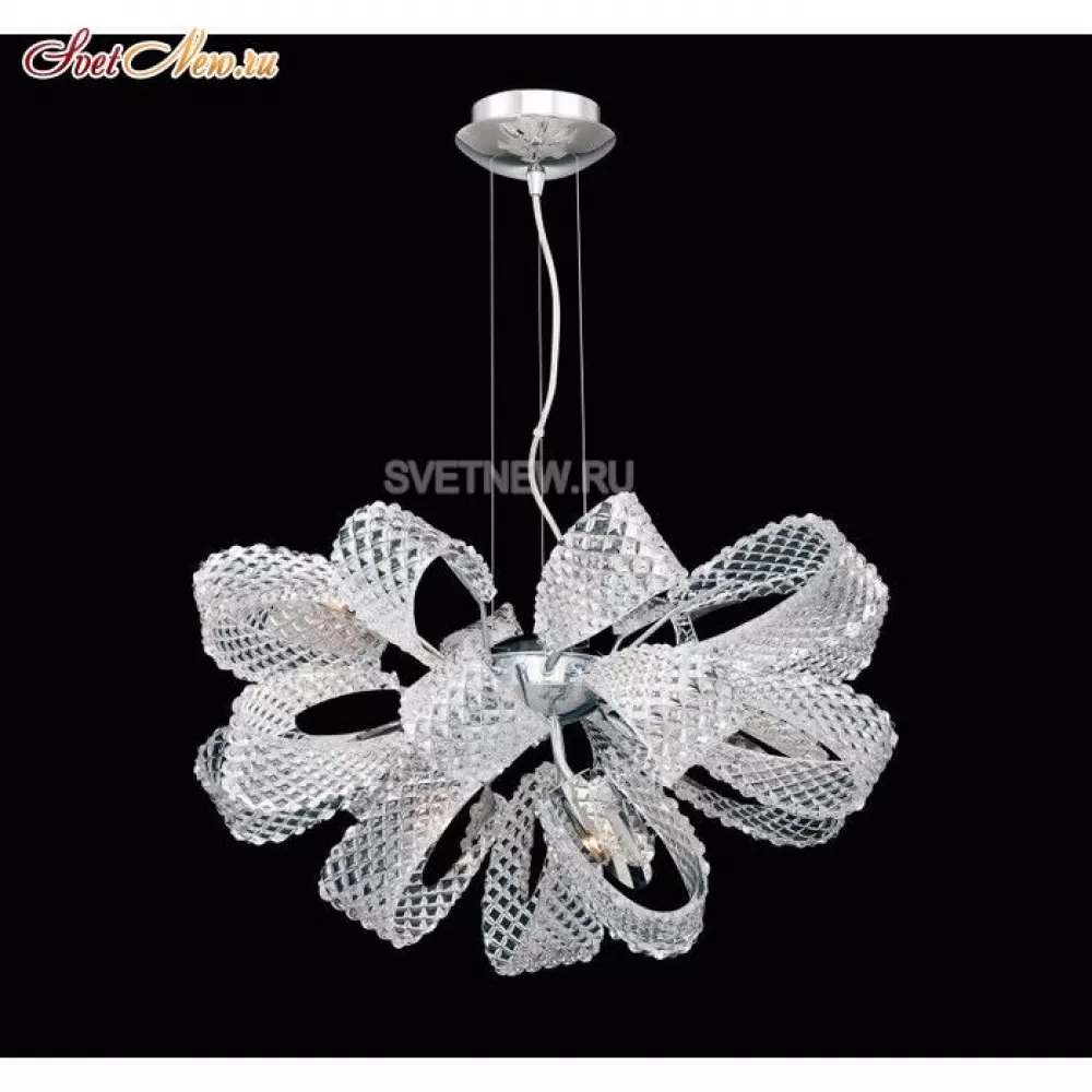 - Из чего изготовлено основание, а также основной цвет - металл, цвет хром , можно узнать в перечне характеристик. Модель украшают стеклянные подвески. Люстра выполнена в стиле модерн.