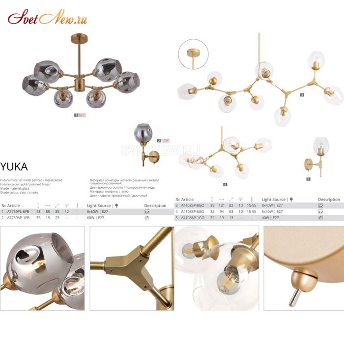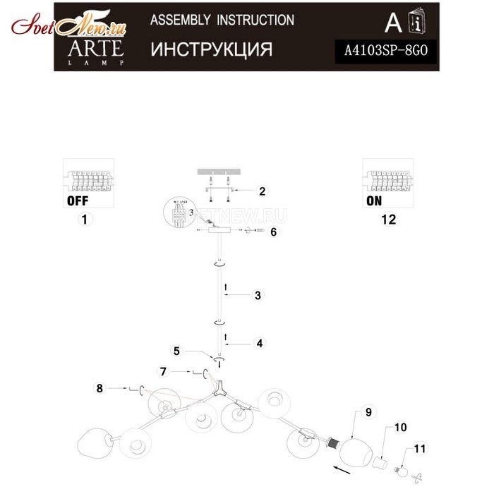 Подвесная люстра Arte Lamp Yuka A4103SP-8GO
