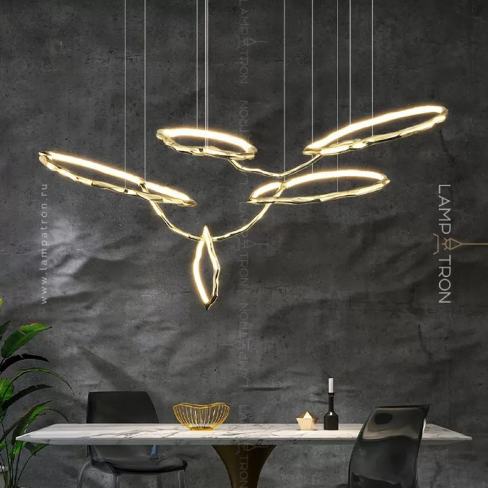 CORDELIA01. Люстра. Материал: металл/акрил; цвет корпуса: латунь; размеры: (д × ш × в): 120 × 50 × 60 см; тип источника: LED матрица; цветовая температура: трехцветный свет; количество источников: 5