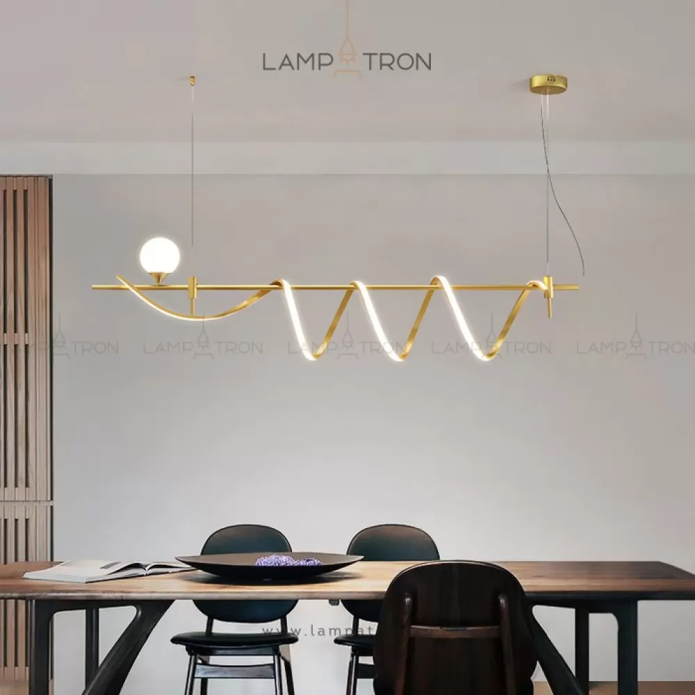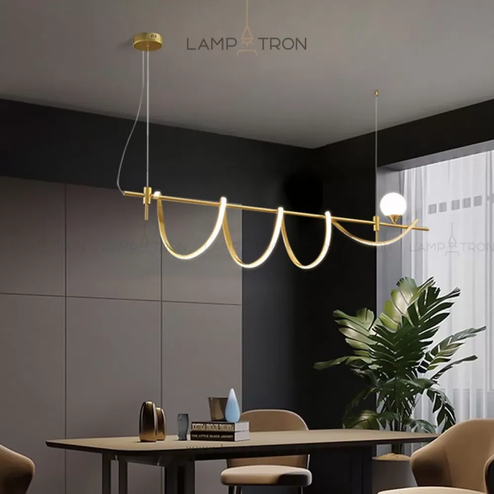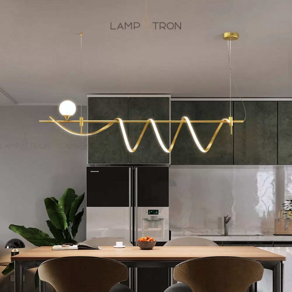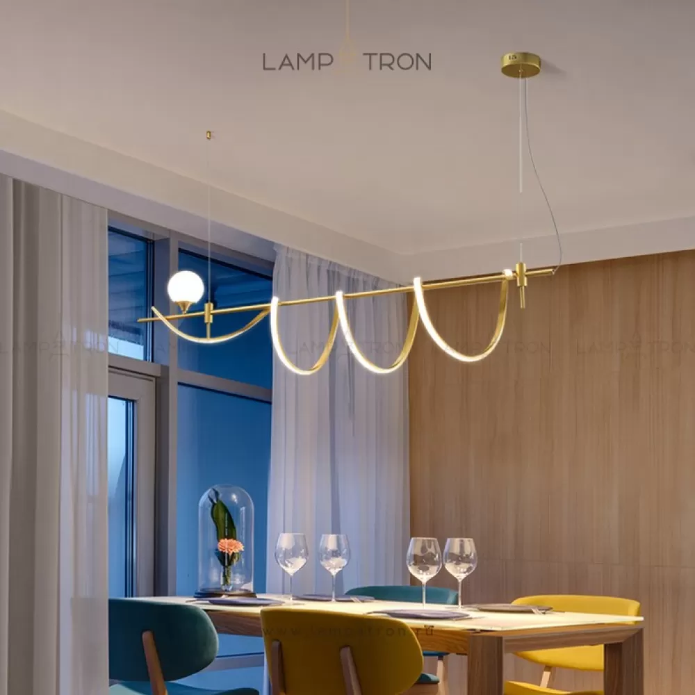 COURT01. Реечный. Материал: металл/силикон; цвет корпуса: латунь; размеры (ширина × высота): 150 × 35 см; длина подвеса: 100 см; тип источника: LED матрица+G9; цветовая температура: теплый свет; количество источников: 2