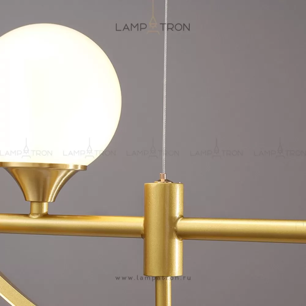 Реечный светильник с шарообразным плафоном и обвитой светодиодной летной на горизонтальной рейке