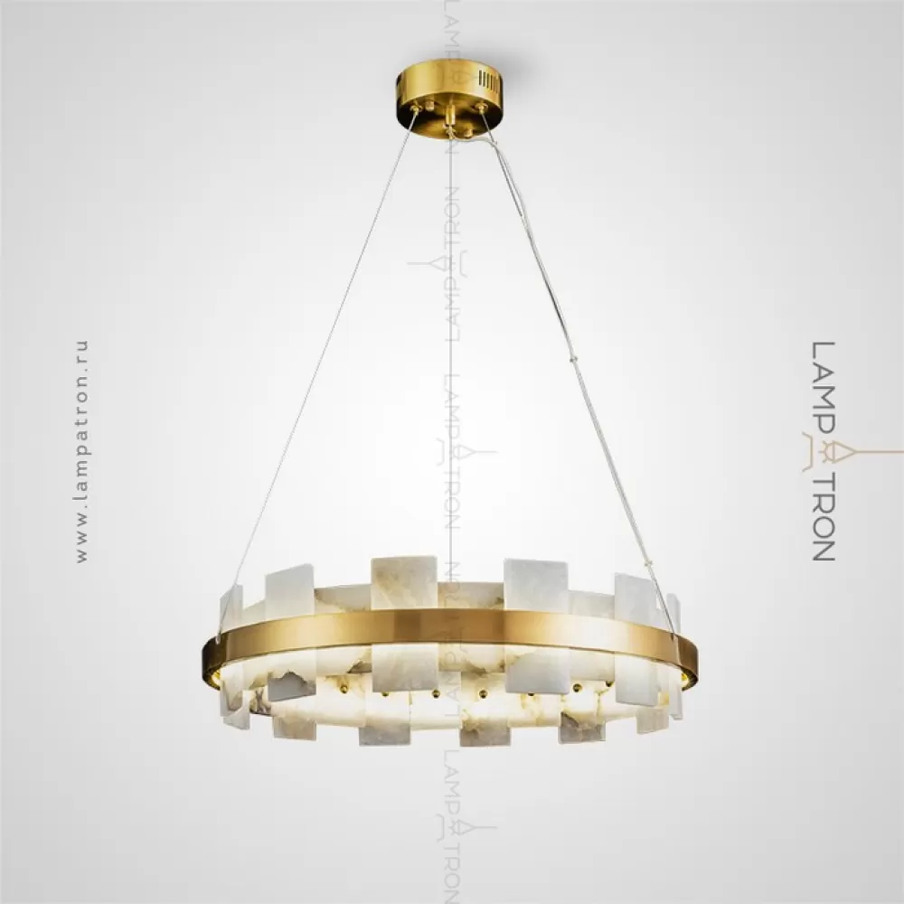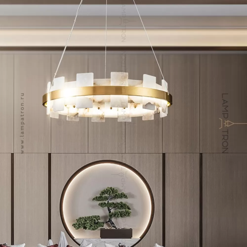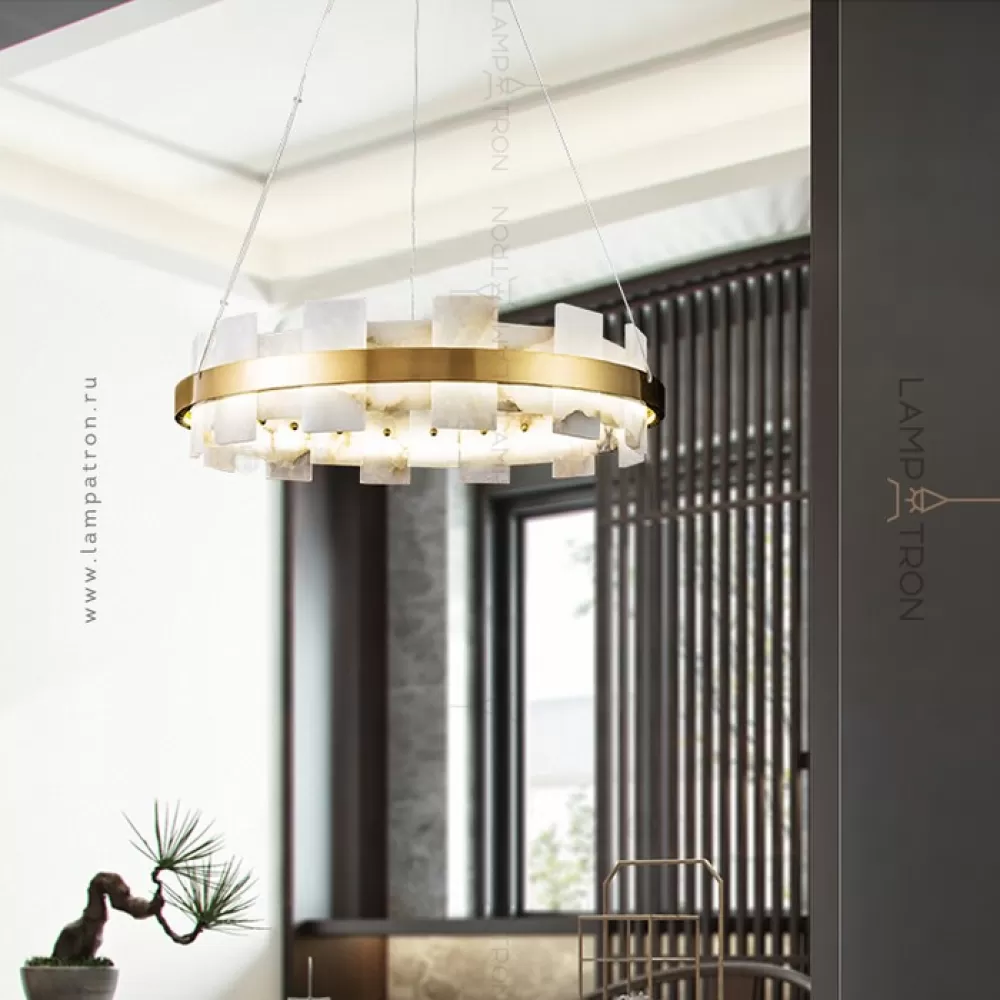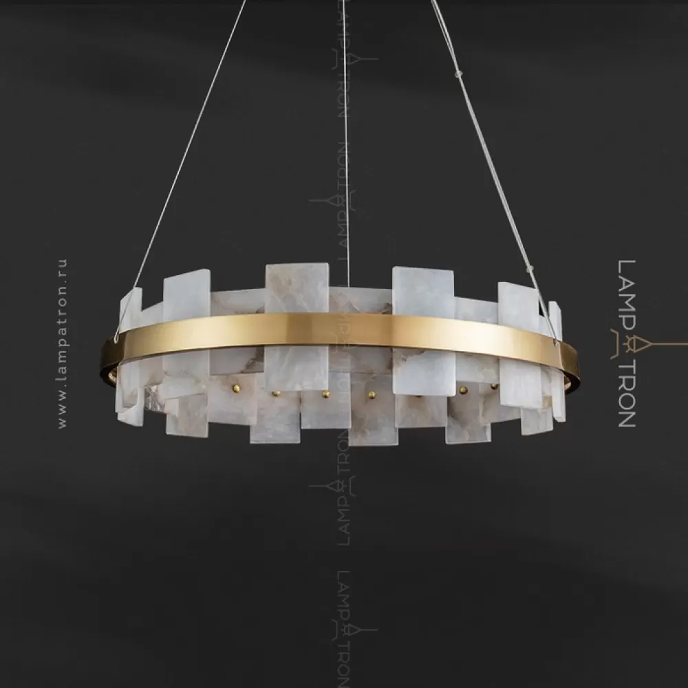 Светодиодная люстра с абажуром из прямоугольных мраморных пластин на кольцевом каркасе