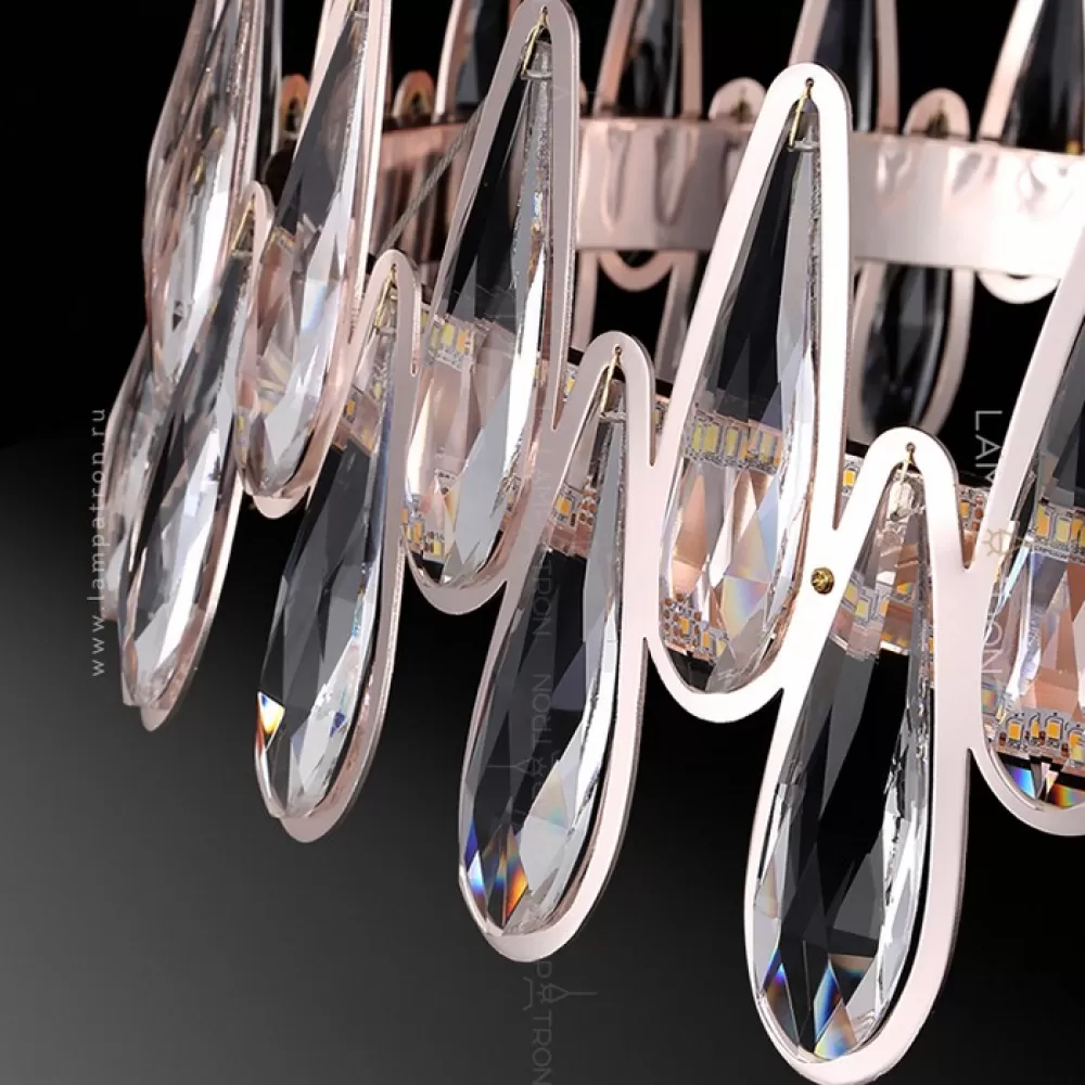 Кольцевая светодиодная люстра с хрустальными рассеивателями каплевидной формы по контуру корпуса цвета розового золота