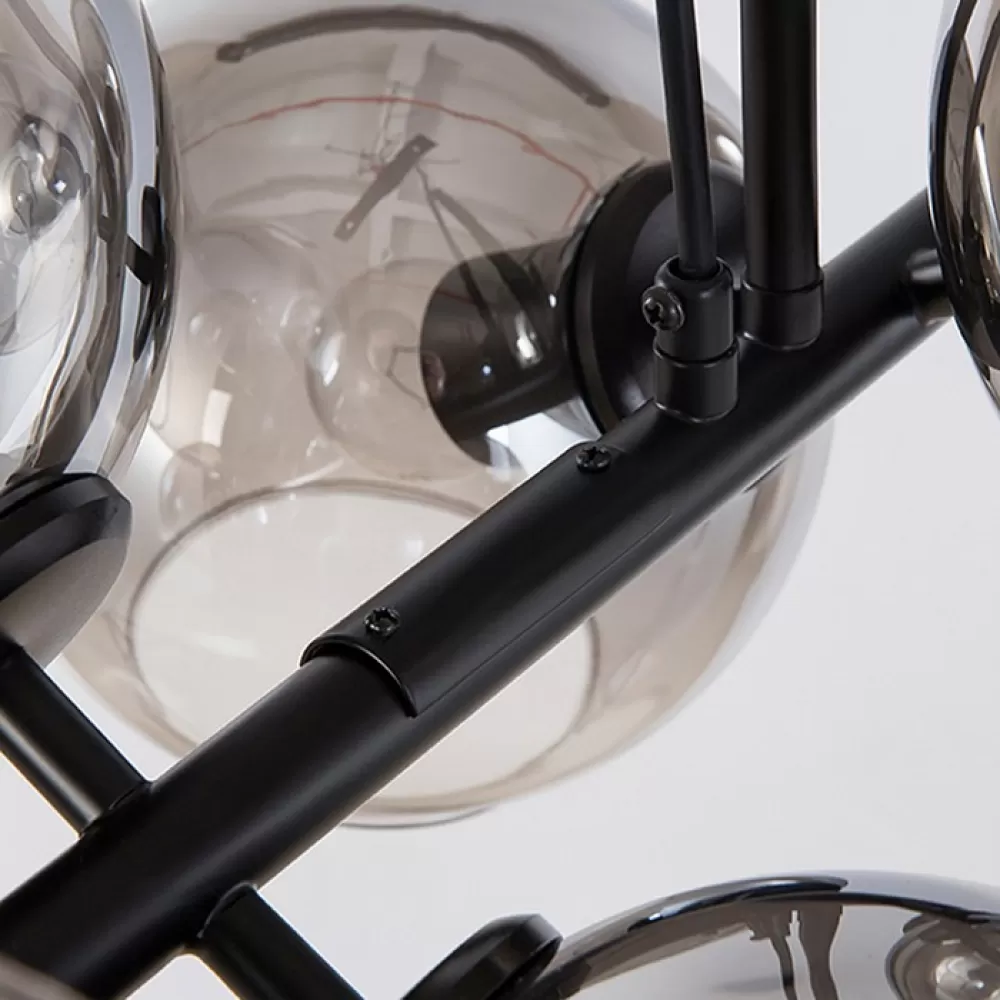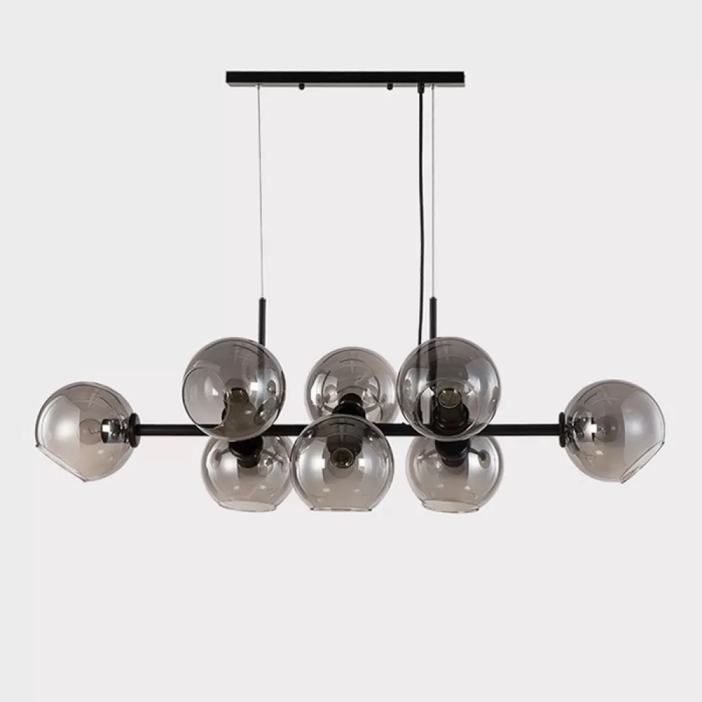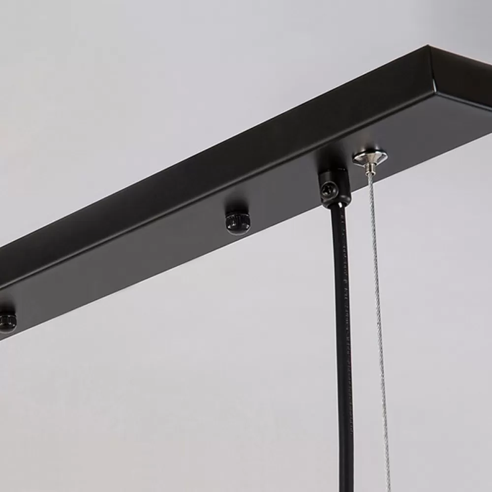 DISA01. Реечный светильник. Материал: металл / стекло; цвет каркаса: черный; цвет стекла: дымчатый; размеры (длина × ширина): 110 × 48 см; длина потолочной планки: 40 см; тип цоколя: Е27; количество источников: 8