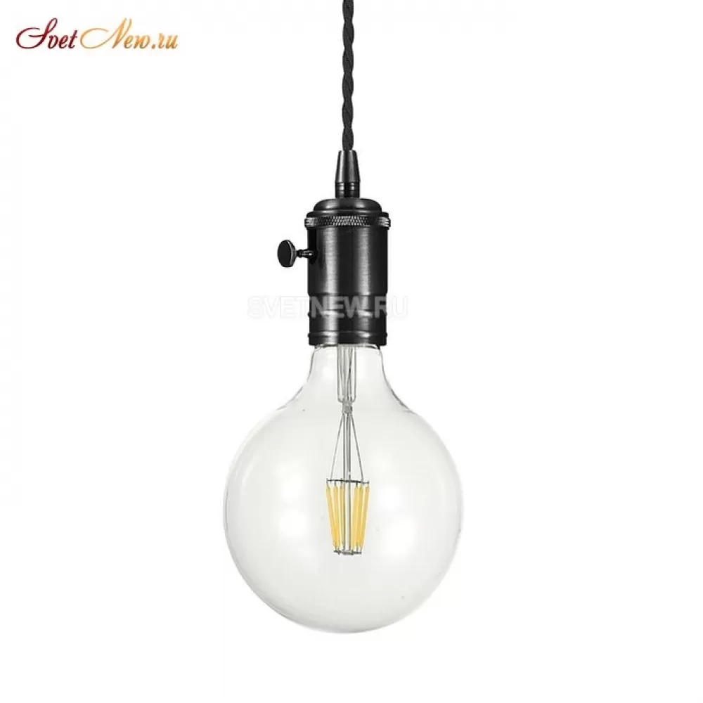 Потолочная чаша и покрывающие патроны колбы из металла с разными покрытиями. Провод из чёрной ткани. Выключатель встроенный в патрон.