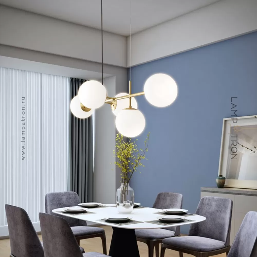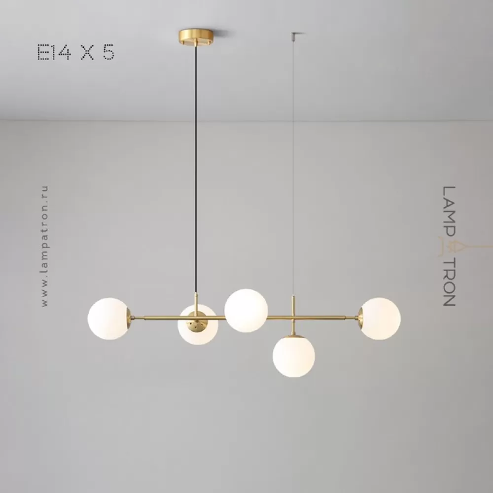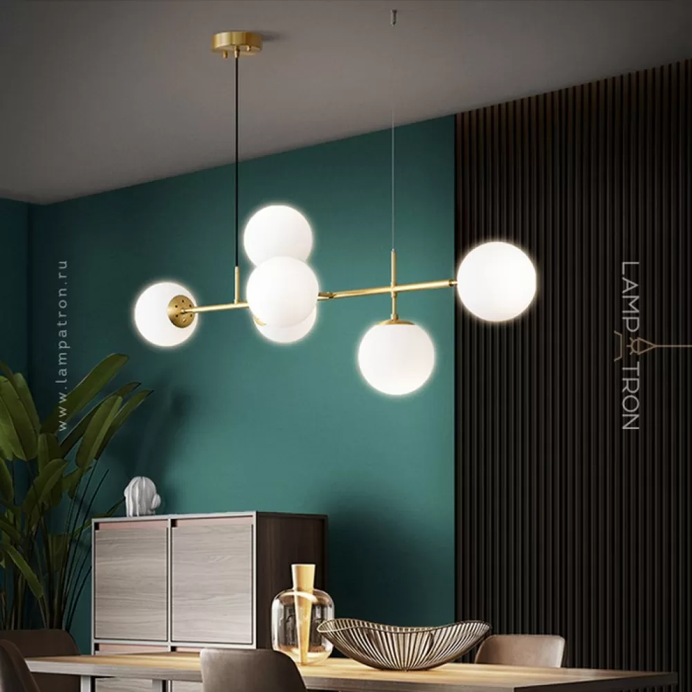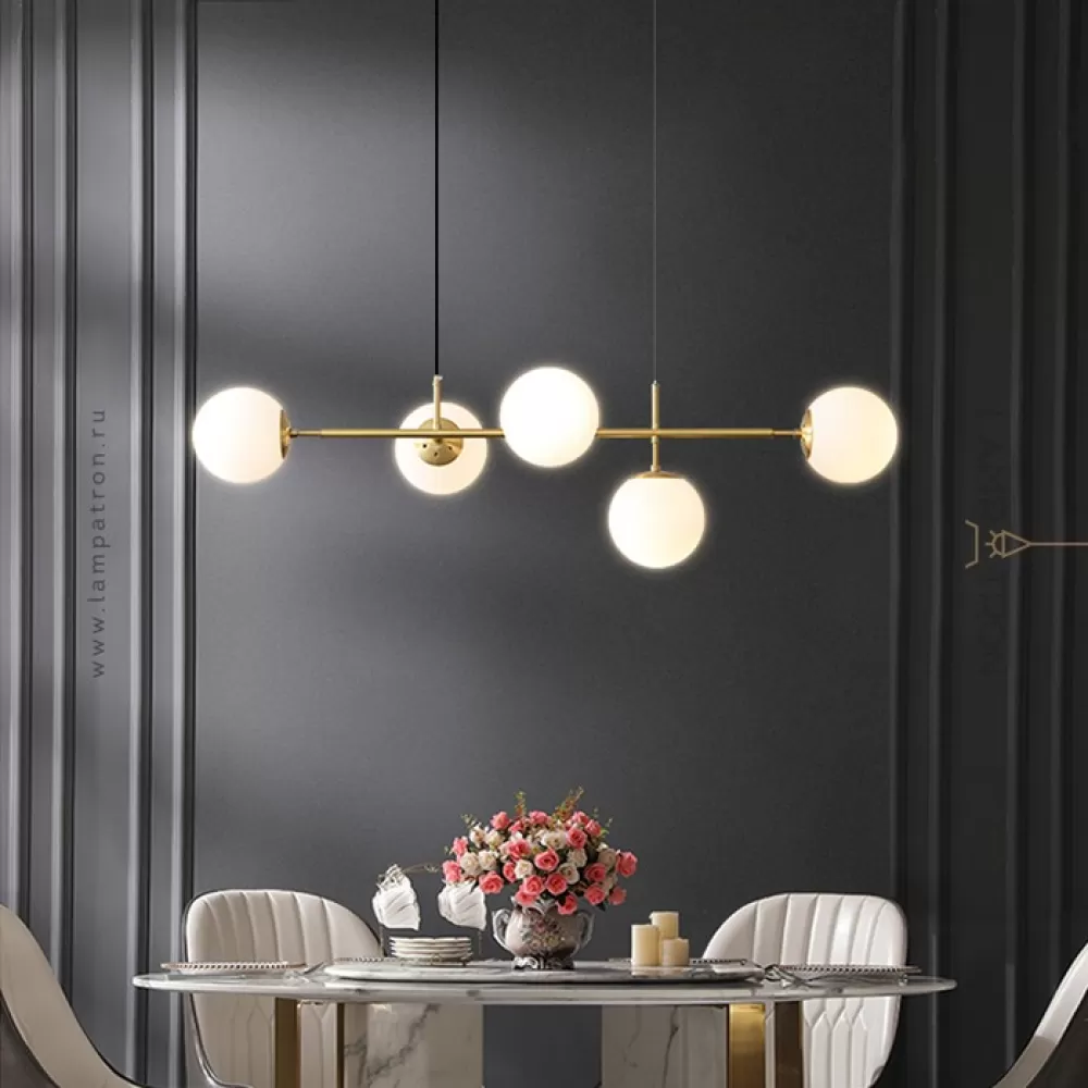 Серия реечных светильников со стеклянными шарообразными плафонами на латунной рейке