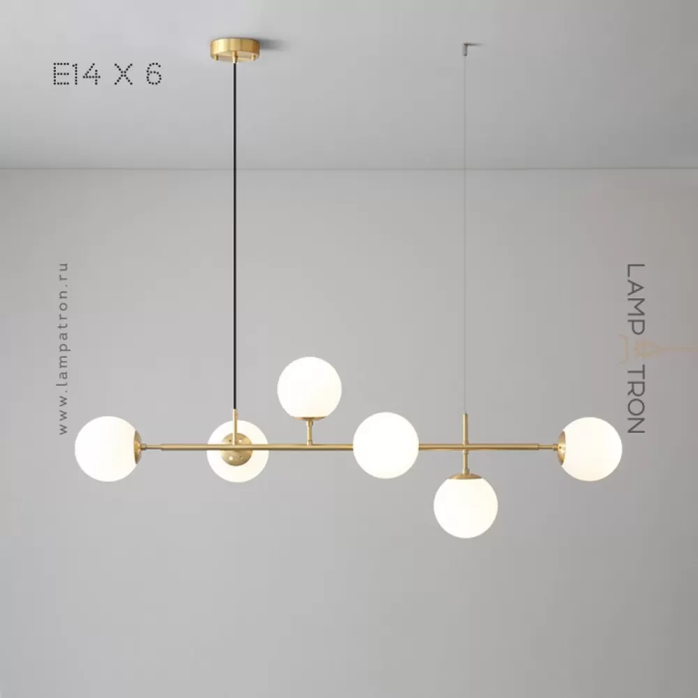 SOREN01. Реечный светильник. Материал: латунь h65/акрил; цвет корпуса: латунь; размеры (ширина × высота): 130 × 40 см; потолочное крепление: Ø 12 см; длина подвеса: 120 см; тип цоколя: E14; количество источников: 6
