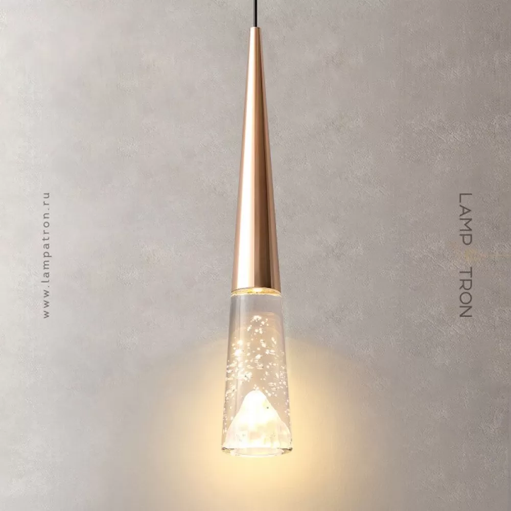 Подвесной светодиодный светильник с хрустальным рассеивателем конической формы с эффектом воздушных пузырьков