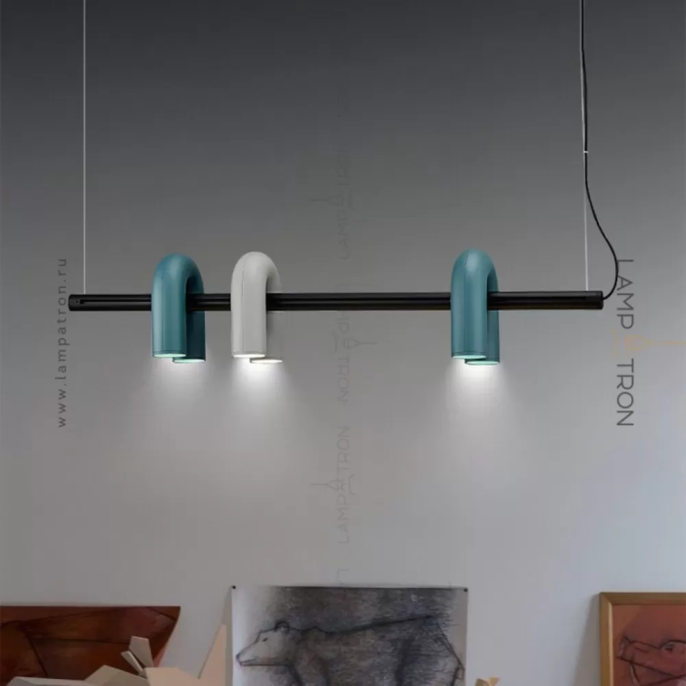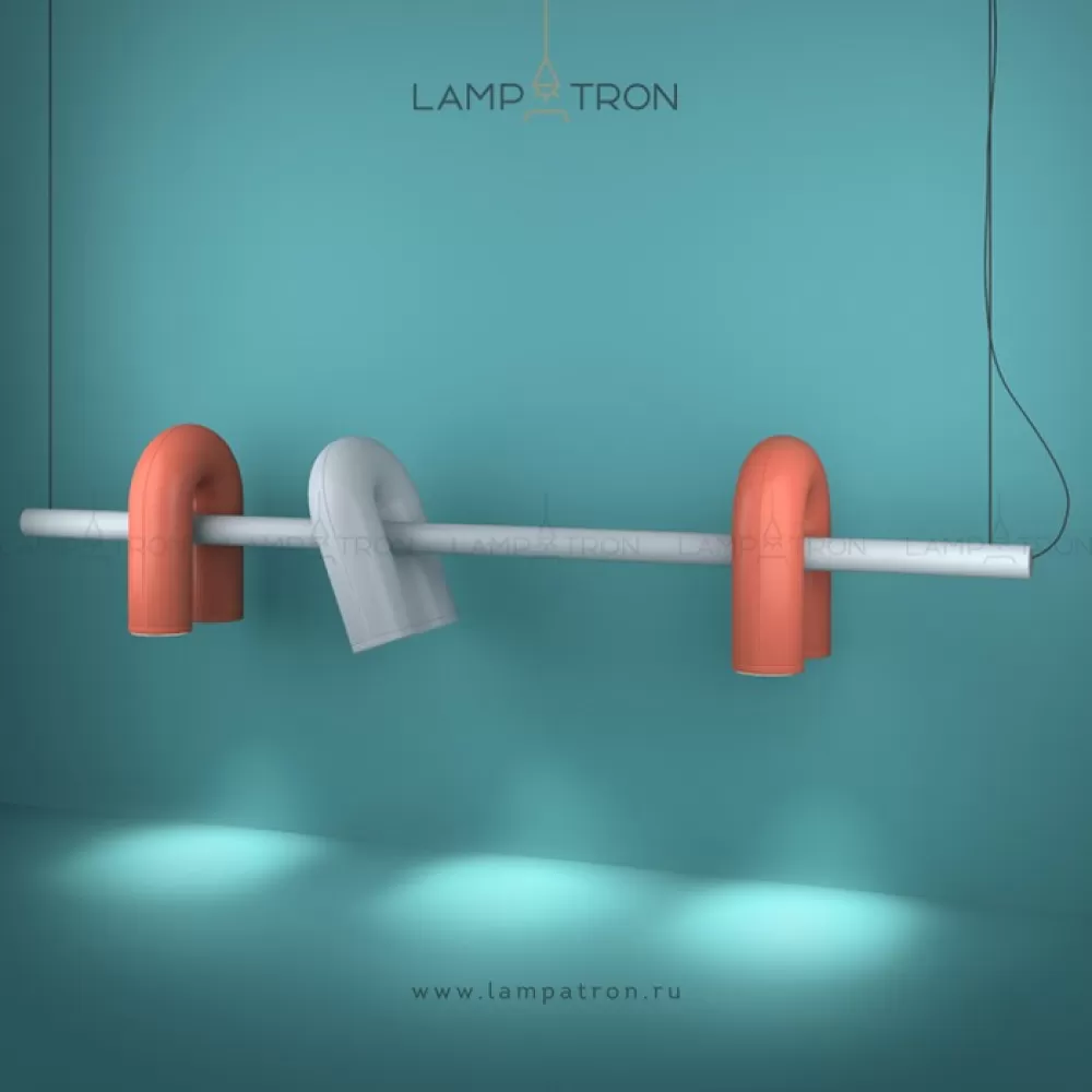 Дизайнерский светодиодный светильник с дугообразными трубчатыми плафонами на горизонтальной рейке
