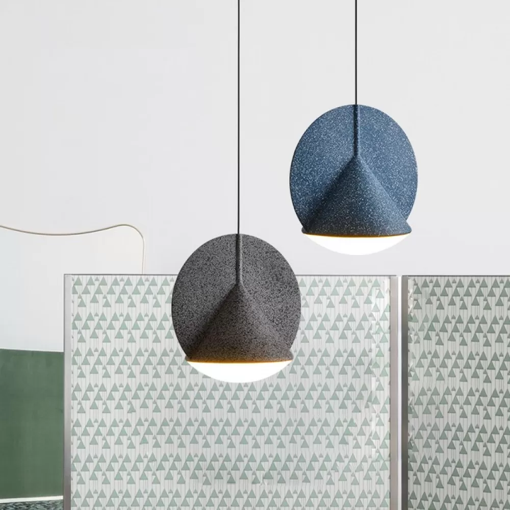FLECKS01. Подвесной светильник. Материал: полимеры / акрил; цвет: серый; размеры (диаметр × высота): Ø 30 × 30 см; потолочное крепление (диаметр × высота): Ø 10 × 2 см; длина провода: 150 см; тип источника: LED матрица; мощность: 12W; количество источников: 1