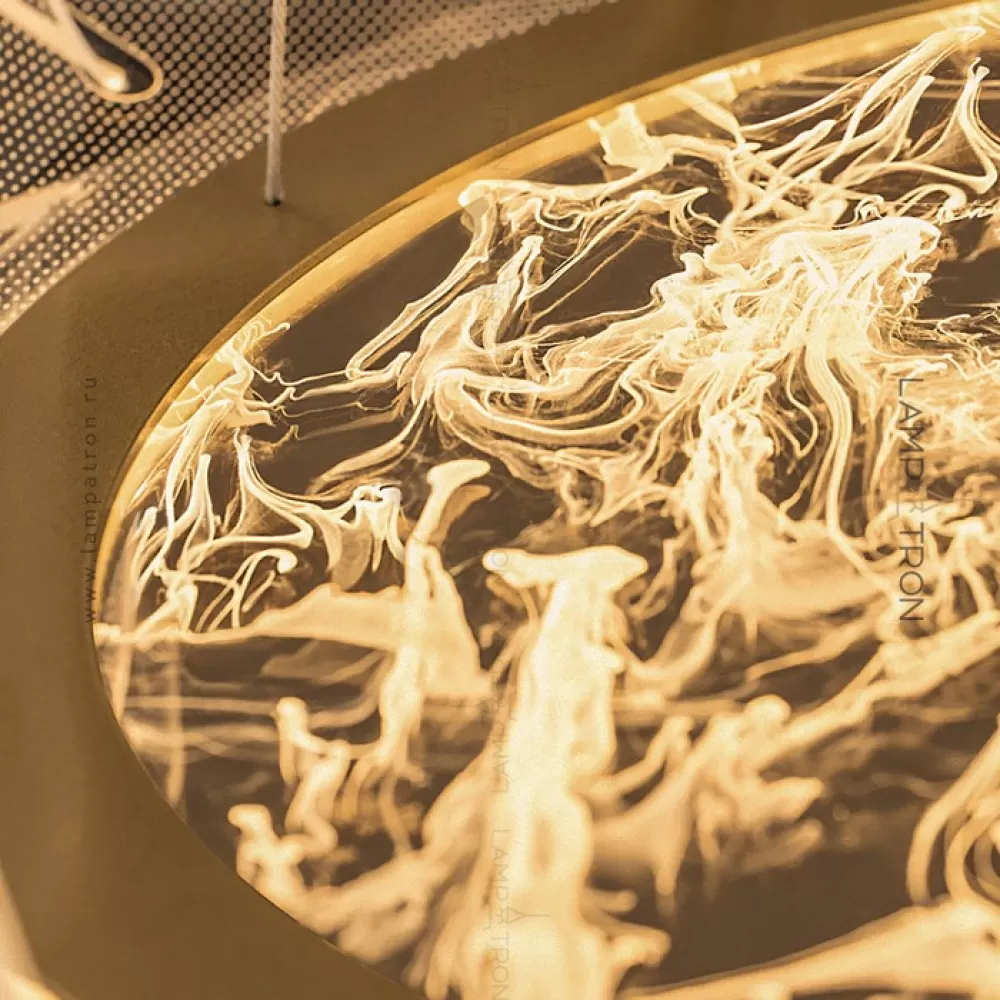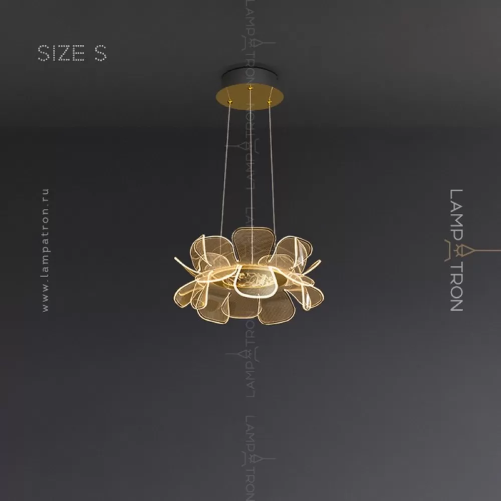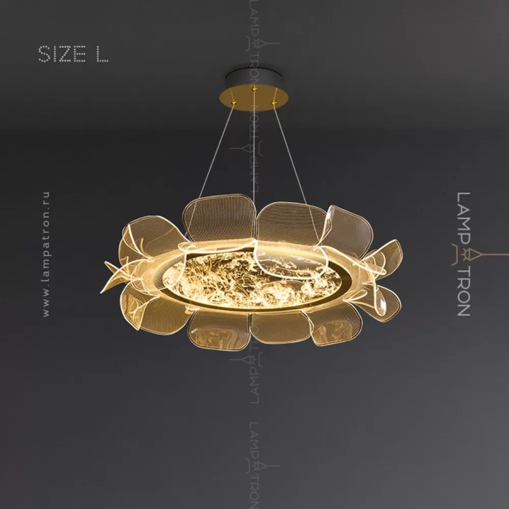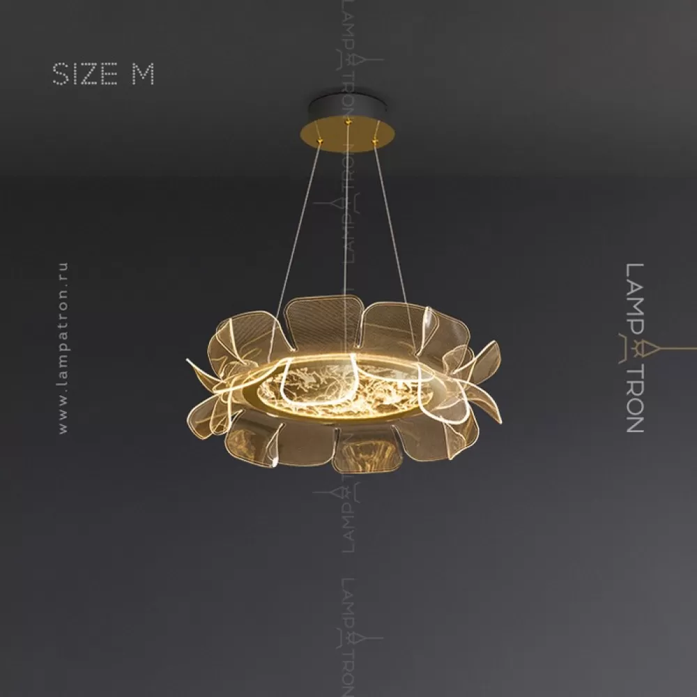 FLORISTA01. Люстра. Материал: металл/акрил; цвет корпуса: латунь+черный; размеры (диаметр × высота): Ø 35 × 35 см; длина подвеса: 120 см; тип источника: LED матрица; цветовая температура: трехцветный свет; мощность: 30W; количество источников: 1