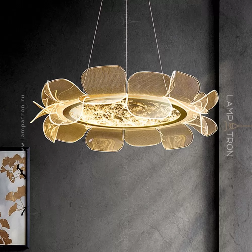 Серия дизайнерских светодиодных люстр с рассеивателями-лепестками по контуру дисковидного корпуса с дымчатым эффектом