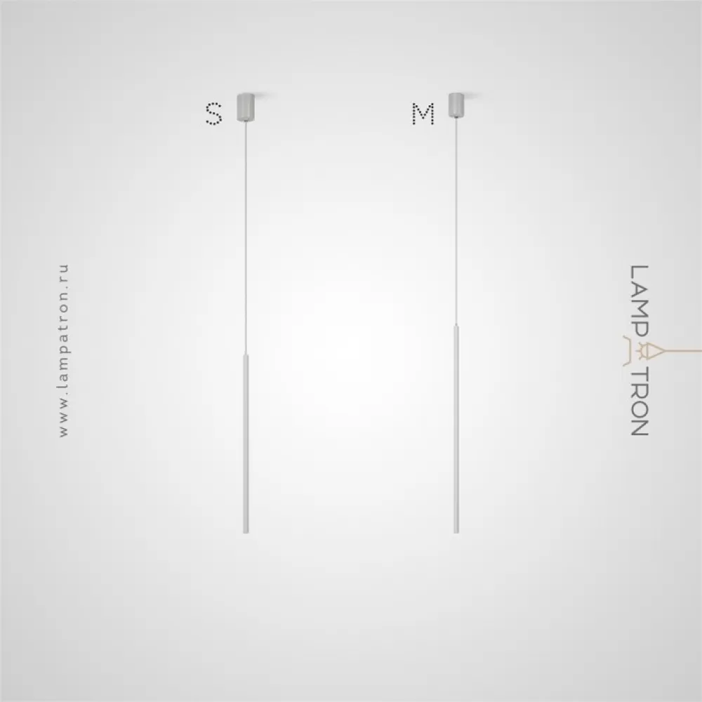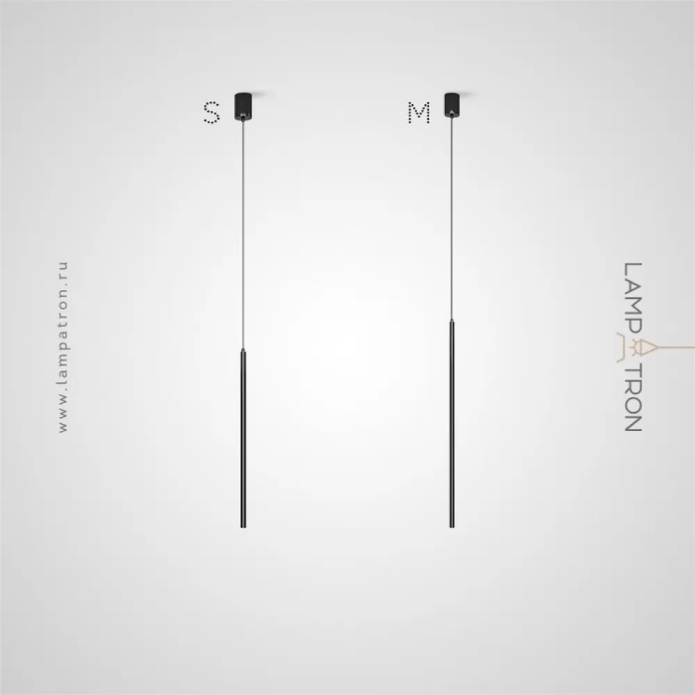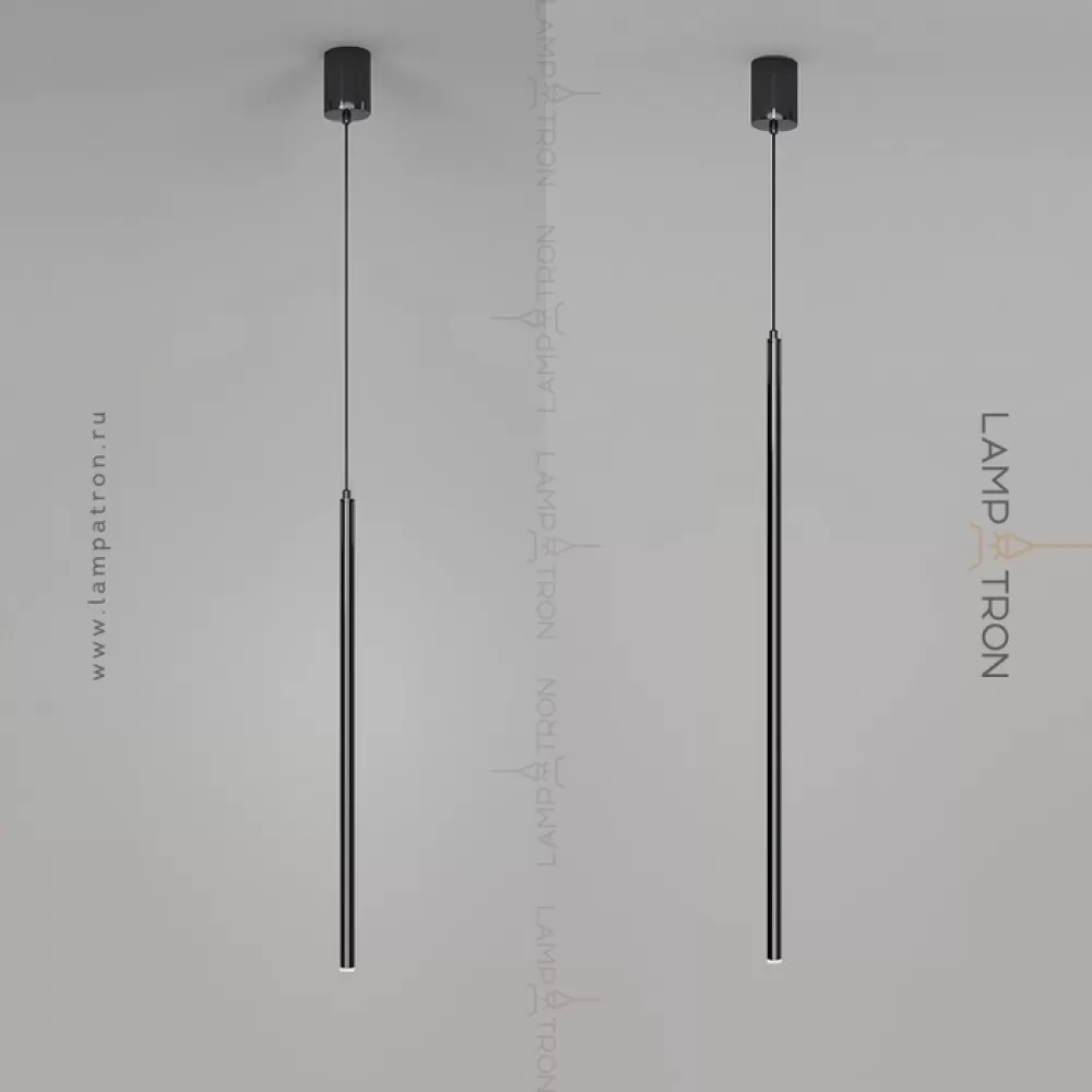 Серия подвесных светодиодных светильников с матовым наконечником и вытянутым световым элементом на цилиндрическом корпусе