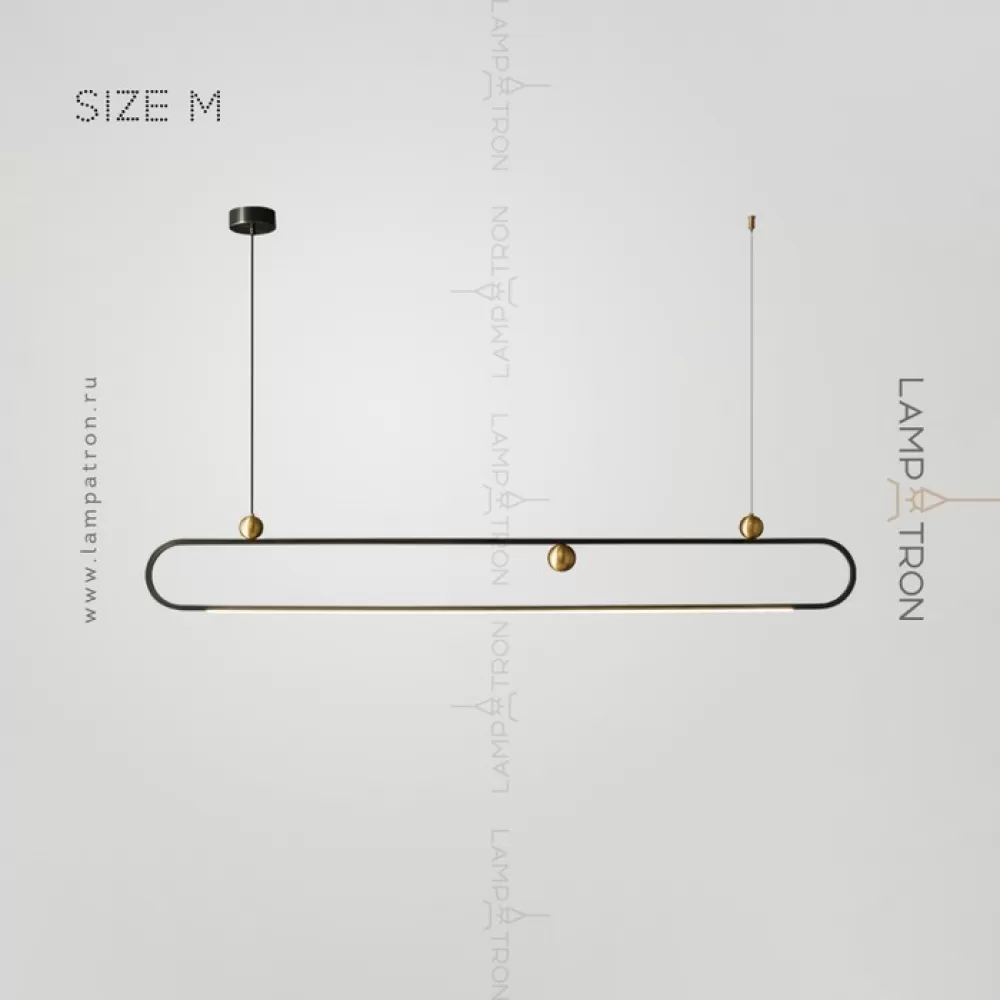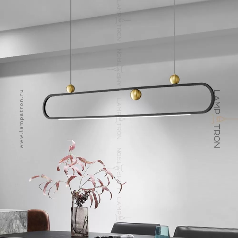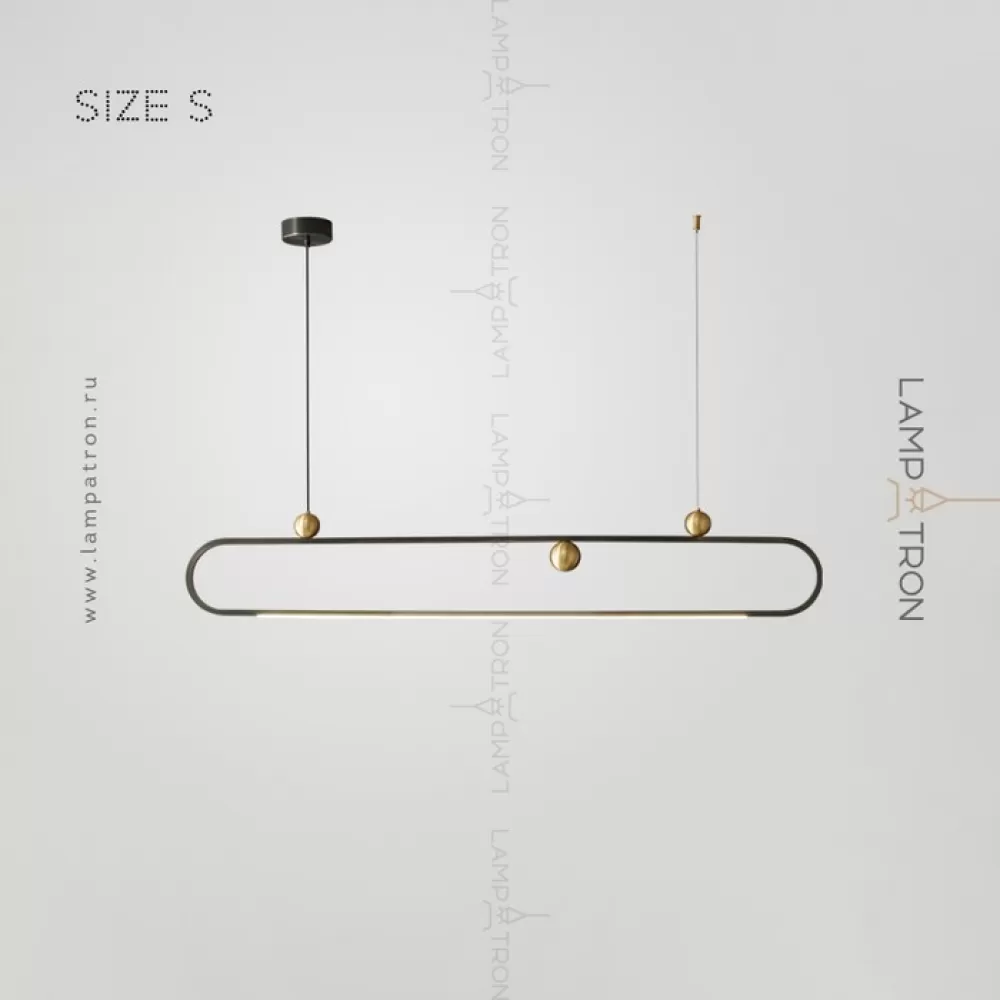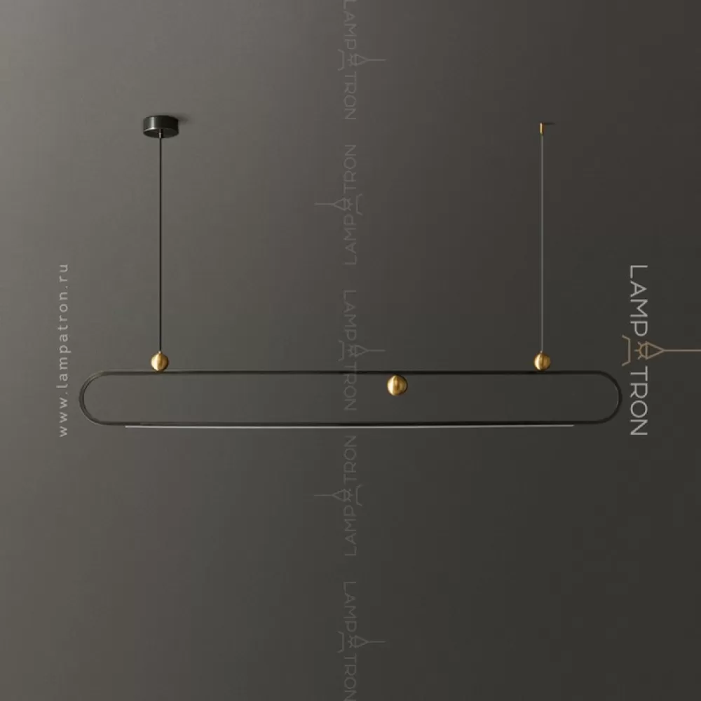 Серия реечных светильников с декоративными латунными шарами на закольцованном корпусе с нижней LED-подсветкой