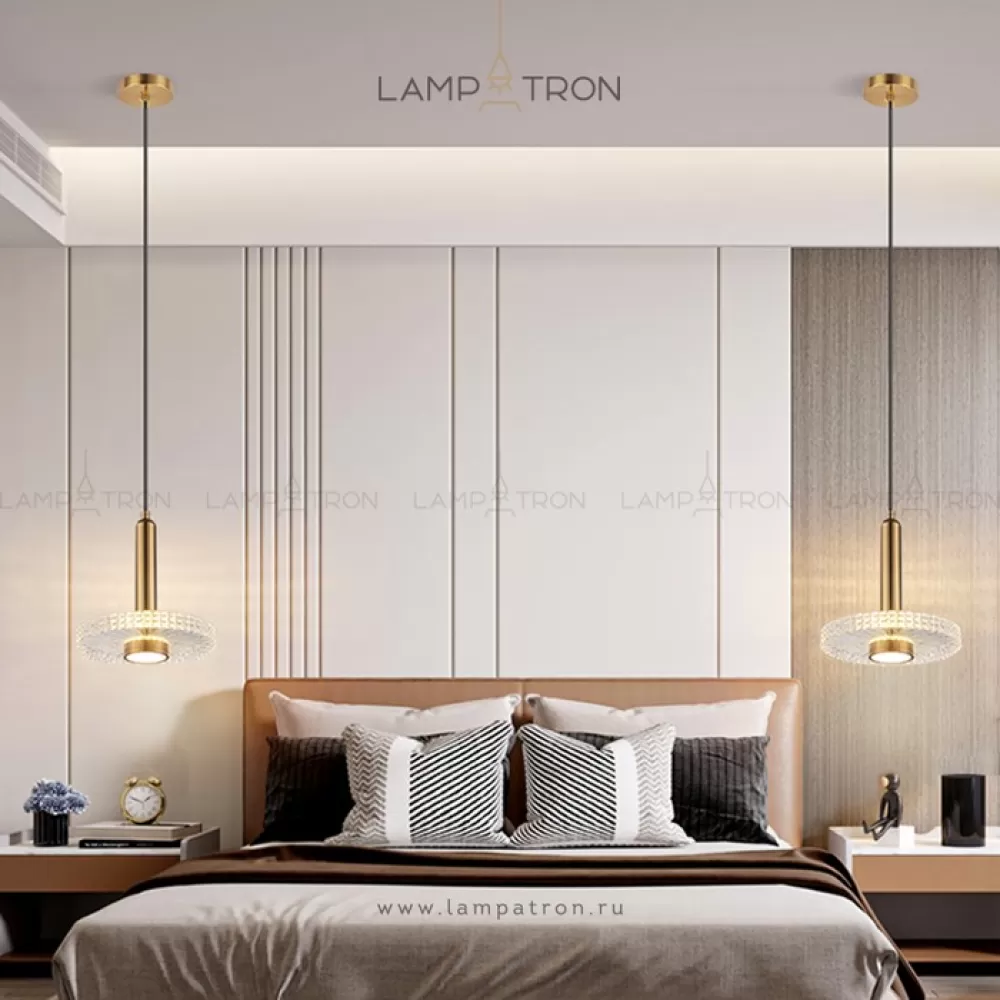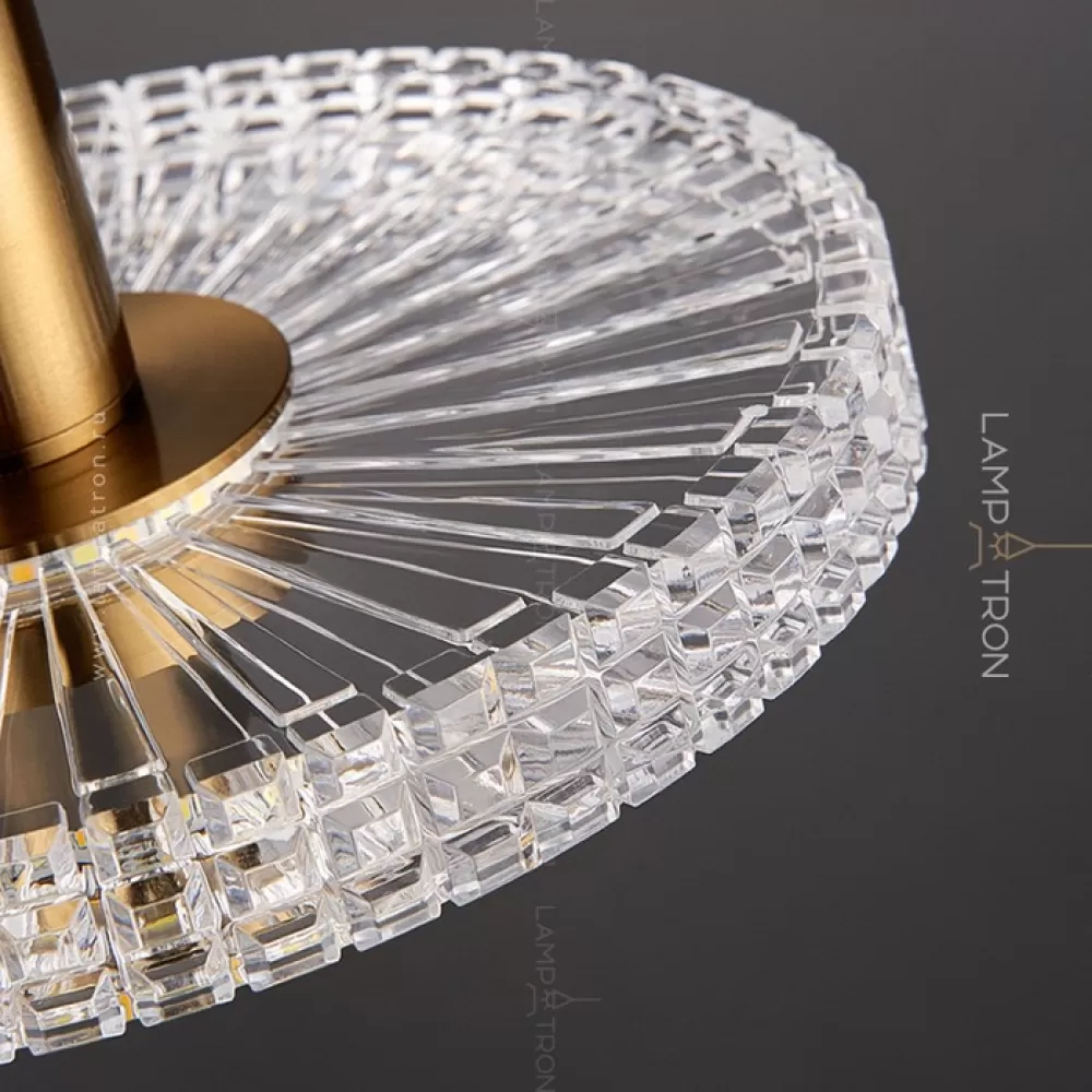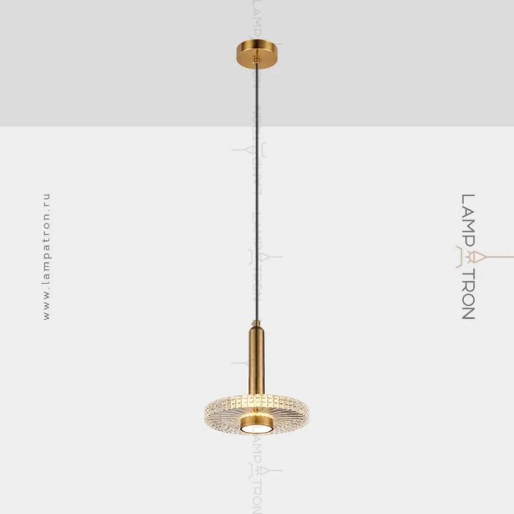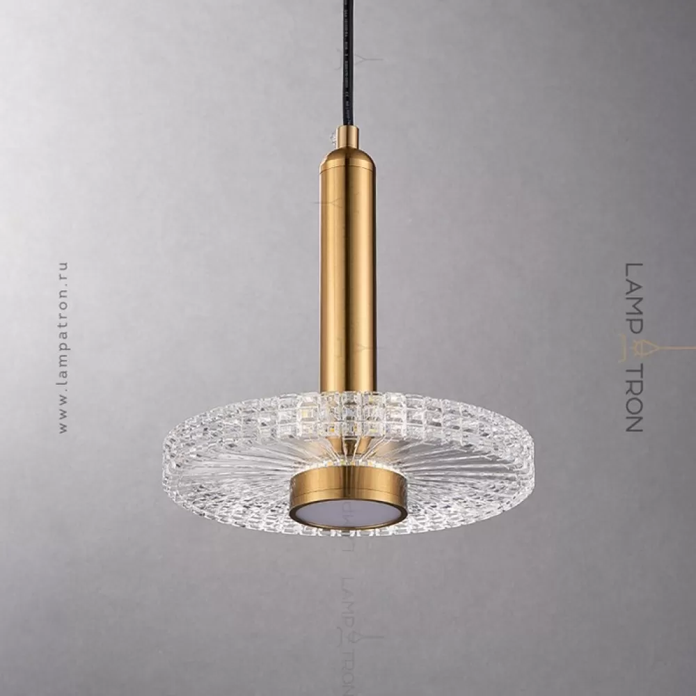 GEORGA01. Подвес. Материал: металл/акрил; цвет корпуса: латунь; размеры (диаметр × высота): Ø 16 × 22 см; длина подвеса: 150 см; тип источника: LED матрица; цветовая температура: теплый свет; количество источников: 1