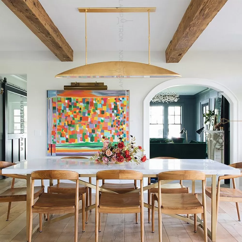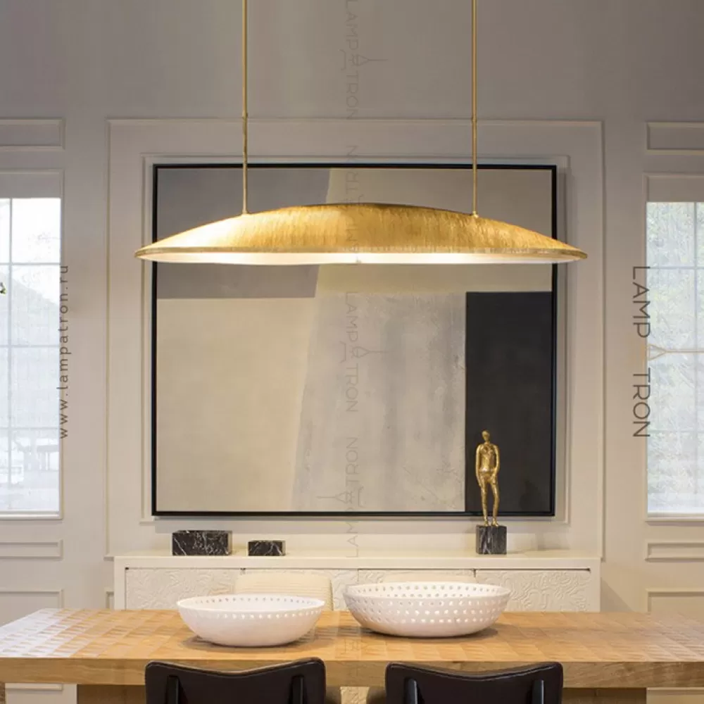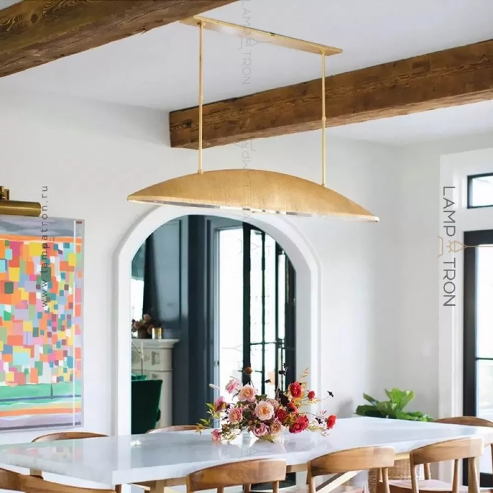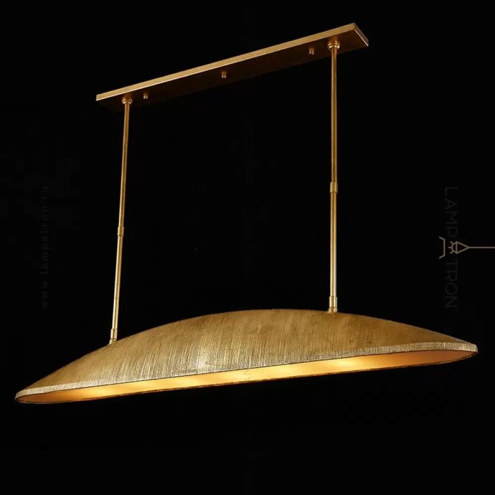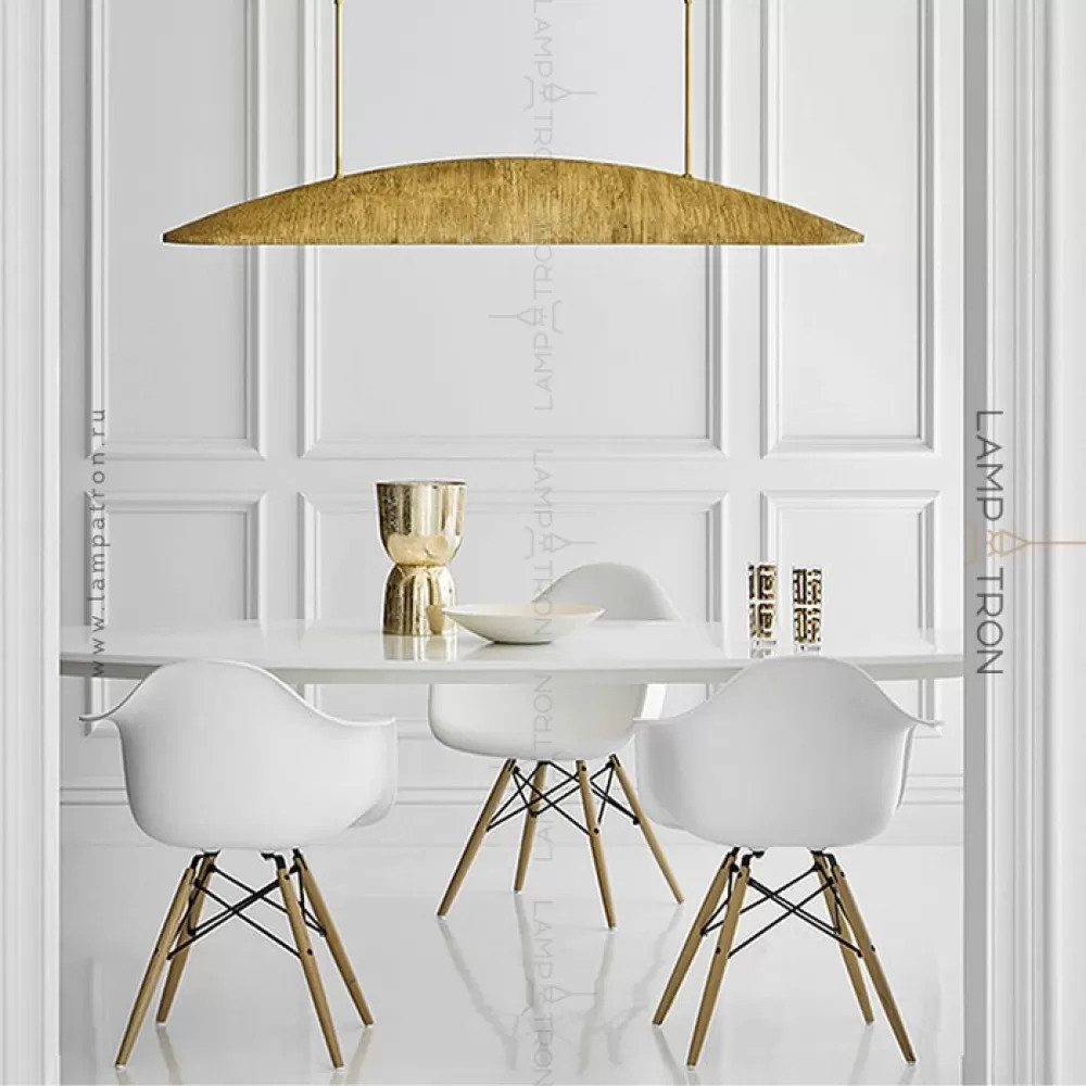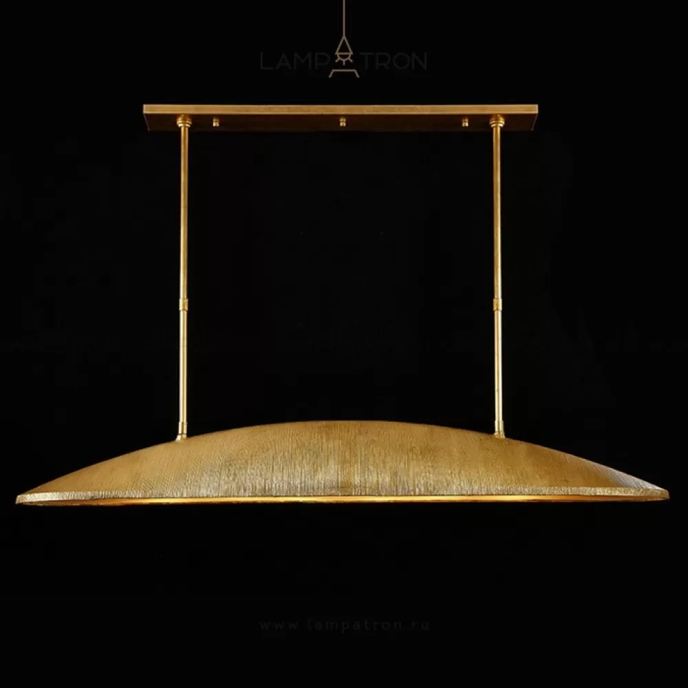 Реечный светодиодный светильник с металлическим плафоном вытянутой округлой формой с нанесением сусального золота