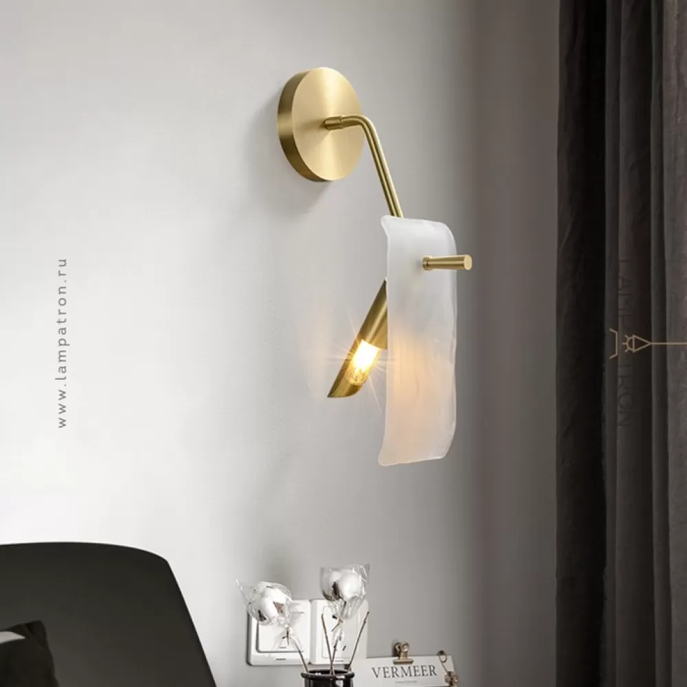 Настенный светильник с прямоугольным рассеивателем из стекла с морозным эффектом на угловом кроншейне