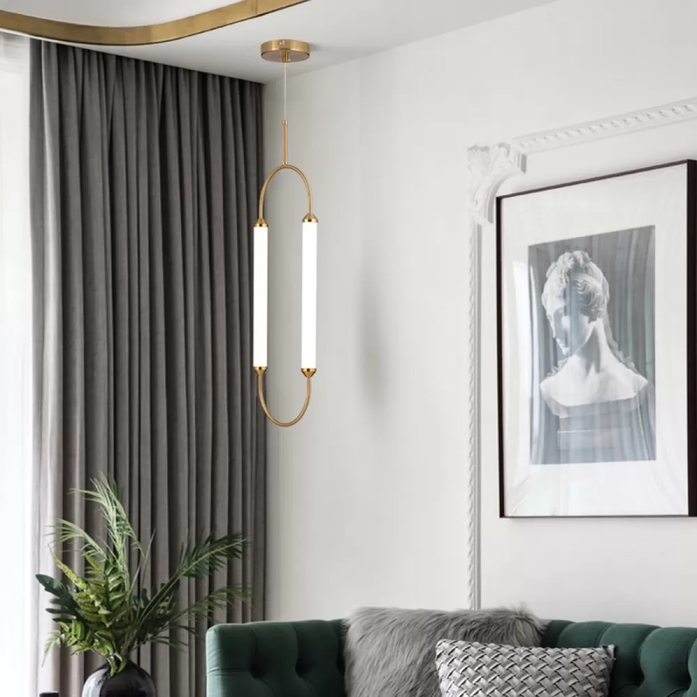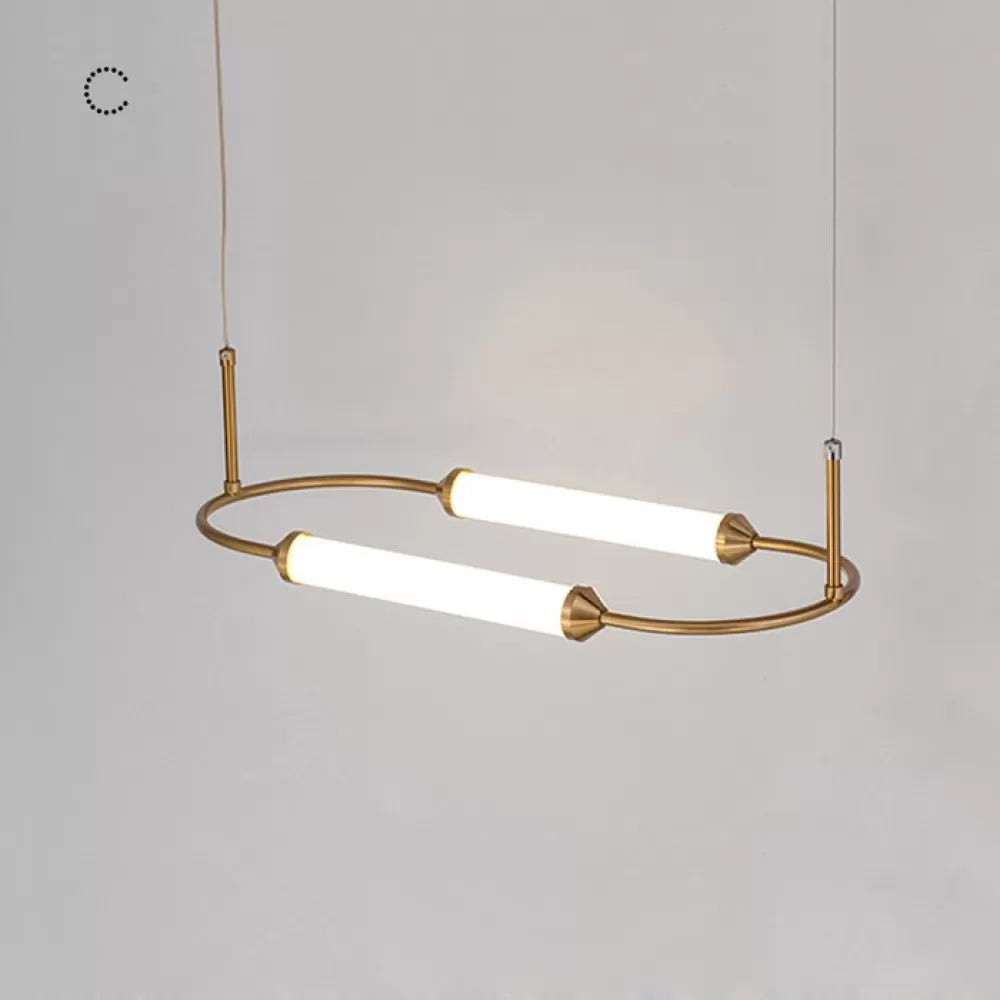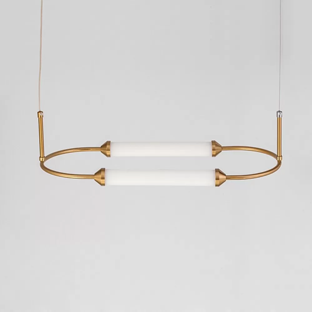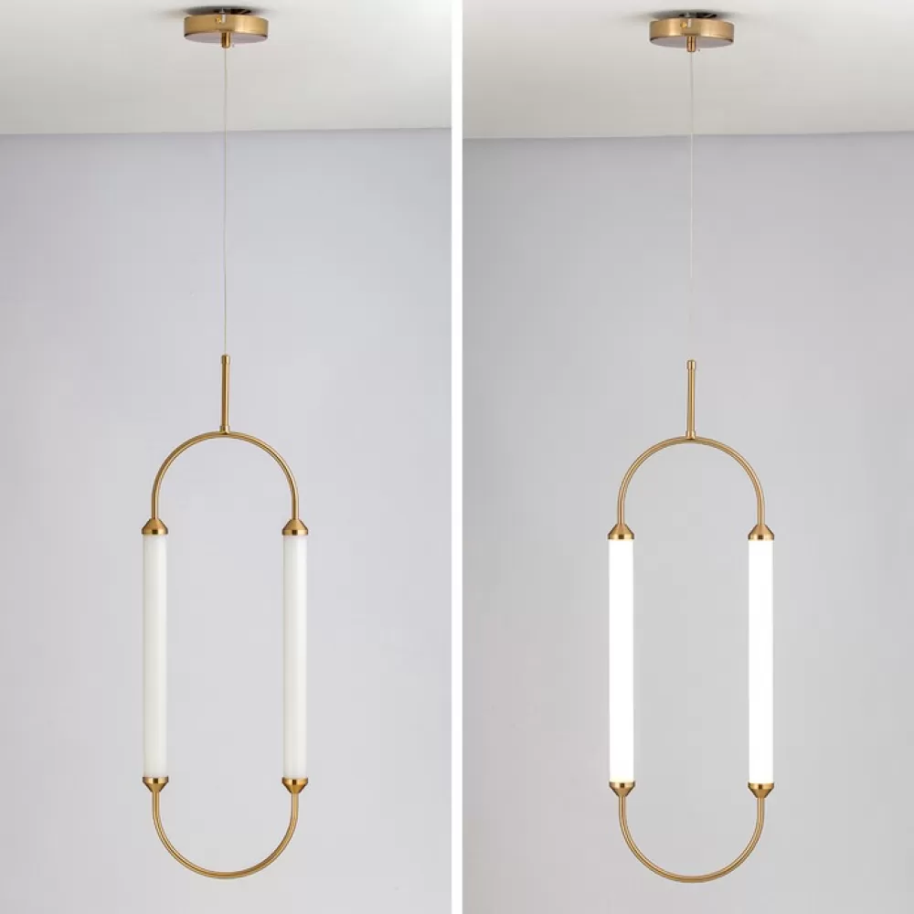 HOVER01. Подвесной светильник. Материал: металл / акрил; цвет: латунь; размеры (длина × ширина): 64 × 23,8 см; трубка (диаметр): Ø 3,4 см; длина подвеса: 120 см; тип источника: LED матрица; количество источников: 2