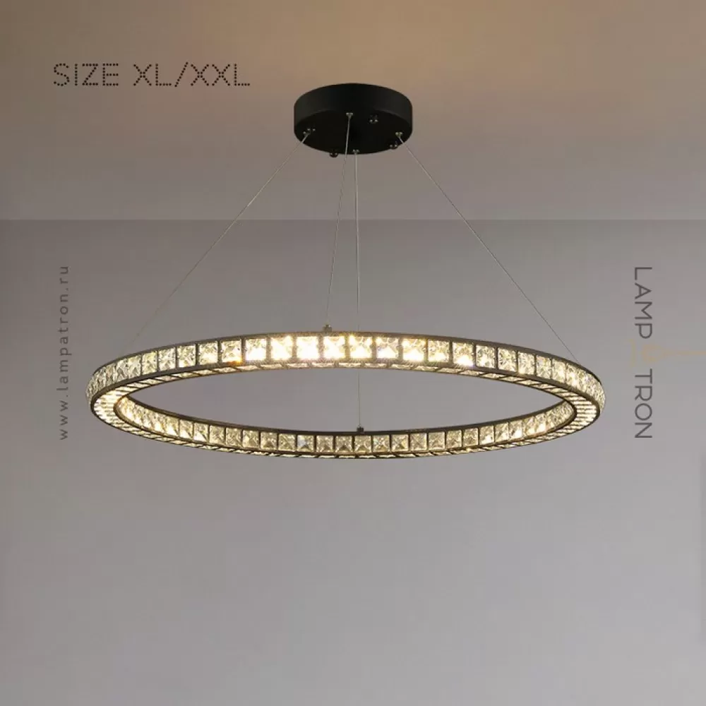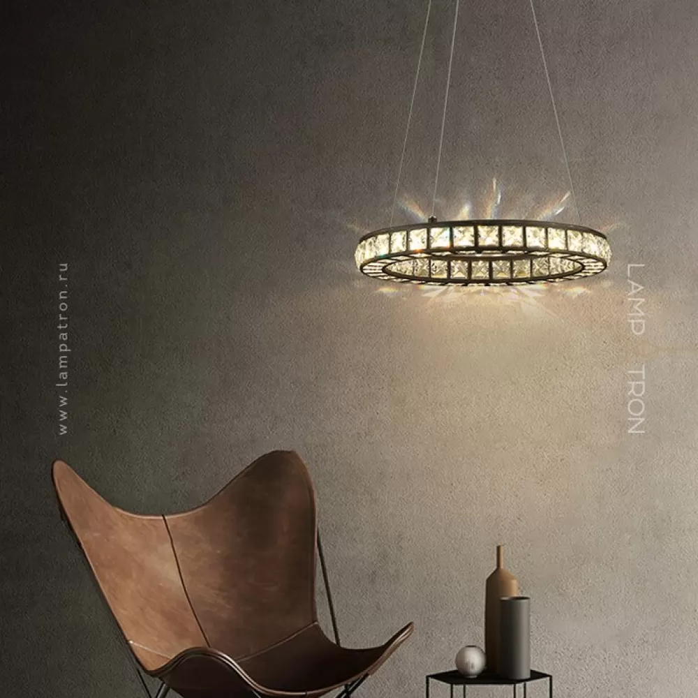 Серия кольцевых светодиодных люстр с прямоугольными рассеивателями в виде многогранных хрустальных слитков