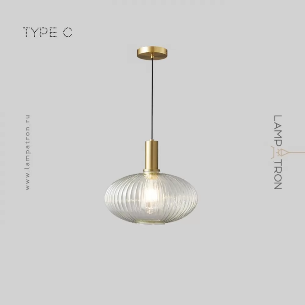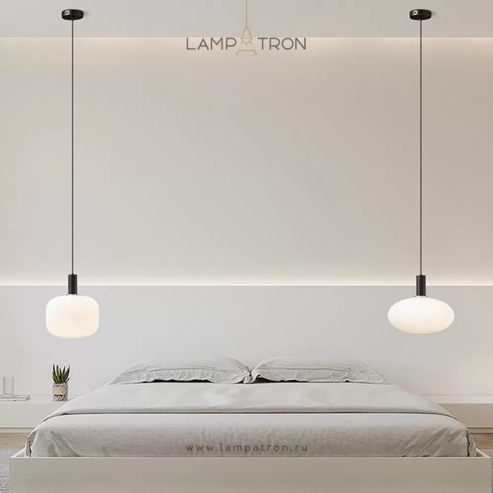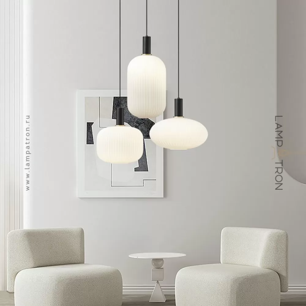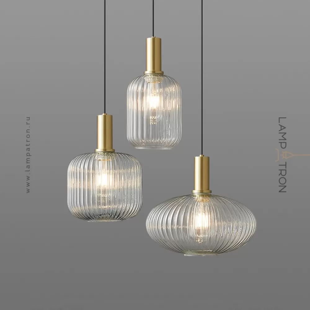 Серия подвесных светильников с рельефными плафонами из белого и прозрачного стекла