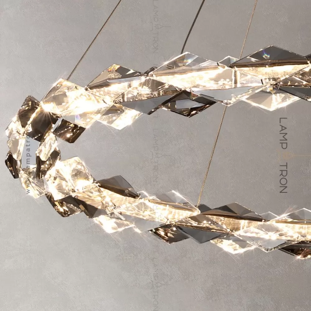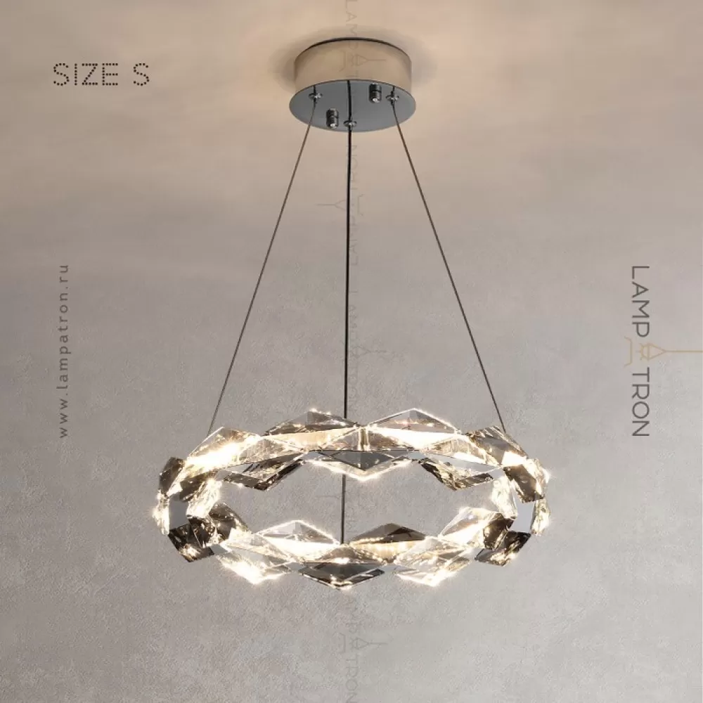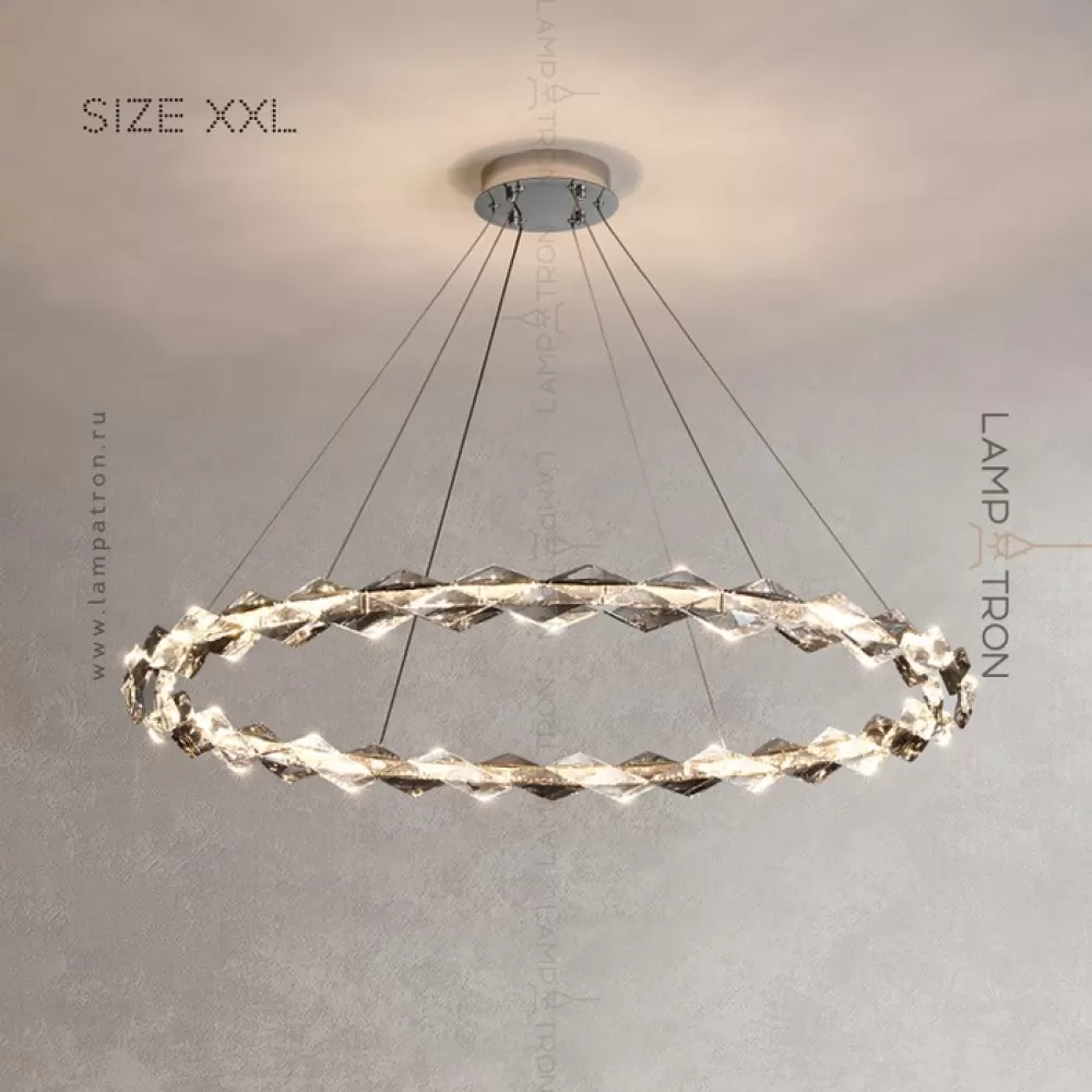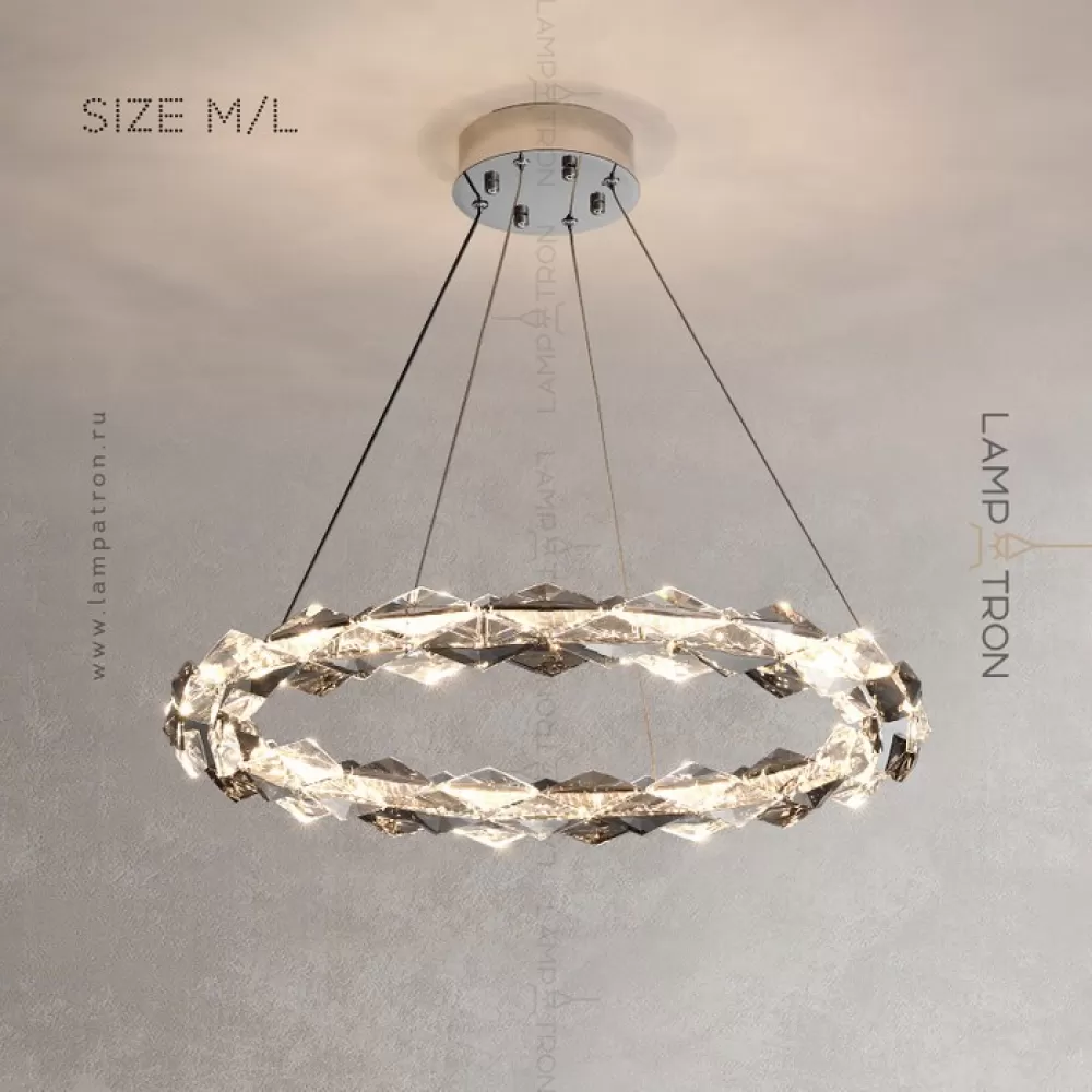 Серия кольцевых светодиодных люстр с хрустальными рассеивателями в виде накладных пластин ромбической формы
