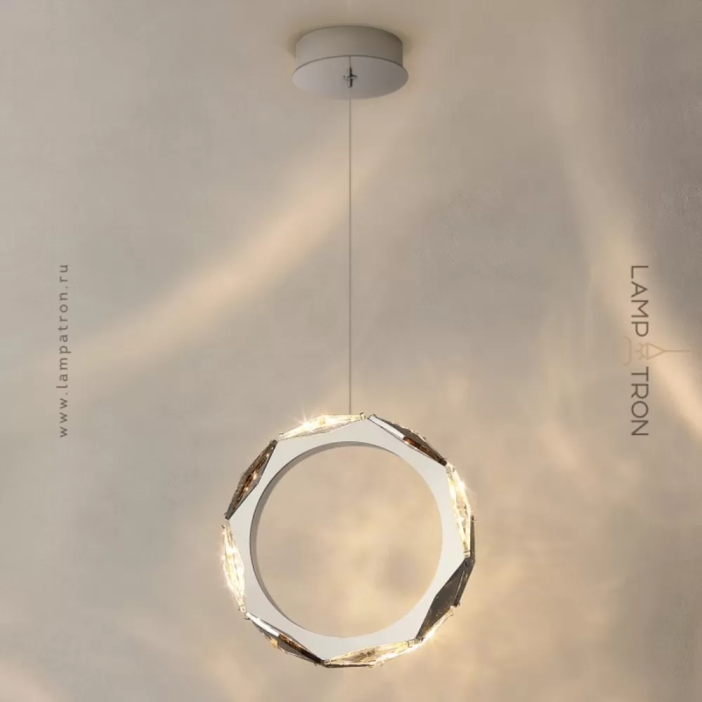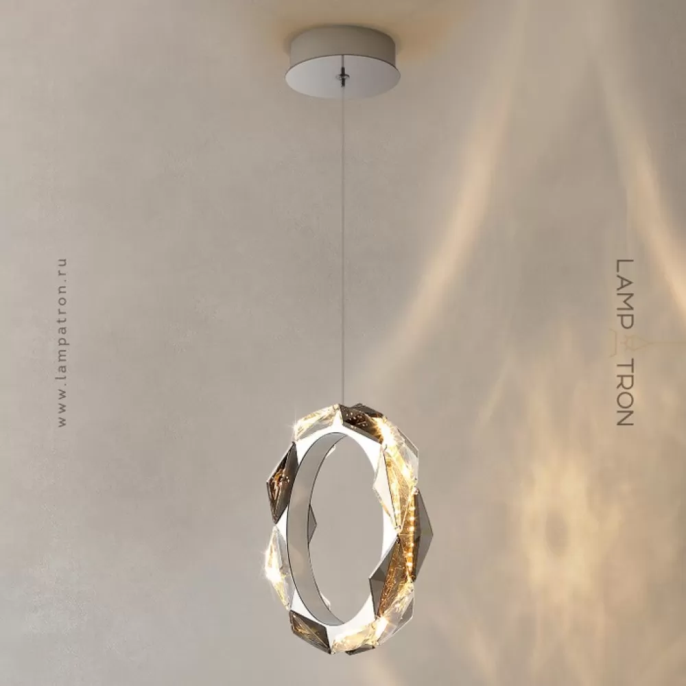 Подвесной светодиодный светильник с ромбическими рассеивателями из хрусталя К9 на кольцевом корпусе