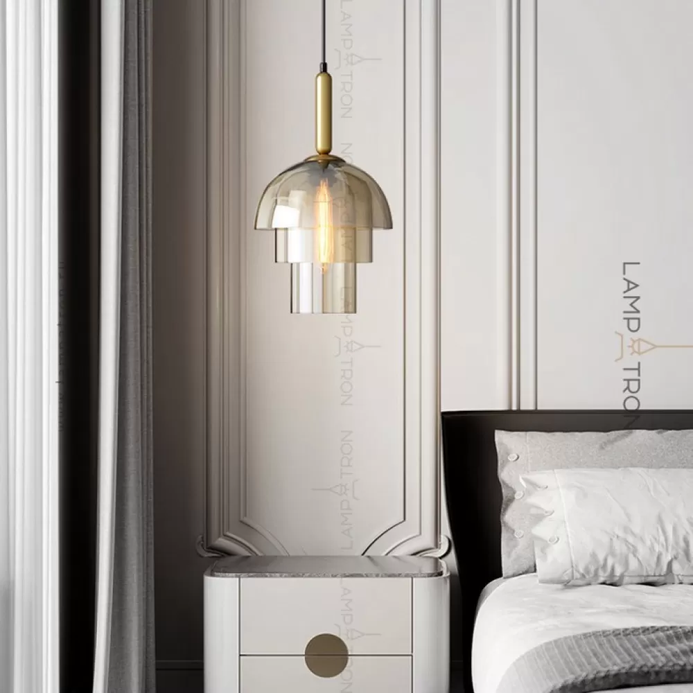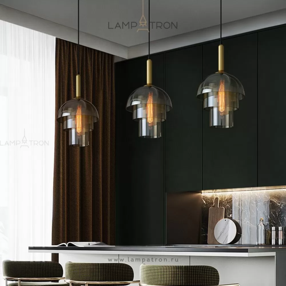 Серия подвесных светильников с двух- или трехслойным плафоном благородного коньячного цвета