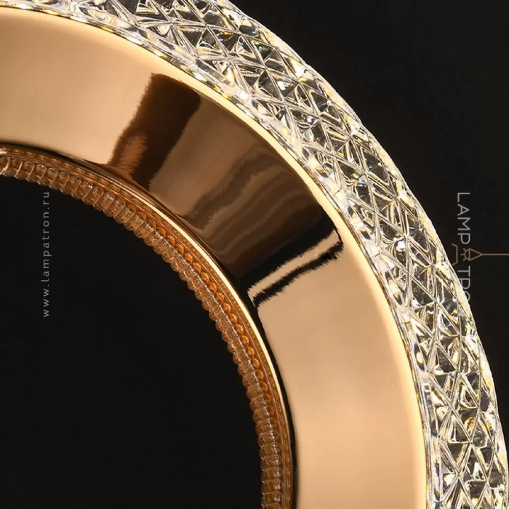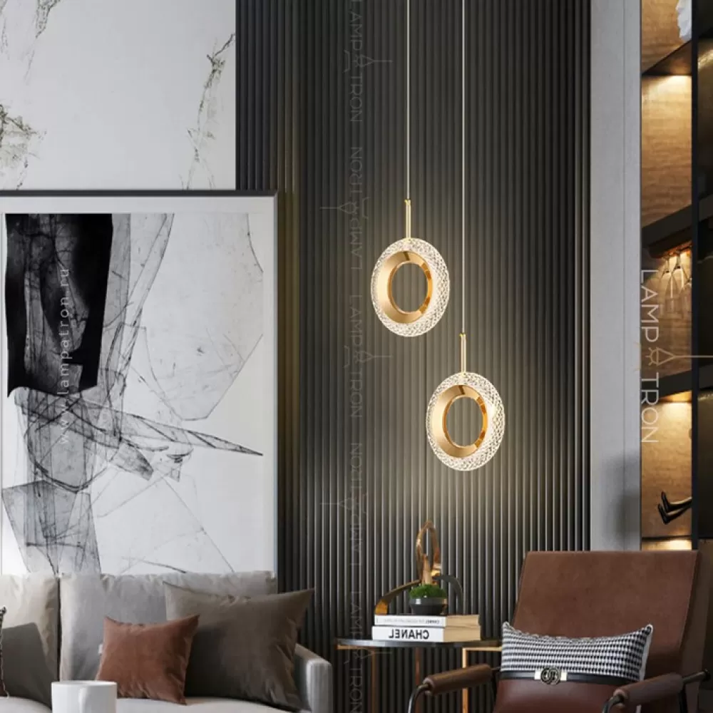 KEZIA-DUO-RING01. Готовая комбинация. Материал: металл/акрил; цвет корпуса: латунь; размеры (диаметр × высота): Ø 20 × 31 см; потолочное крепление: Ø 15 см; длина подвеса: 200 см; тип источника: LED матрица; цветовая температура: теплый свет; мощность: 18W; количество источников: 2