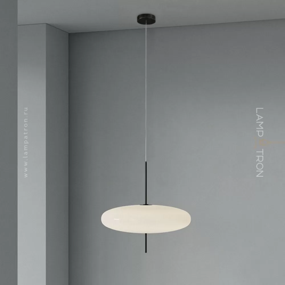 LAKIN01. Подвесной светильник. Материал: металл / стекло; цвет каркаса: черный; размеры (диаметр × высота): Ø 30 × 41,5 см; плафон: Ø 30 × 13 см; длина подвеса: 150 см; тип источника: LED матрица (трехцветный свет); мощность: 30W; количество источников: 1