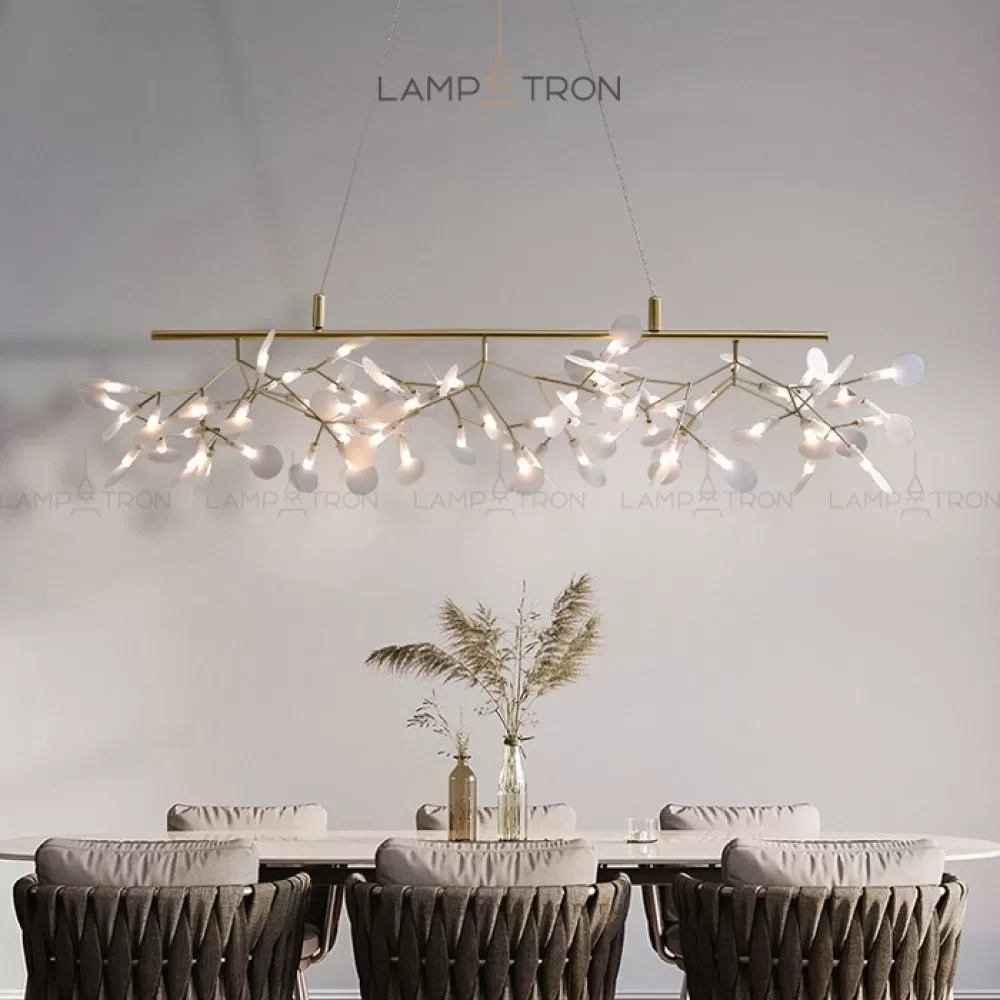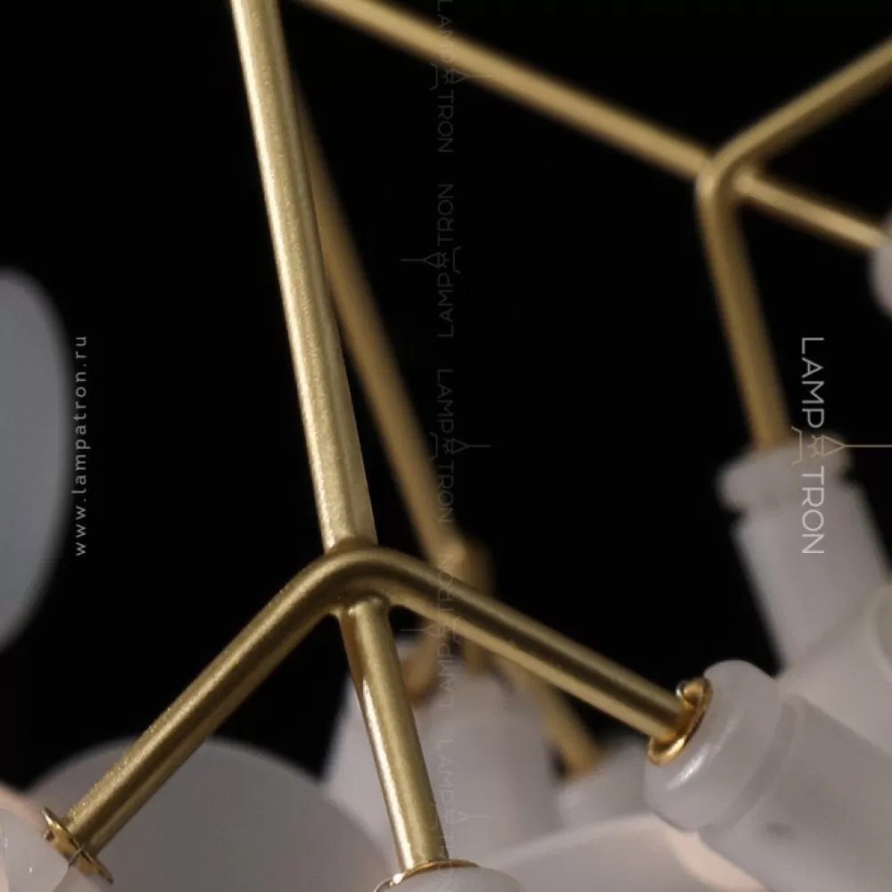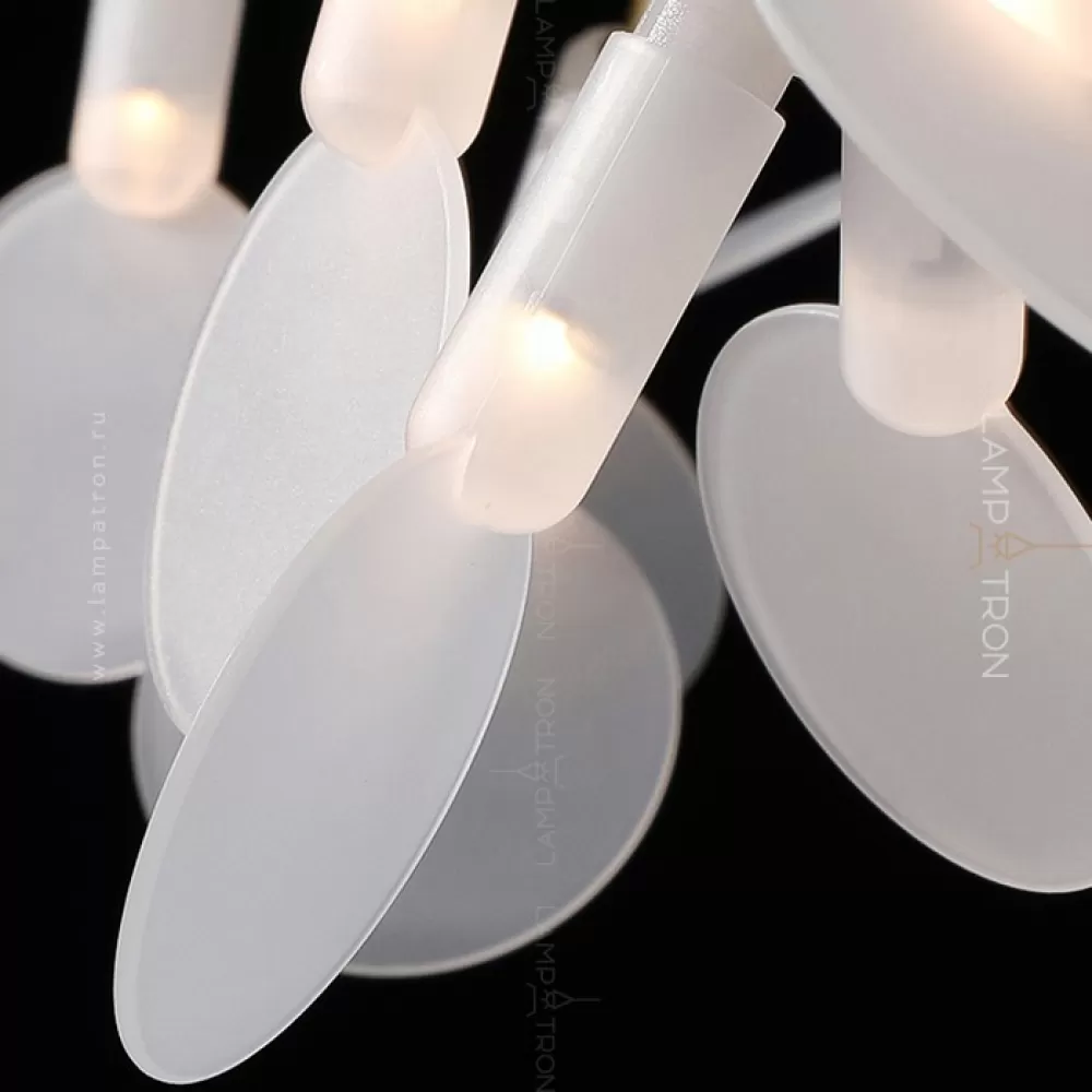 Реечный светильник с точечными светодиодными источниками и белыми дисковидными рассеивателями на ветвистом каркасе