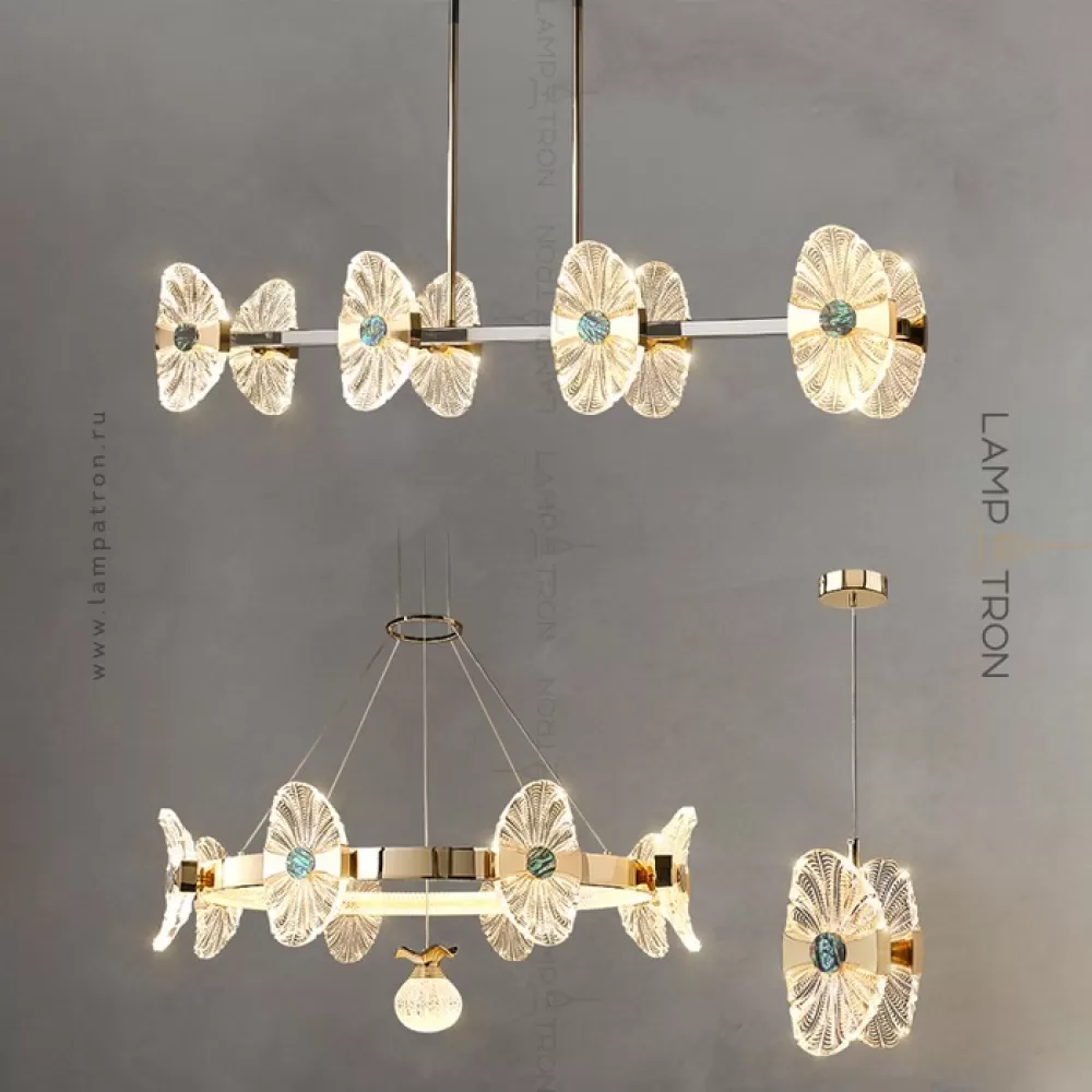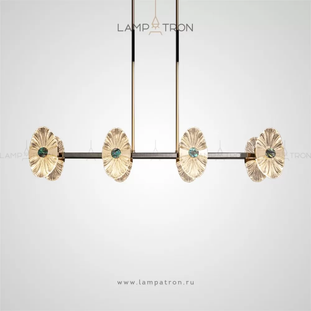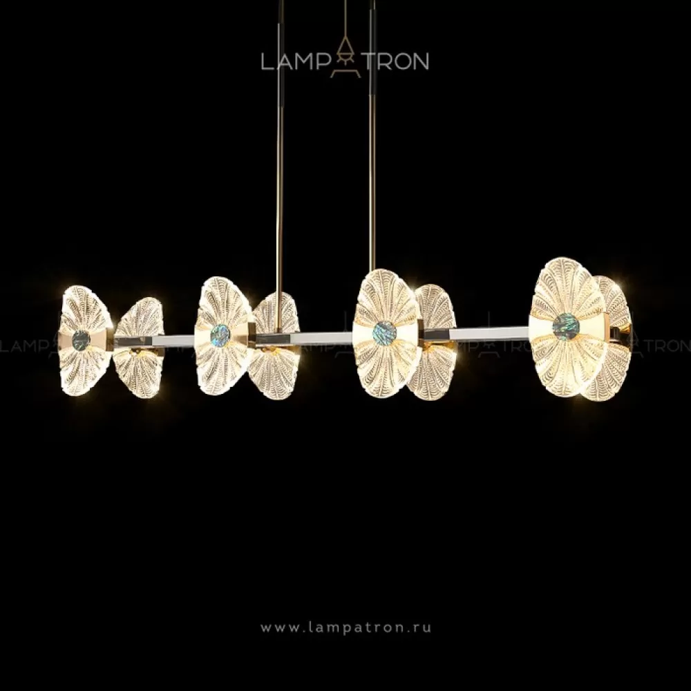 Реечный светодиодный светильник с ажурными плафонами, стилизованными под цветы с перламутровой сердцевиной