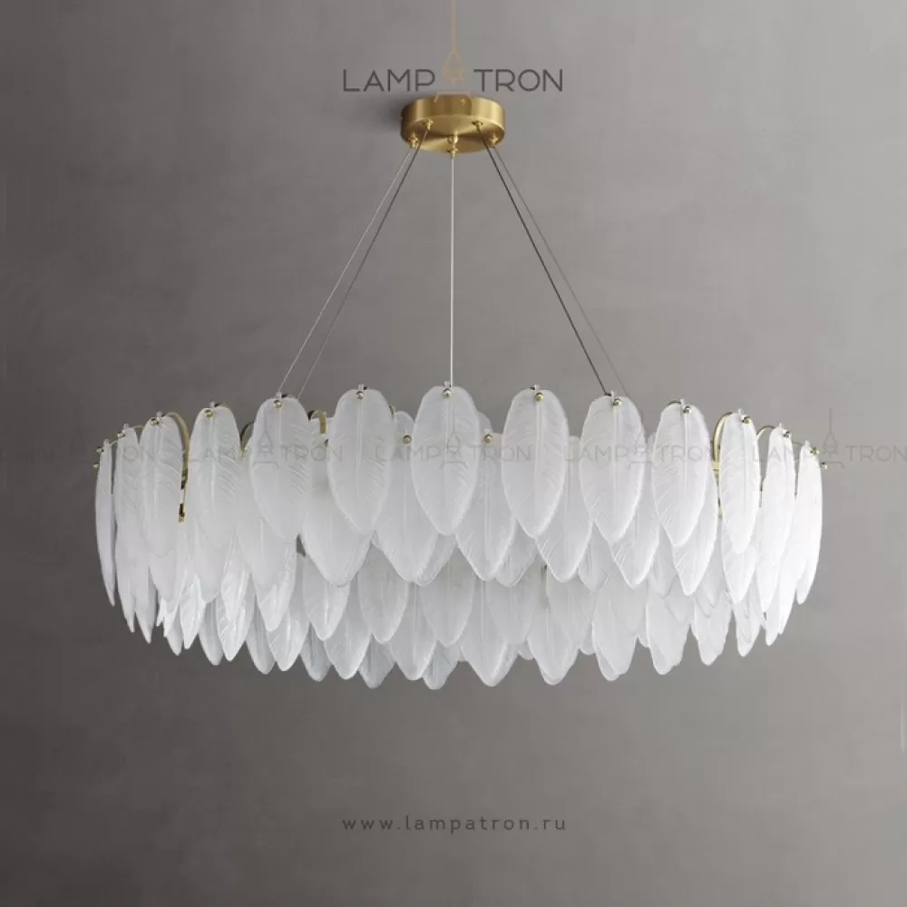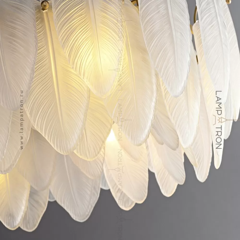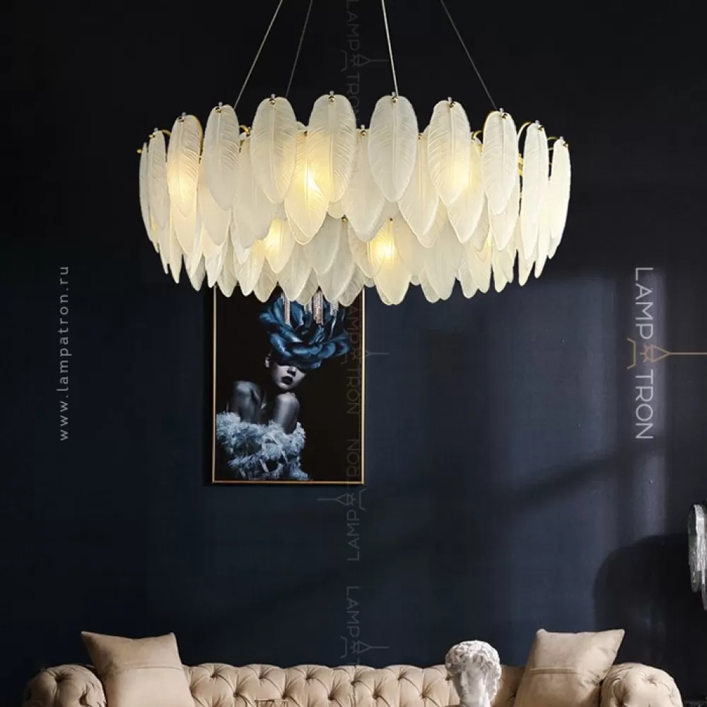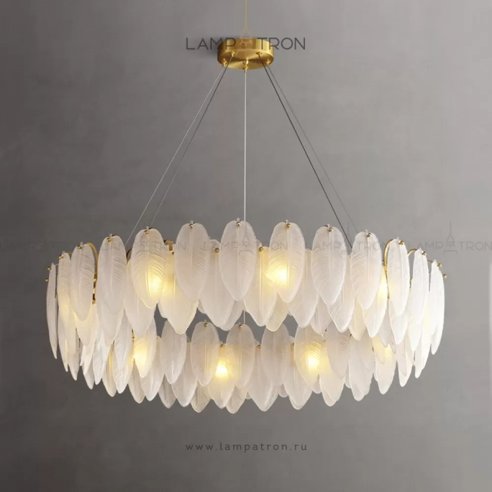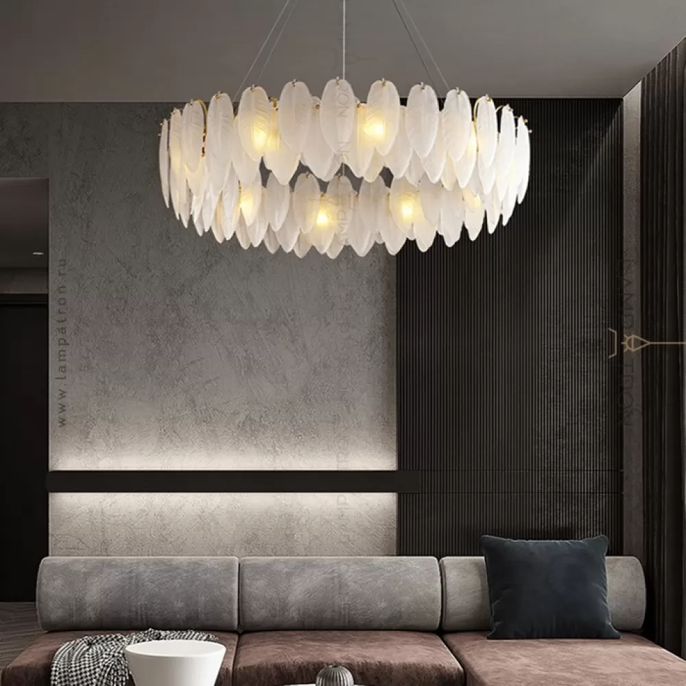 Серия люстр с абажуром в виде композиции из стеклянных перьев