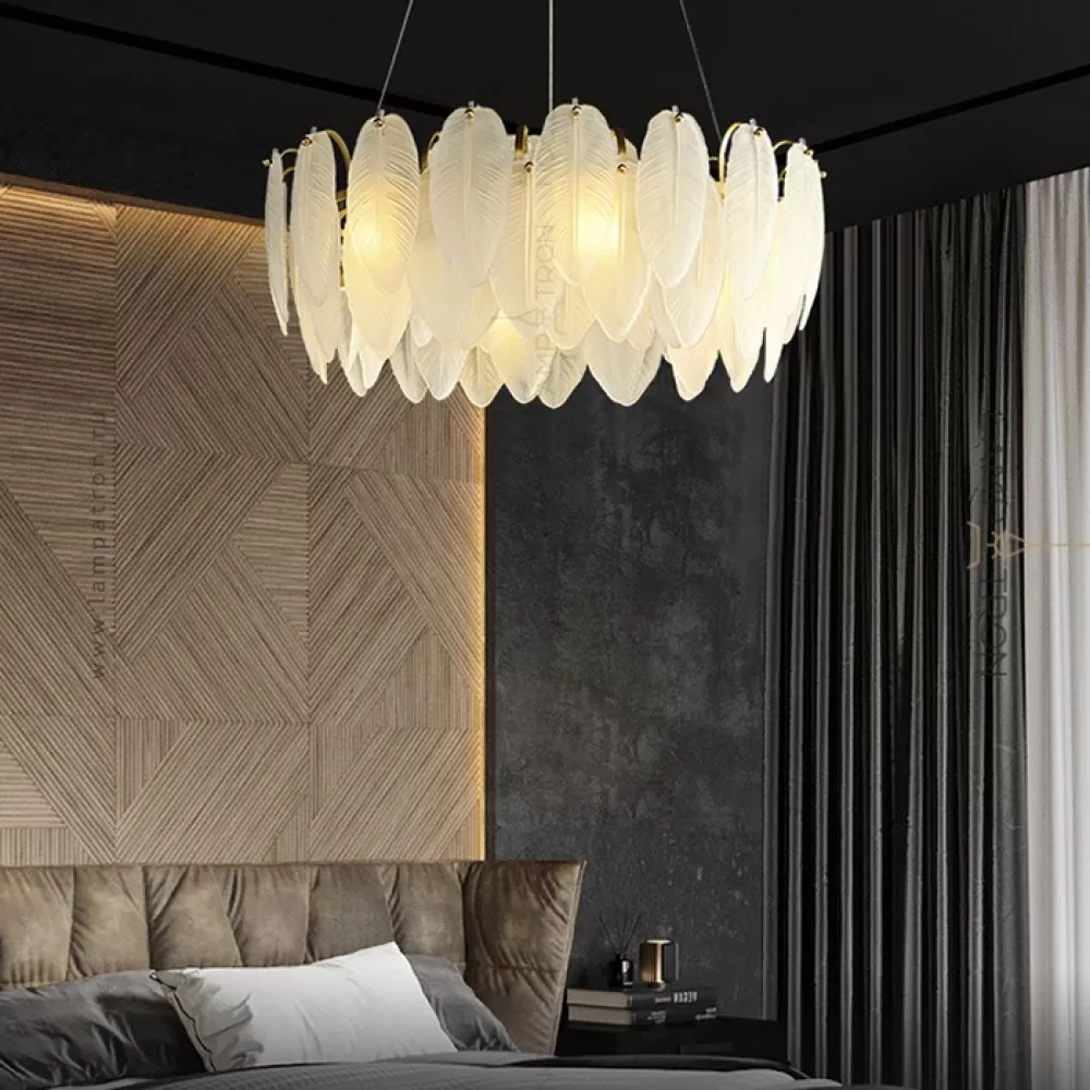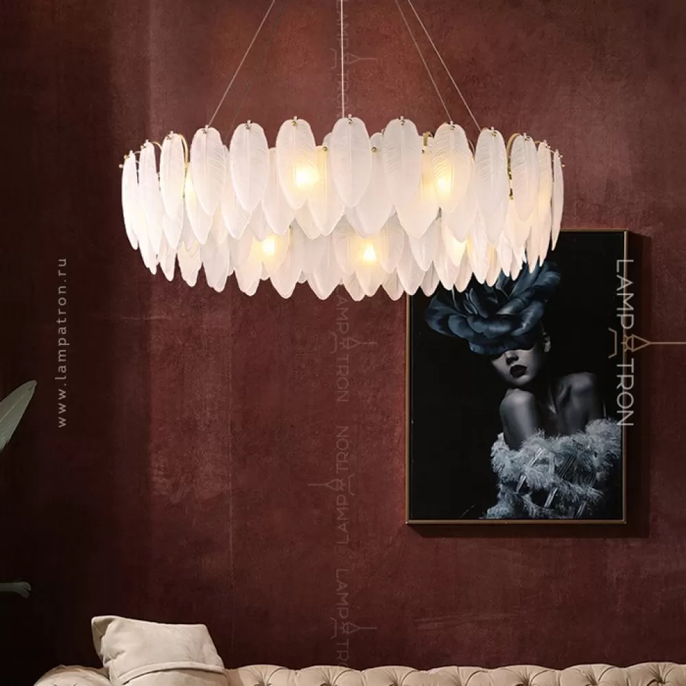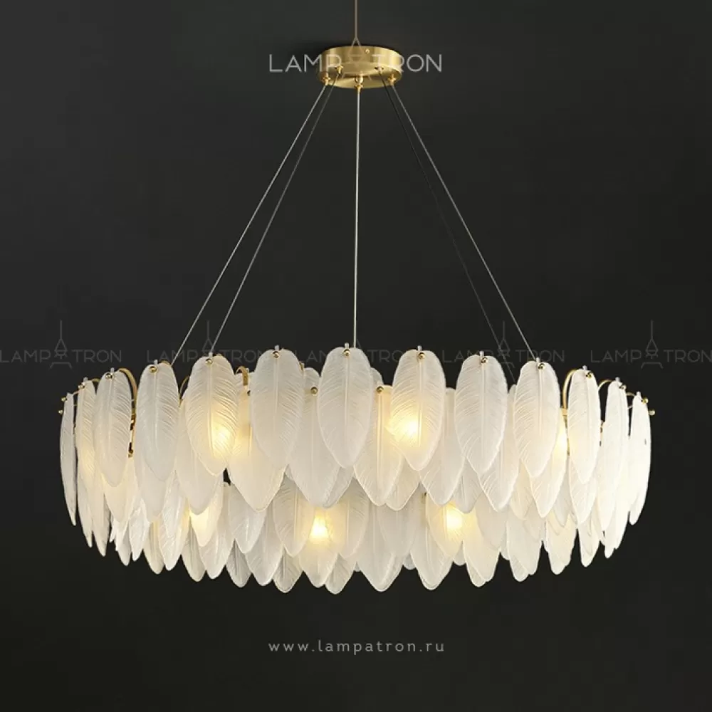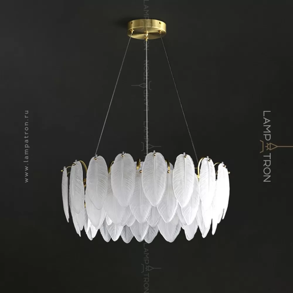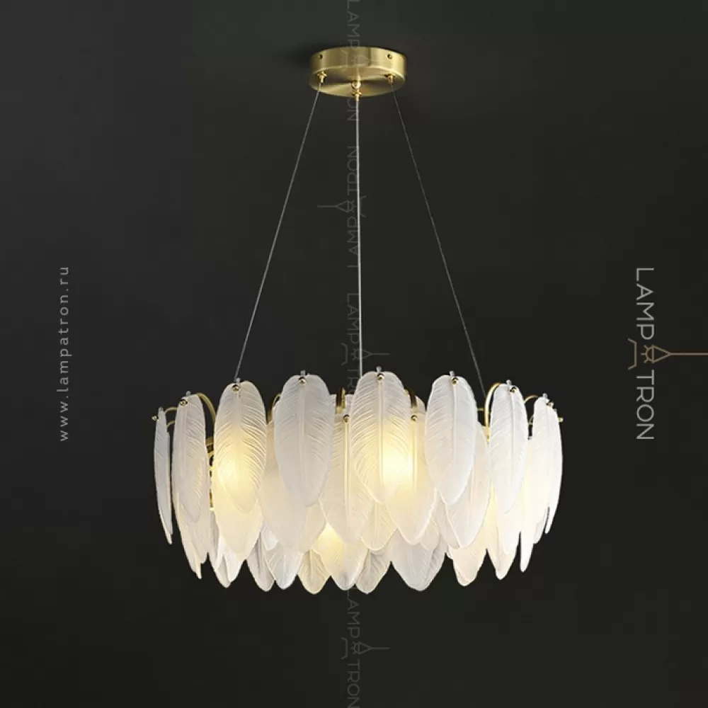 Серия люстр с абажуром в виде композиции из стеклянных перьев