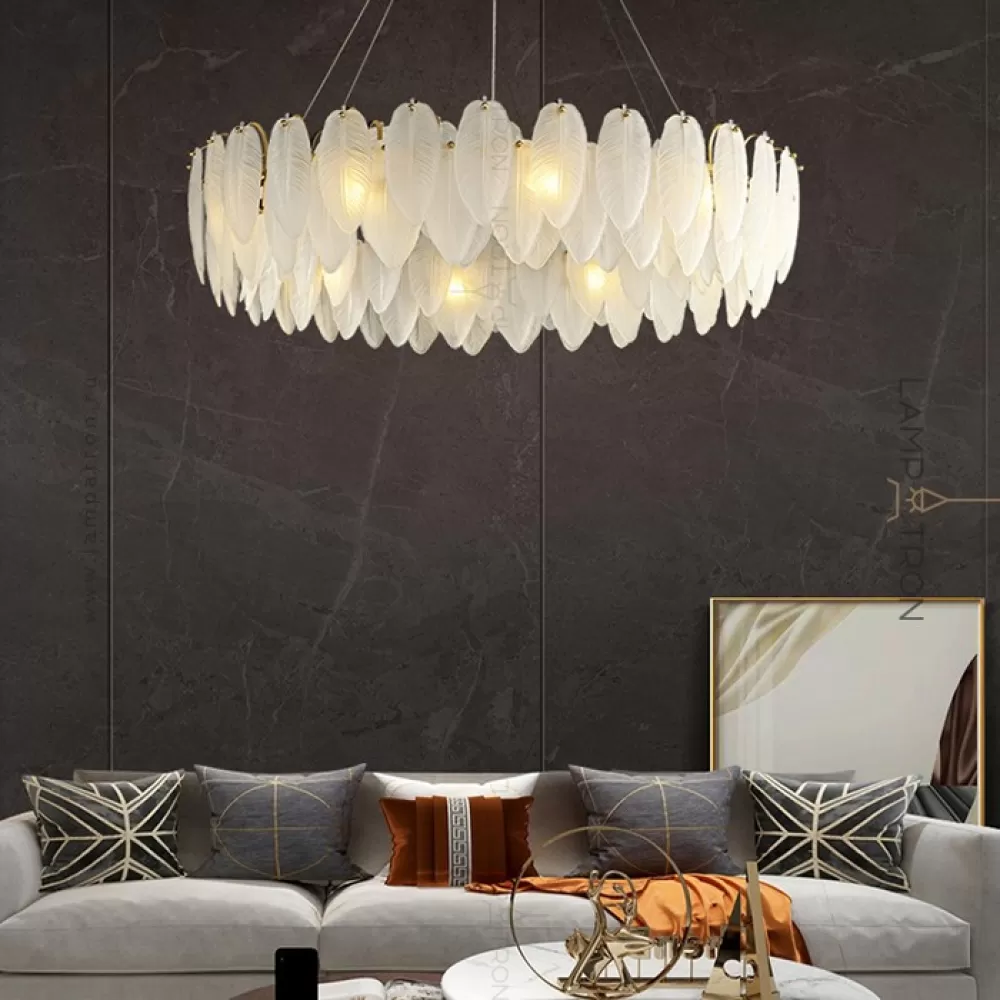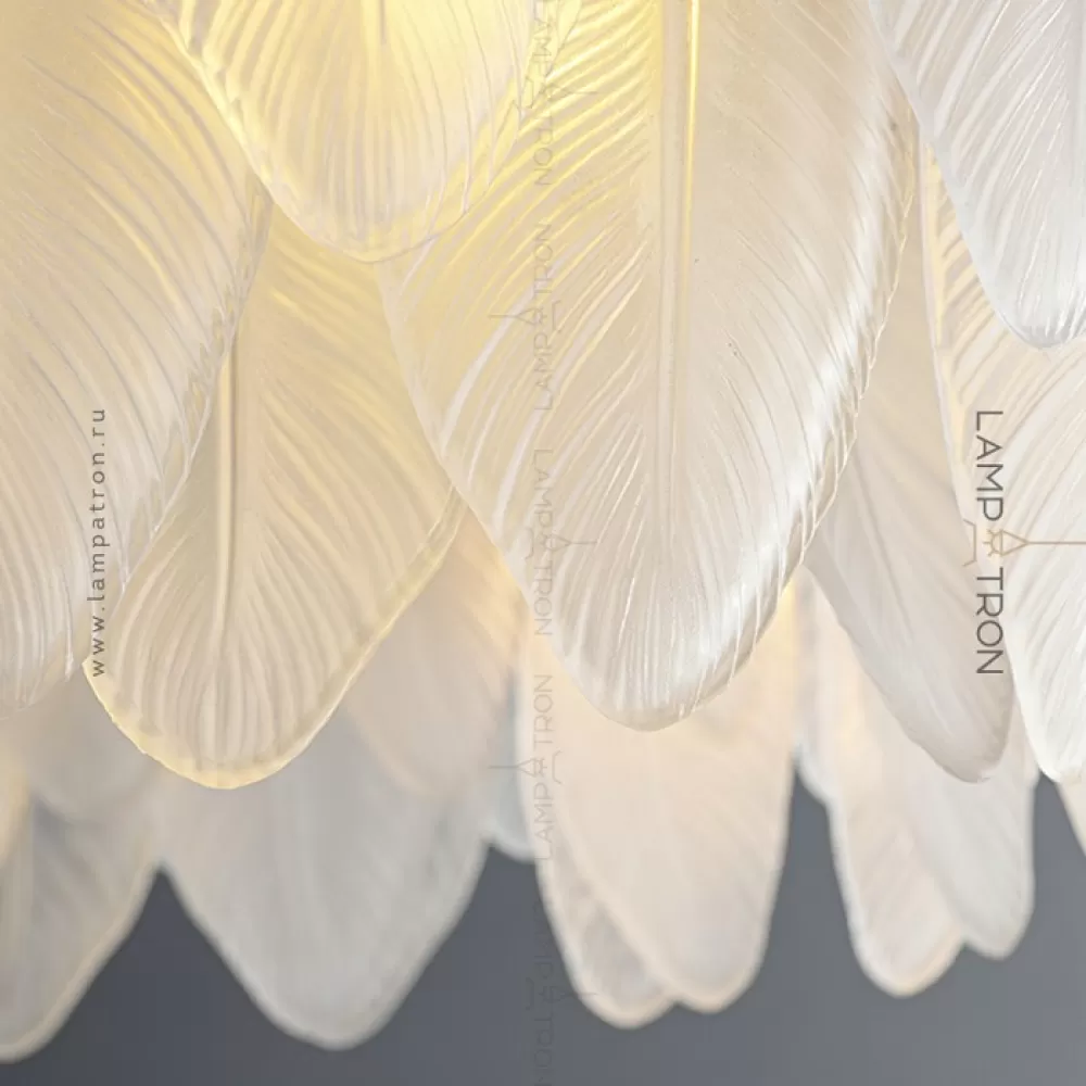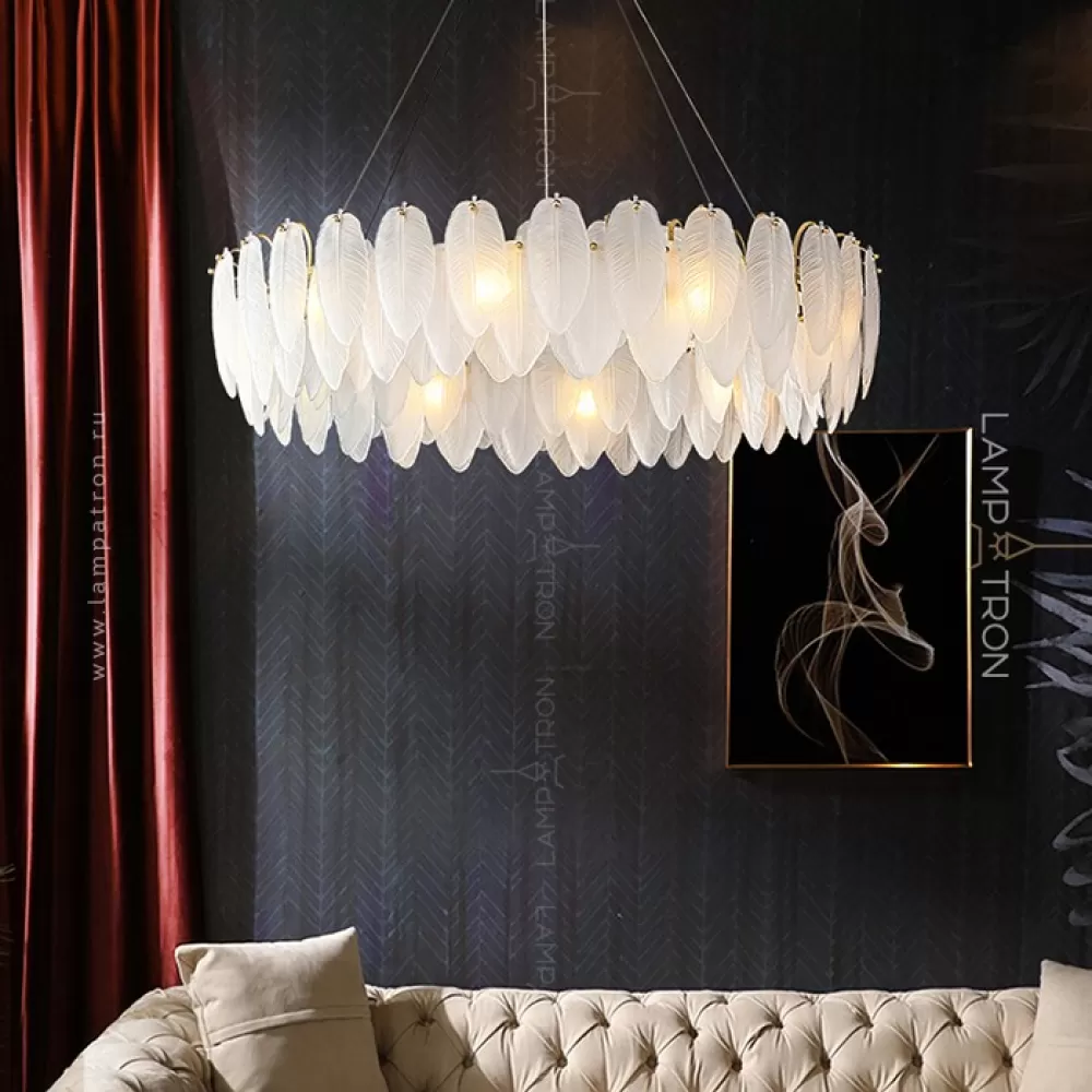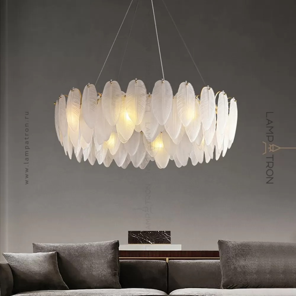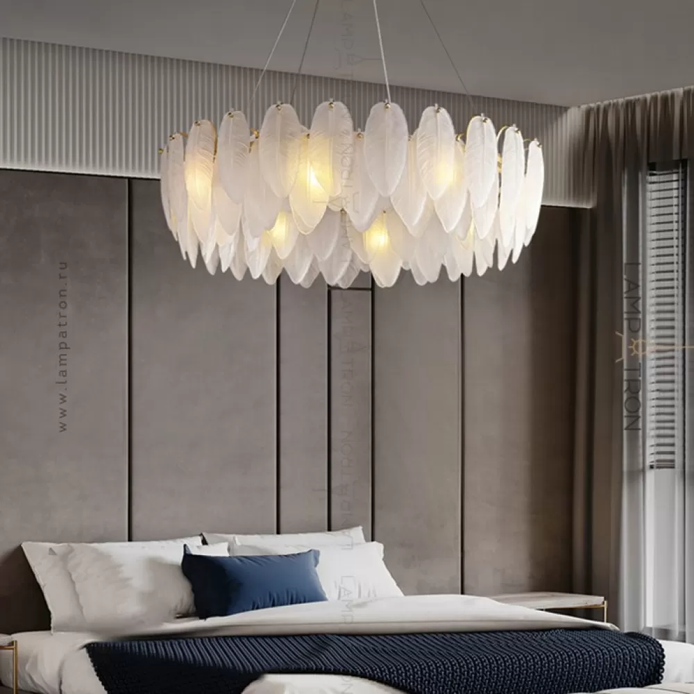 Серия люстр с абажуром в виде композиции из стеклянных перьев