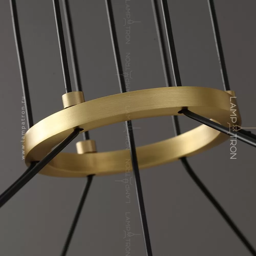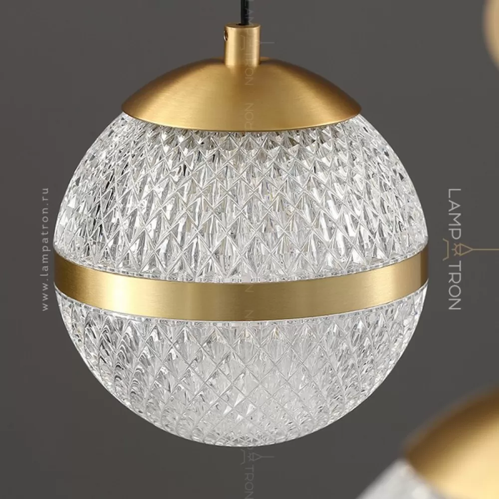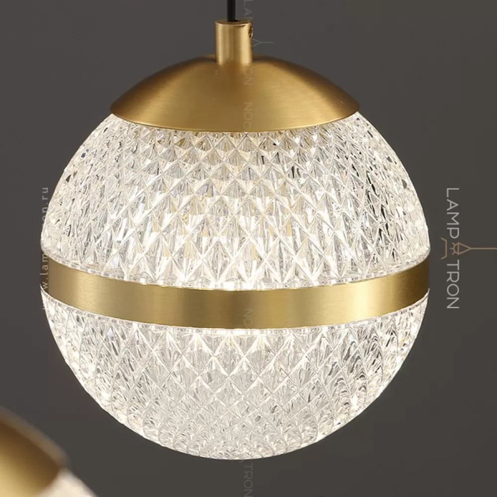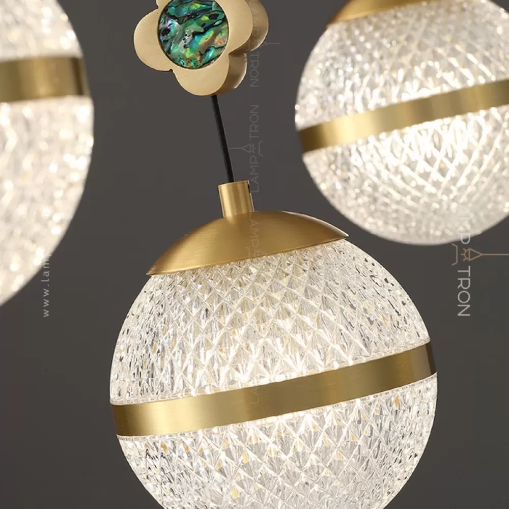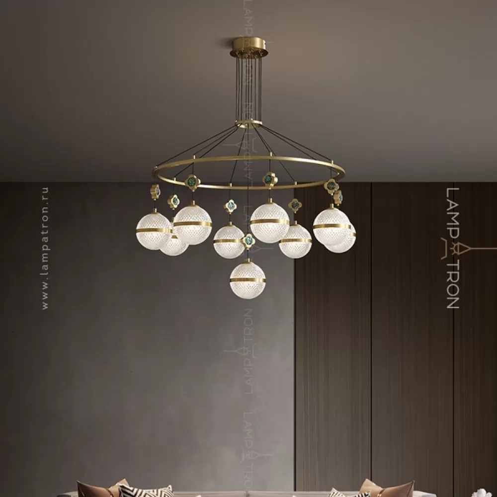 Серия кольцевых люстр с рельефными плафонами шарообразной формы на подвесах с перламутровыми цветами