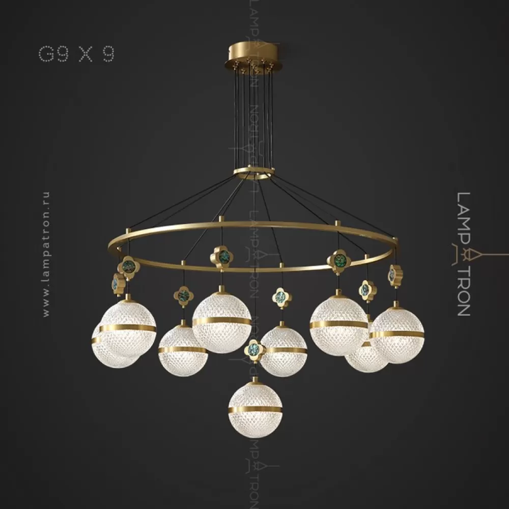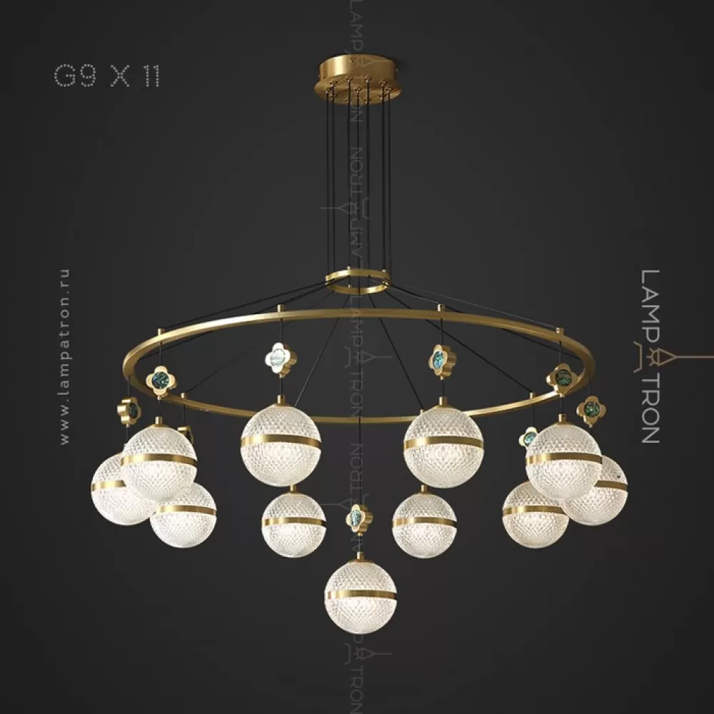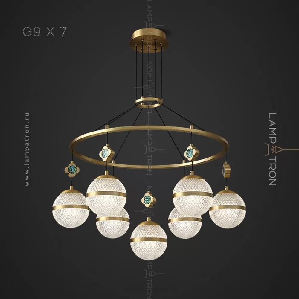 LUARA-CH01. Люстра. Материал: металл/акрил; цвет корпуса: латунь; размеры (диаметр × высота): Ø 65,5 × 30 см; тип цоколя: G9; количество источников: 7