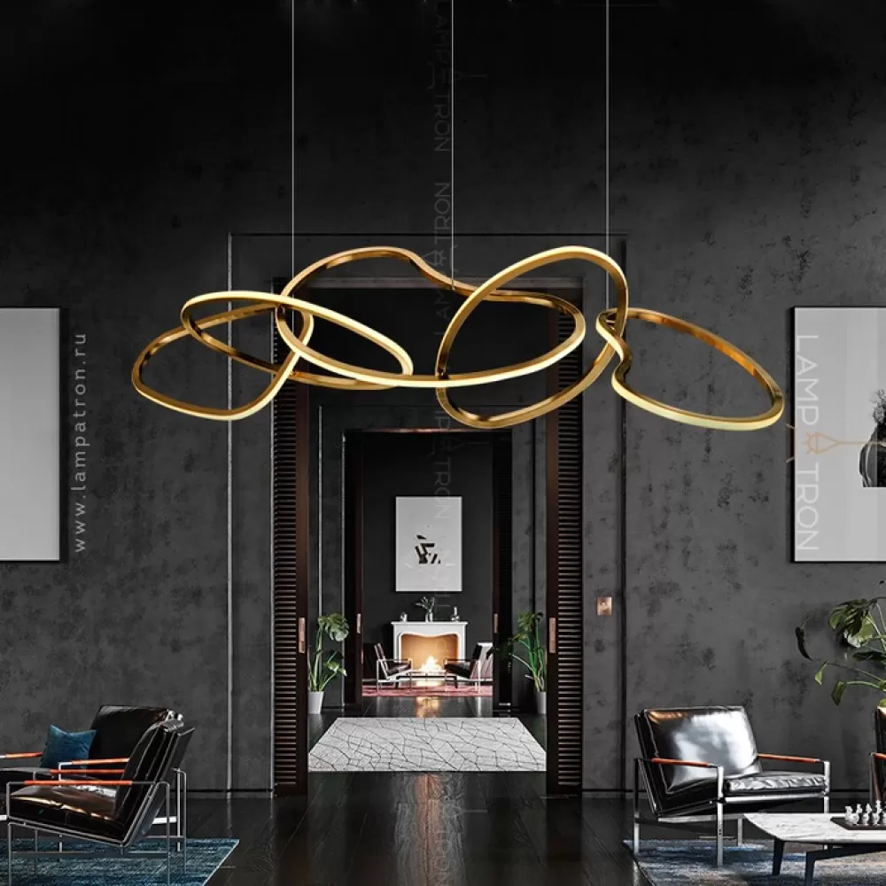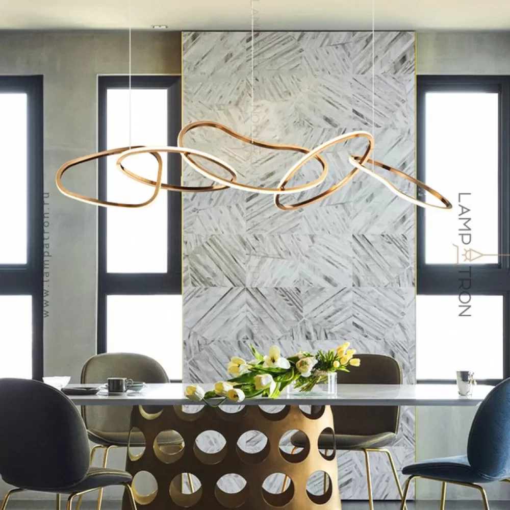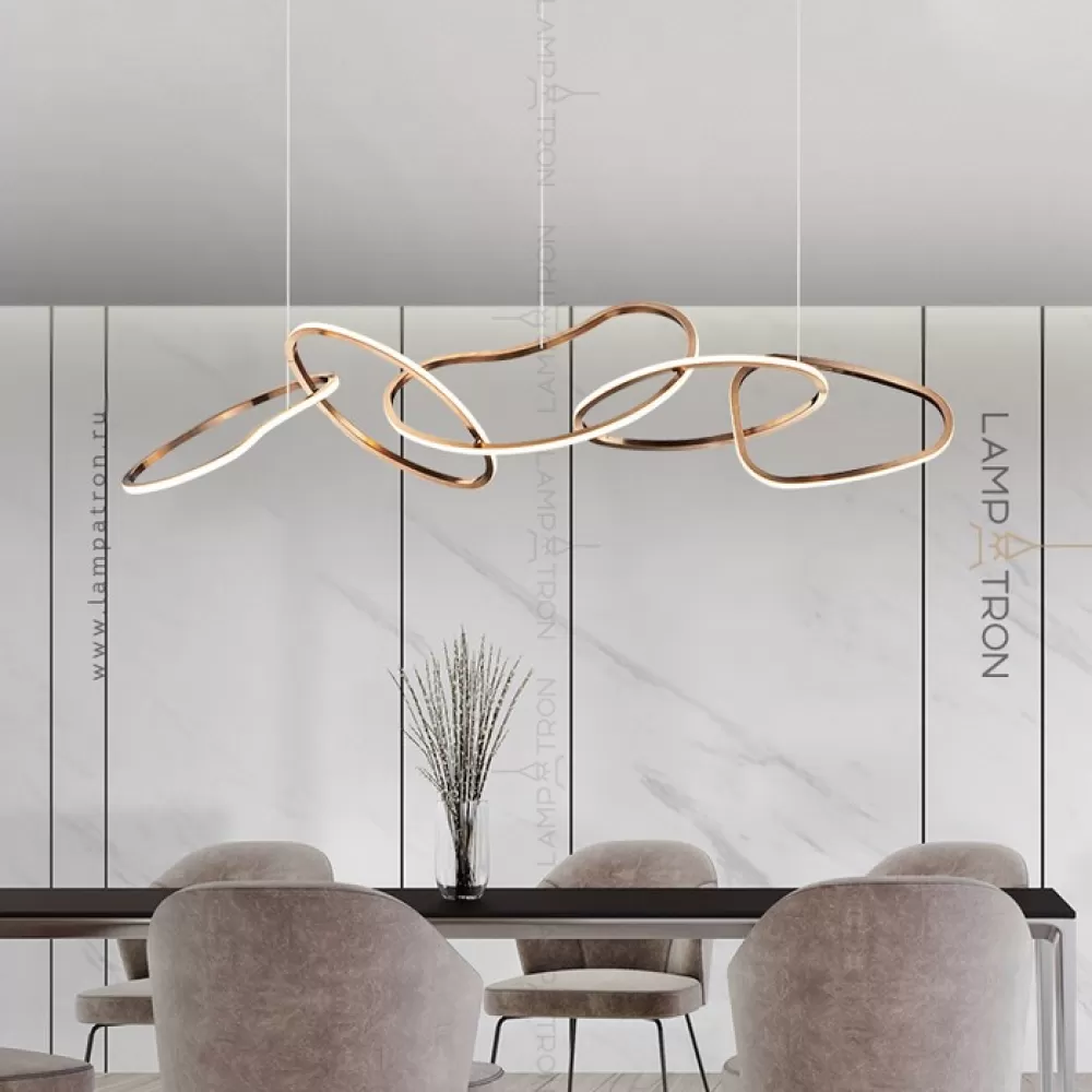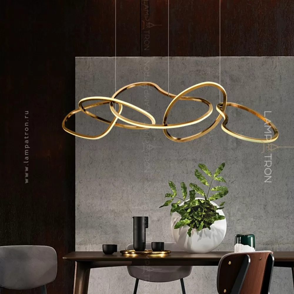 LYCAN01. Люстра. Материал: металл / акрил; цвет корпуса: золото; размеры (д × ш × в): 1230 × 38 × 28 см; тип источника: LED матрица; мощность: 70W