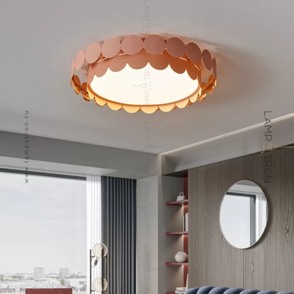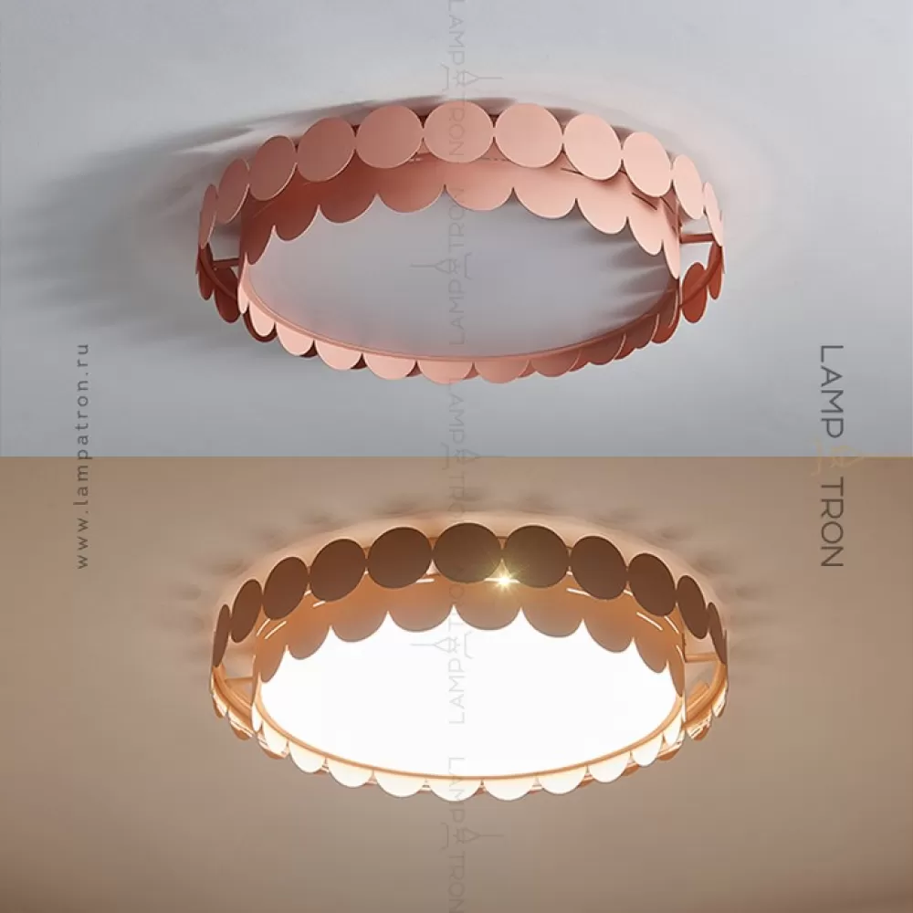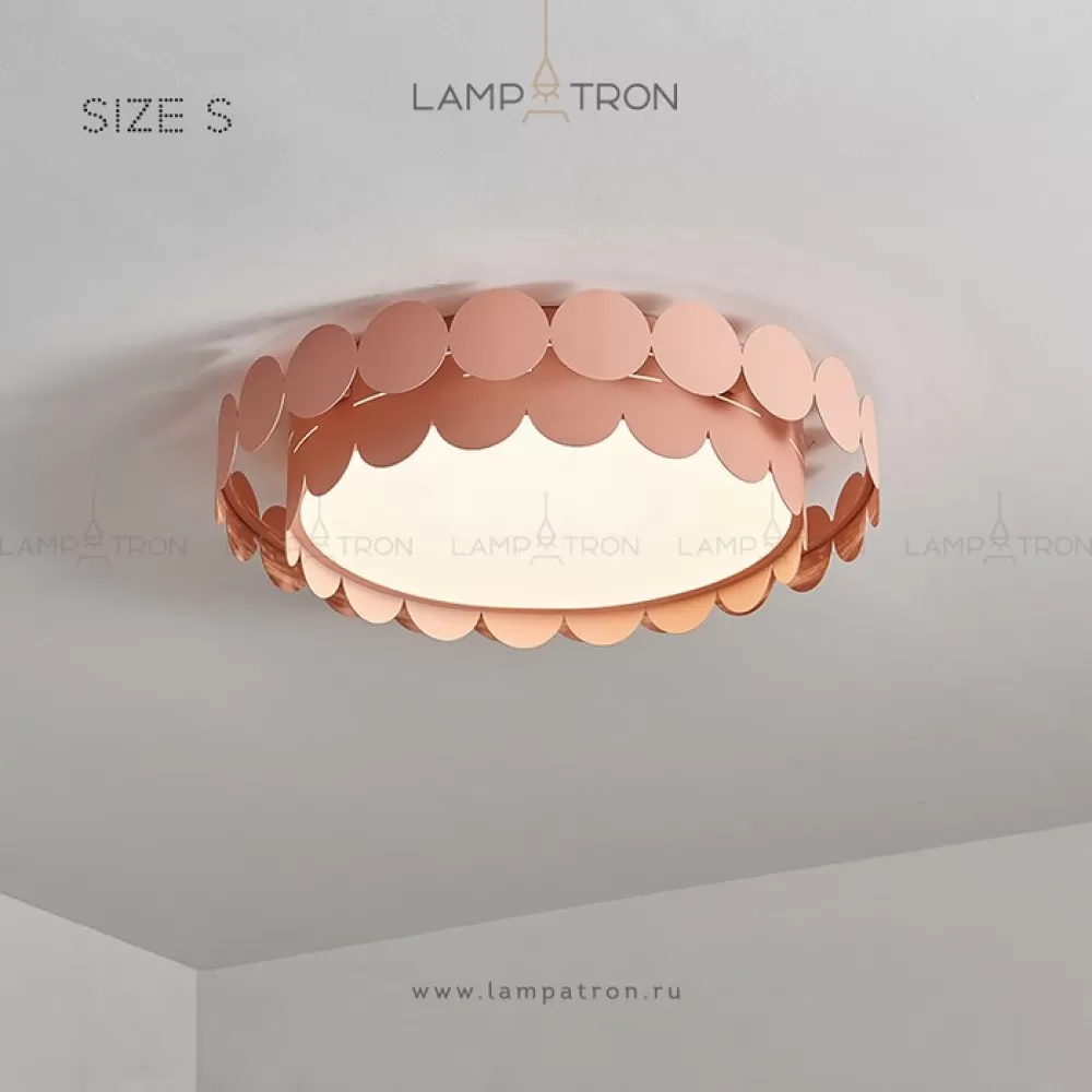 MAGLI01. Потолочный. Материал: металл/акрил; цвет корпуса: розовый; размеры (диаметр × высота): Ø 60 × 11 см; тип источника: LED матрица; цветовая температура: трехцветный свет; мощность: 54W; количество источников: 1