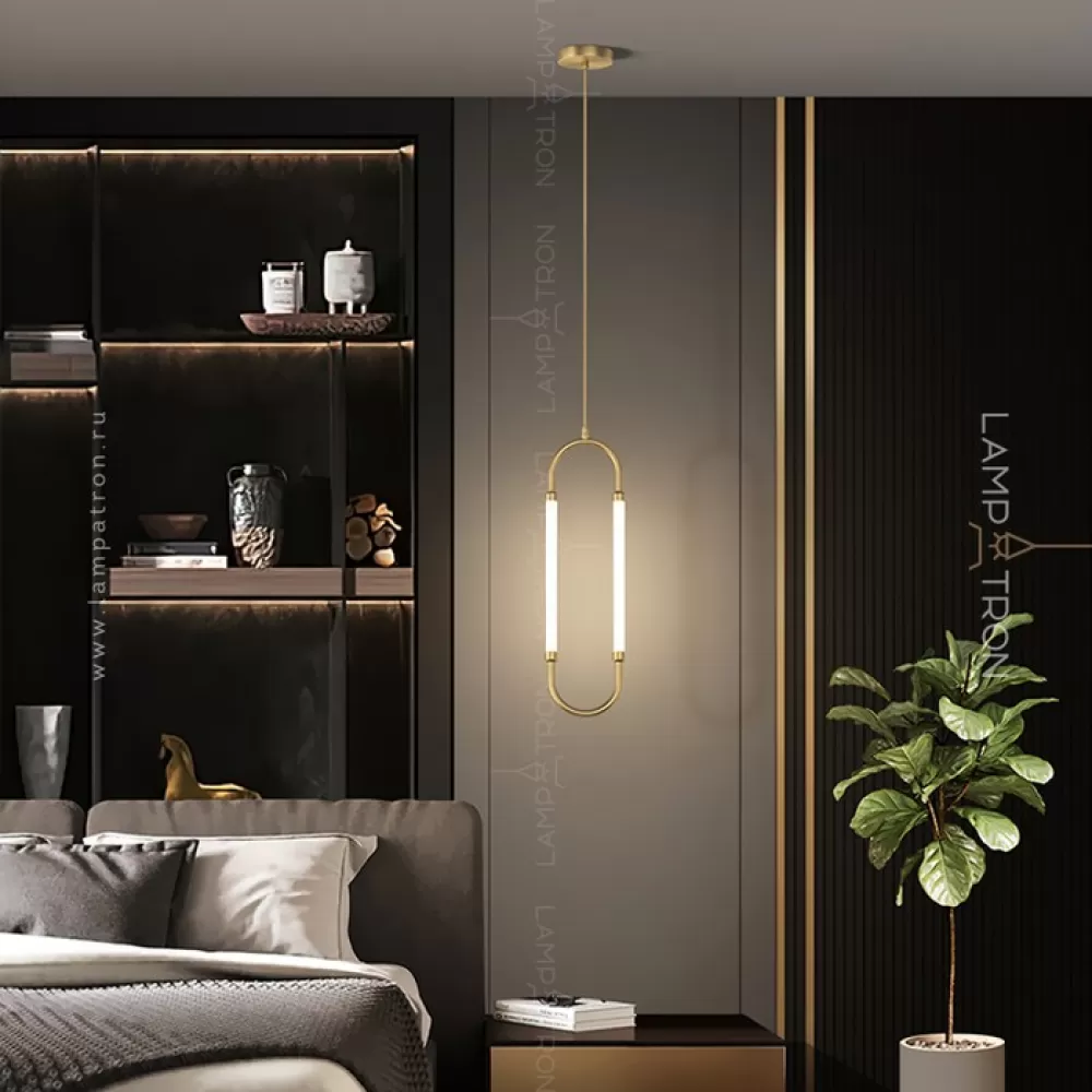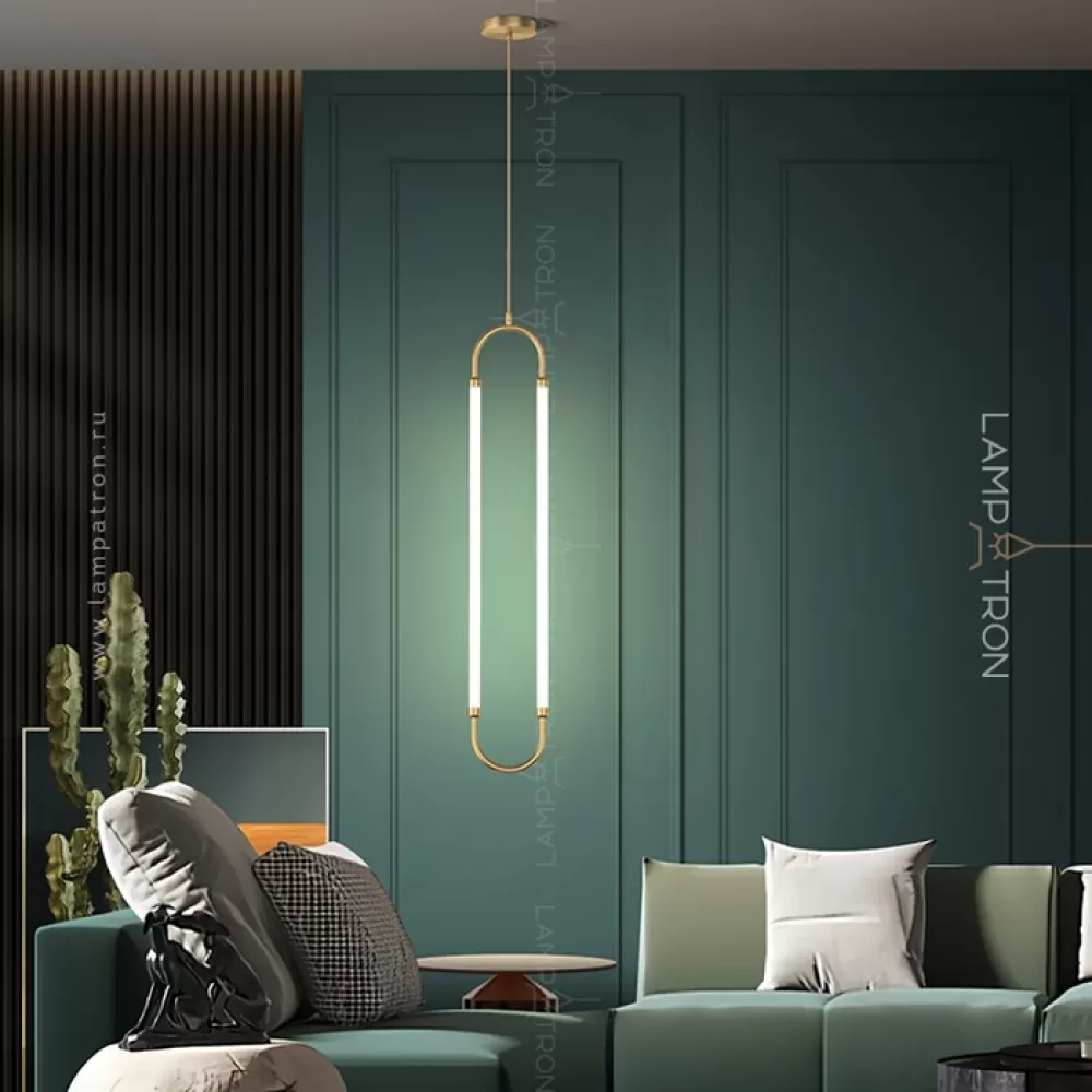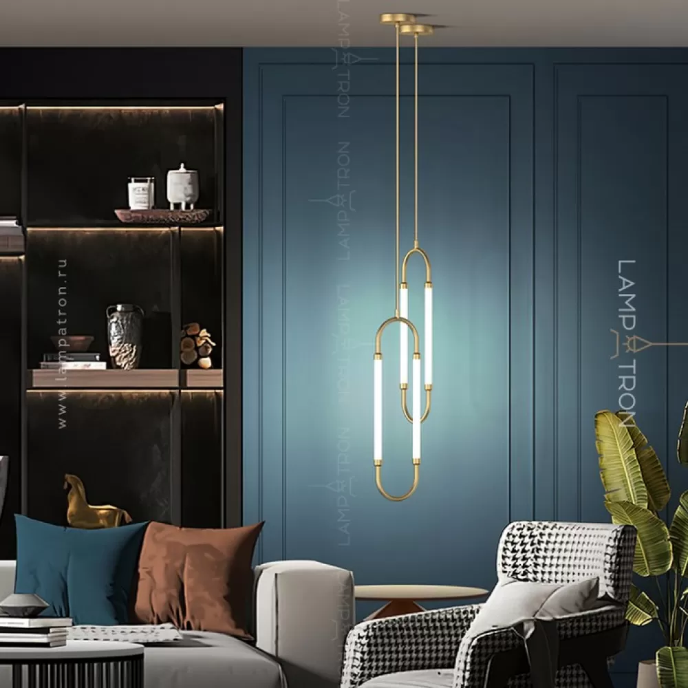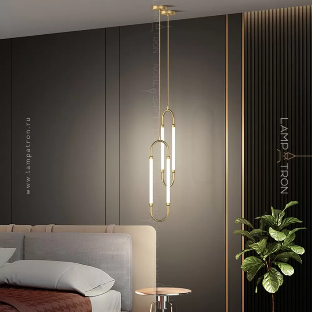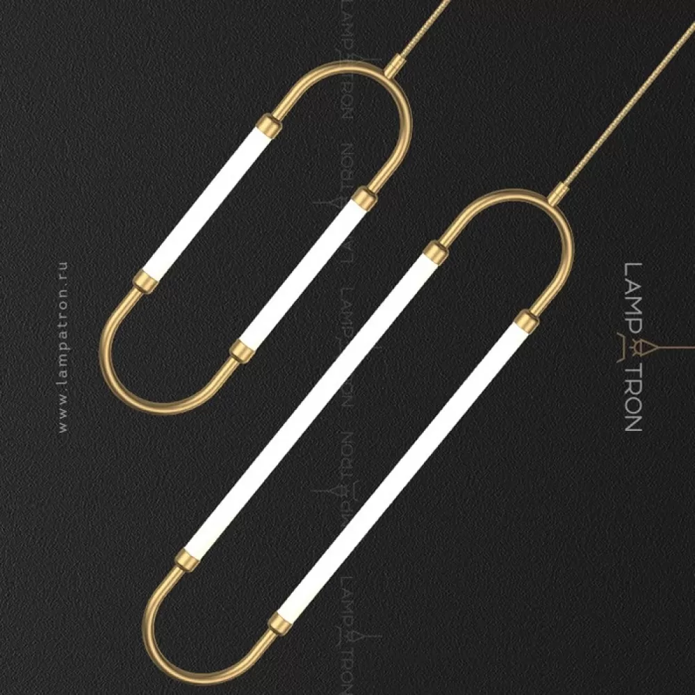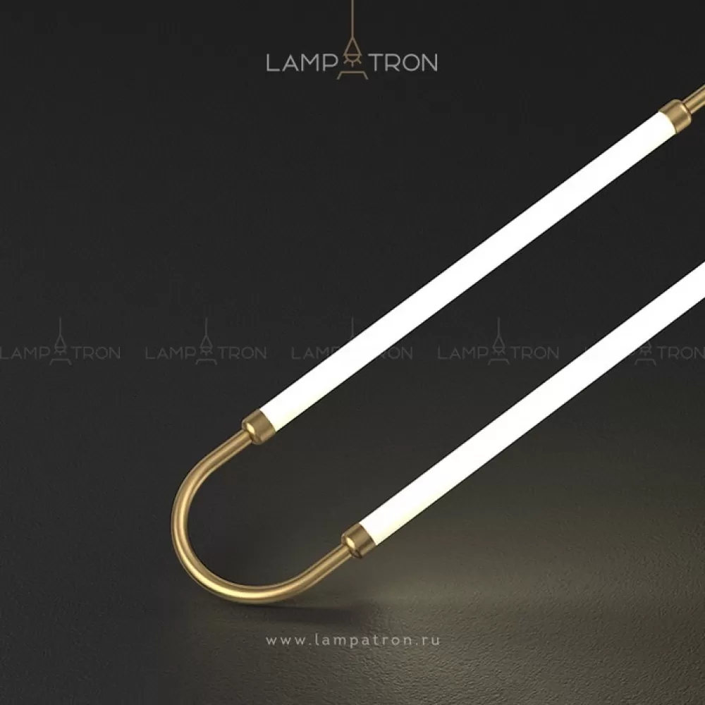 Серия светодиодных светильников с двумя трубчатыми плафонами на закольцованном латунном корпусе