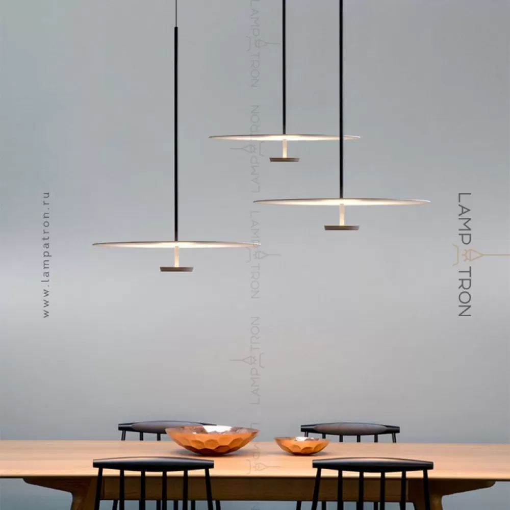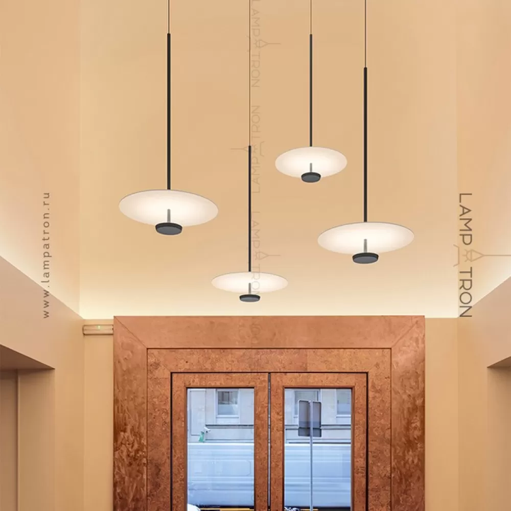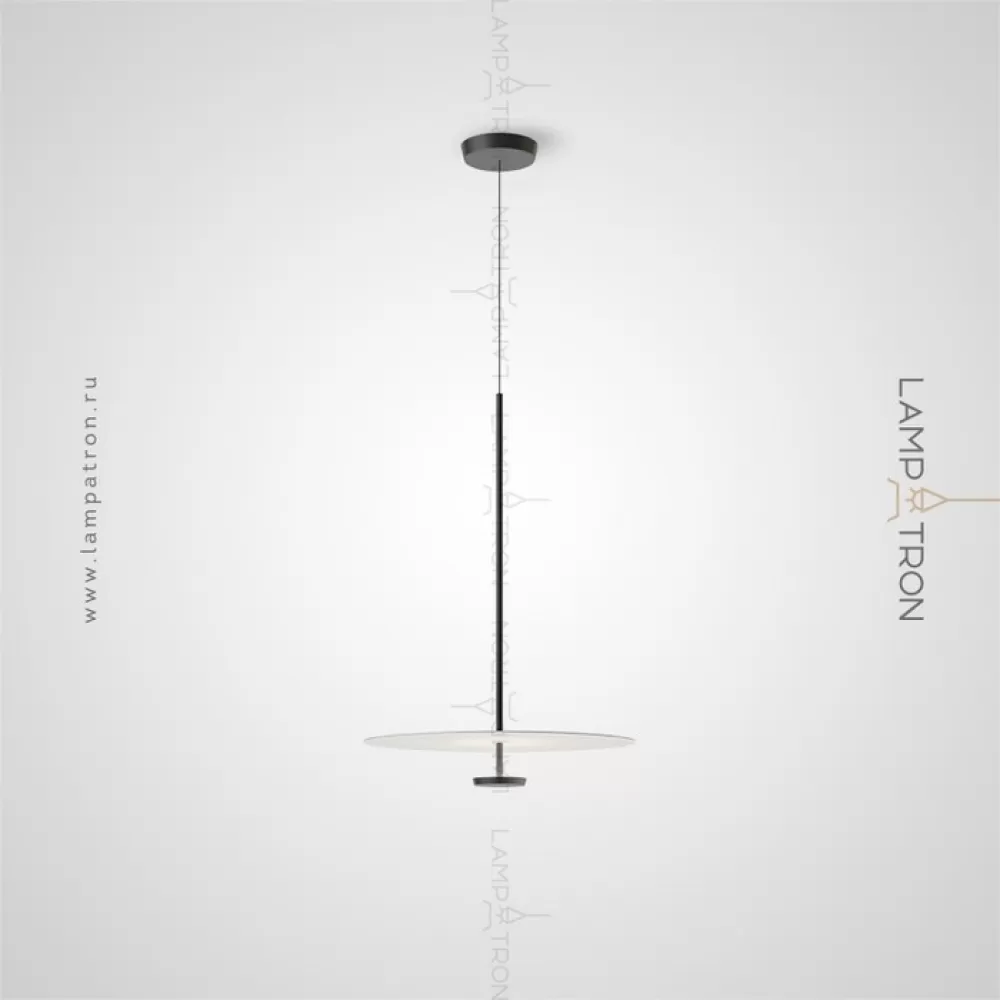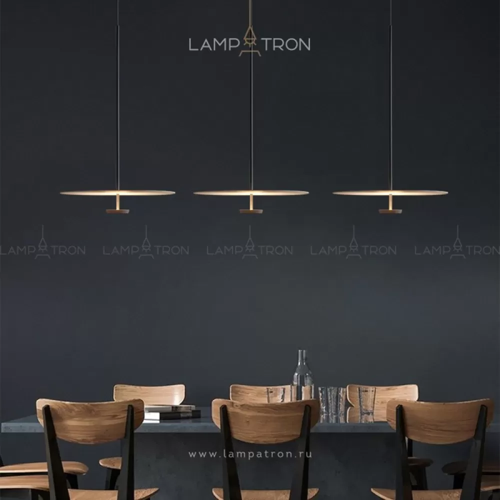 Подвесной светодиодный светильник с тонким дисковидным плафоном на вертикальной стойке