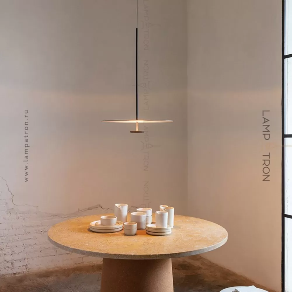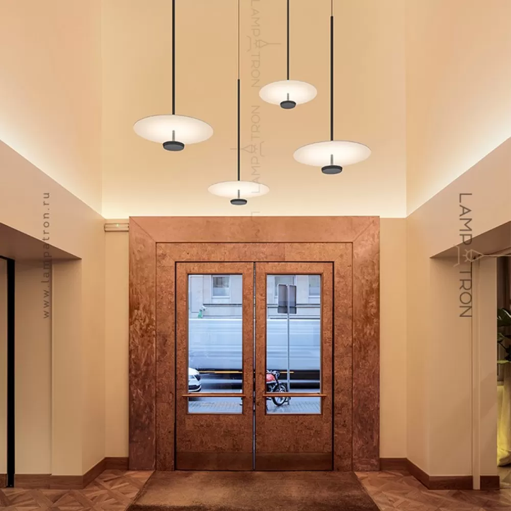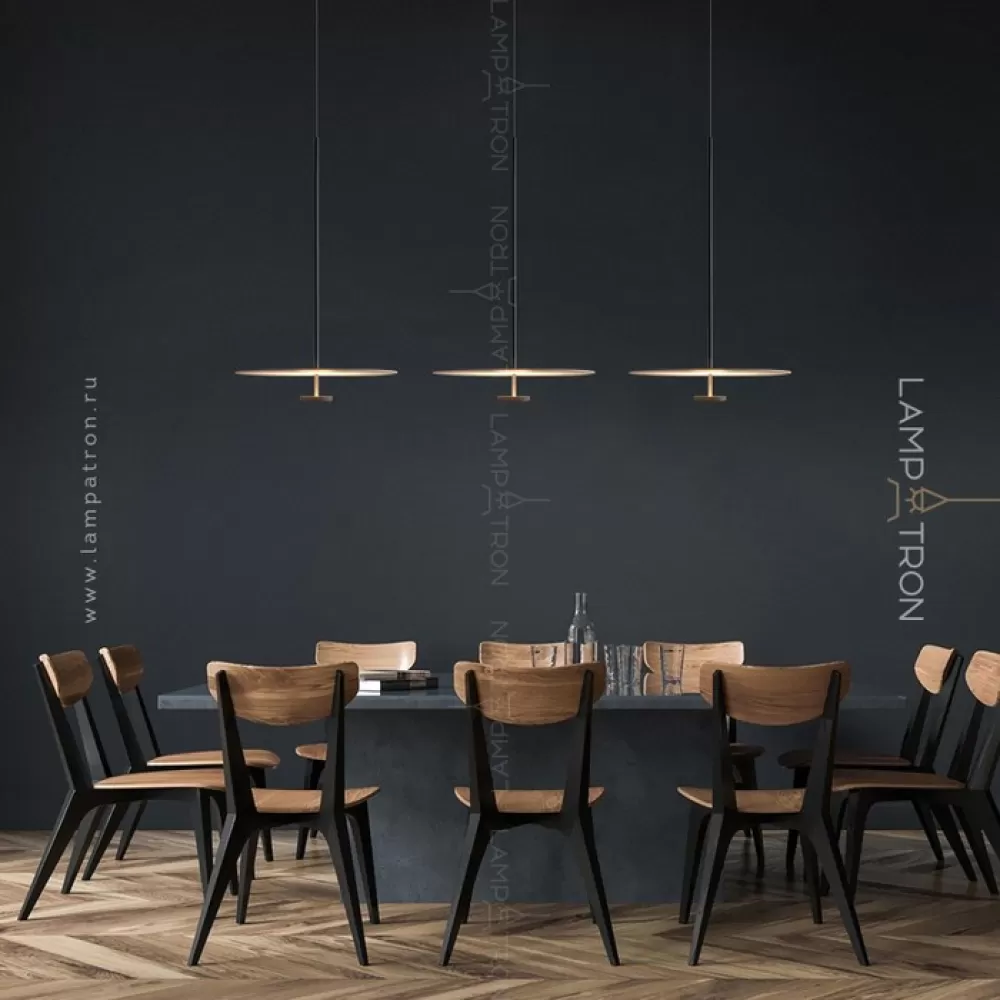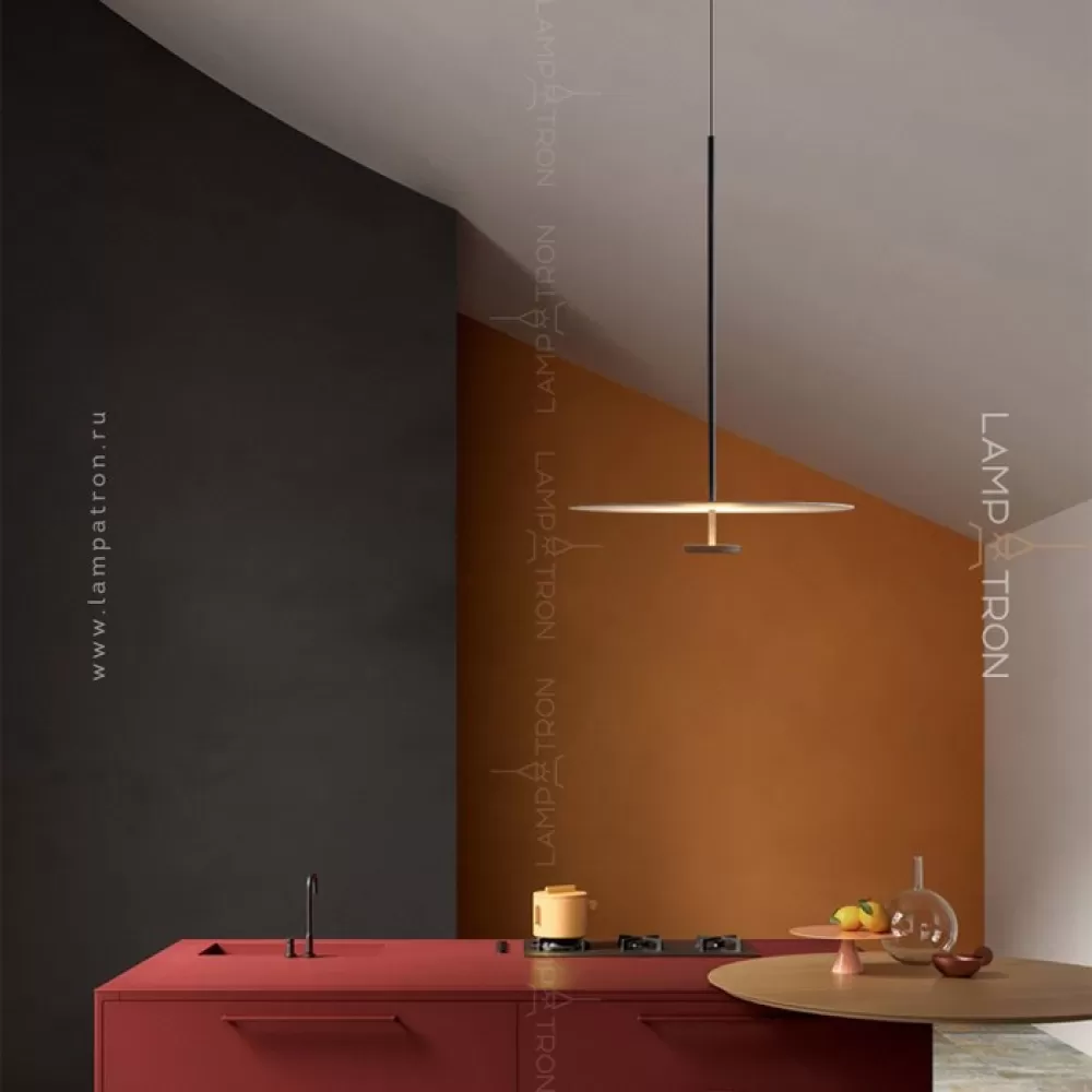 Подвесной светодиодный светильник с тонким дисковидным плафоном на вертикальной стойке